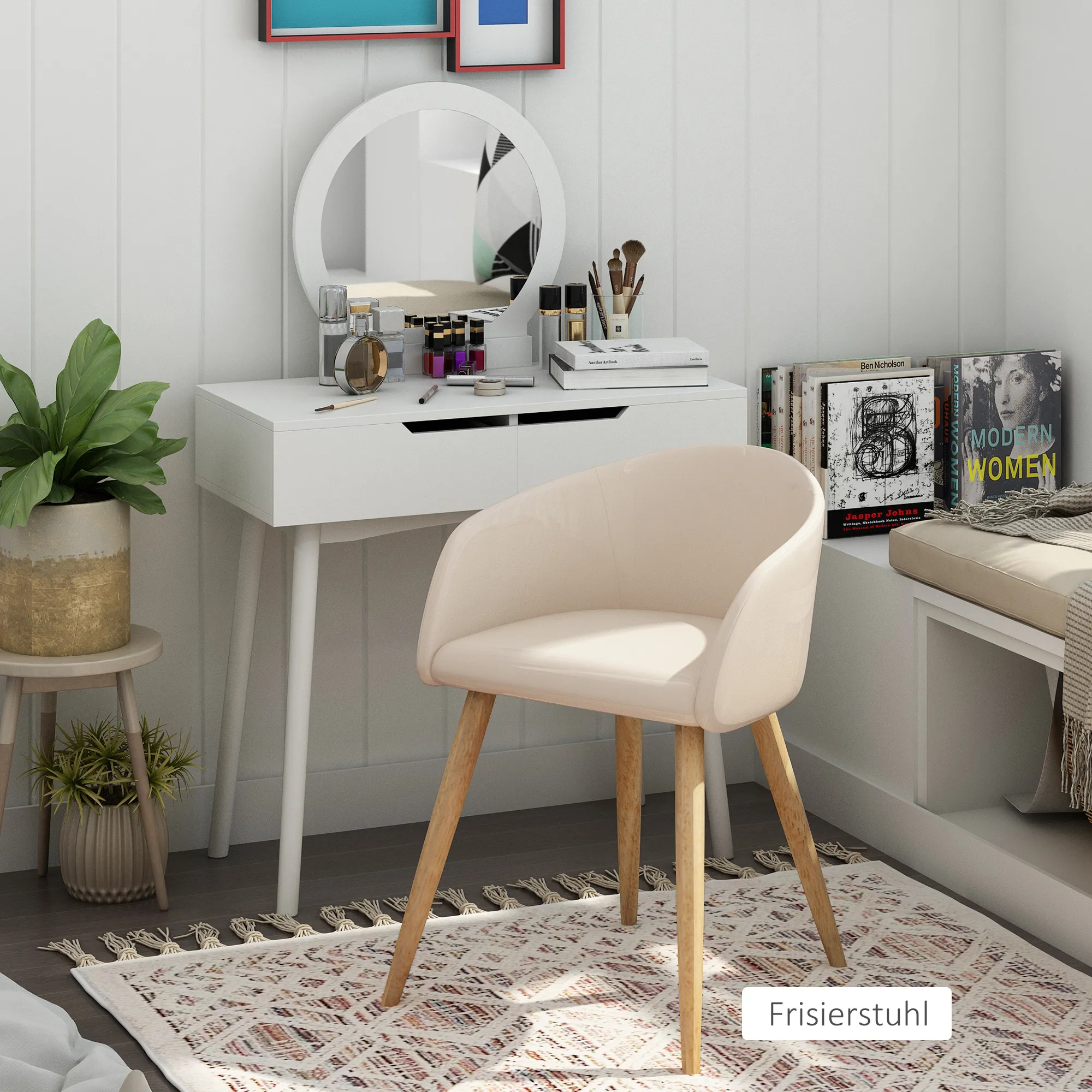 2er-Set gepolsterte Stühle, skandinavisches Design, Polsterstühle mit Holzbeinen, rutschfeste Pads, 150 kg Belastbarkeit, Beige