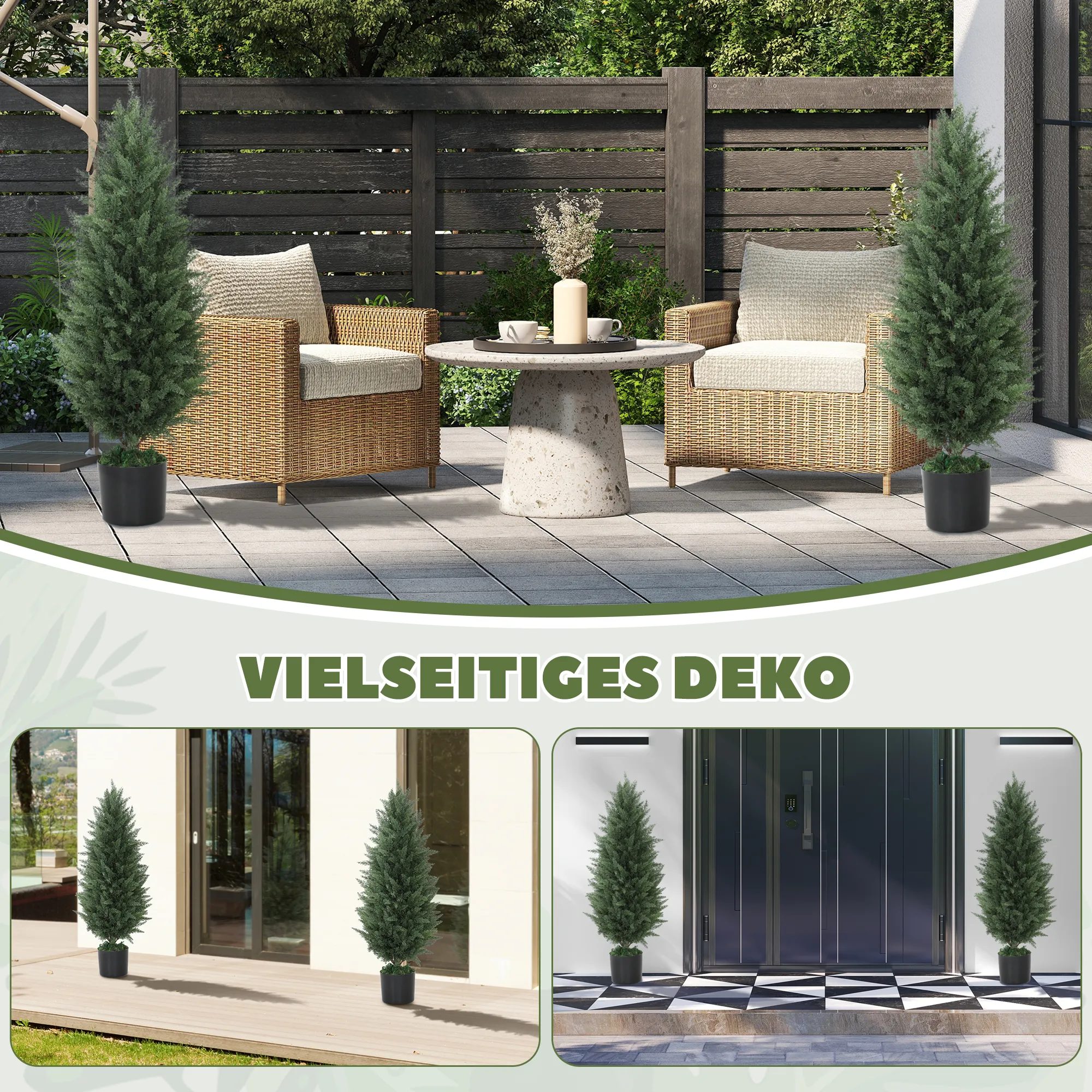 Beschreibung:- Realistische Zypressen mit künstlichem Gras