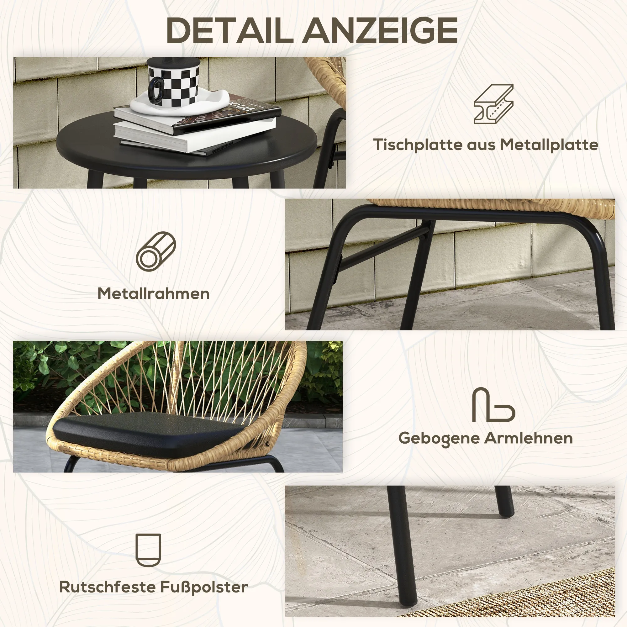 - Robustes PE-Rattan und stabiler Stahlrahmen sorgen für eine stilvolle Note in deinem Zuhause.