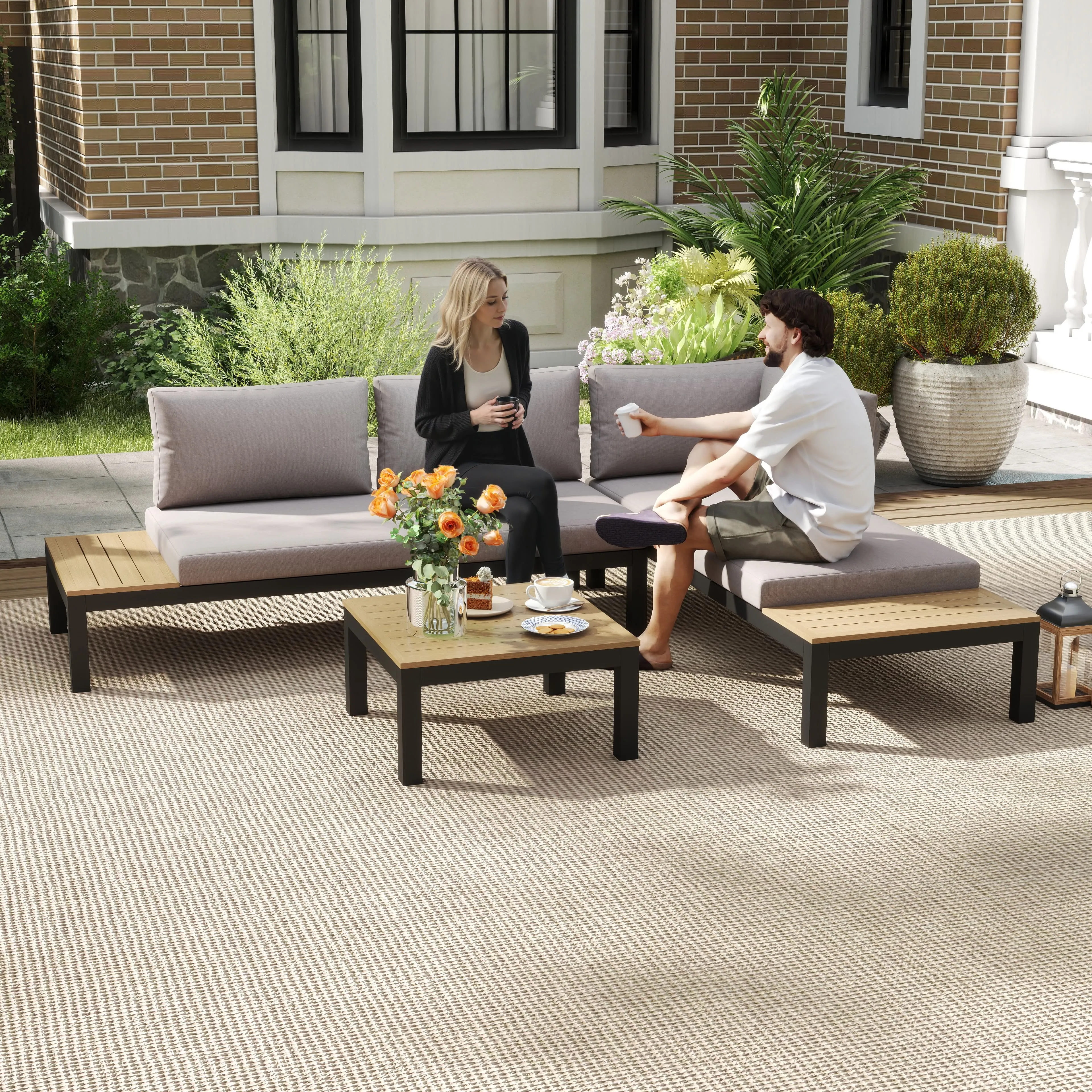 Mit diesem dreiteiligen Gartenmöbel Set kannst du dich wieder auf das Wesentliche besinnen. Der Aluminiumrahmen sorgt für Haltbarkeit und Festigkeit, ist rostbeständig und leicht, sodass du alles mühelos transportieren kannst.