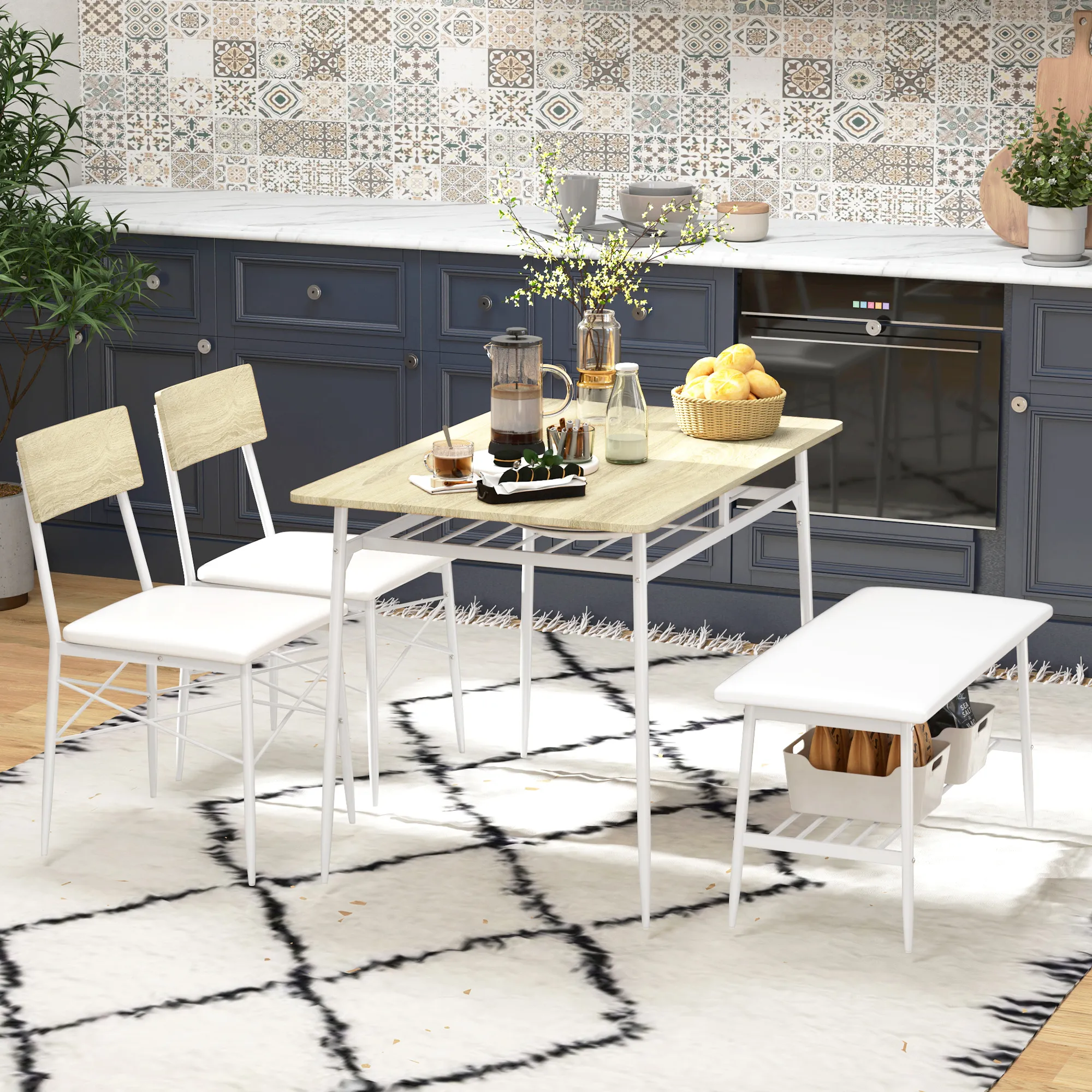 4-teiliges Esstisch-Set mit Stühlen und Bank für 4 Personen, gepolsterte Sitze, Stahlrahmen, Holz, Eiche