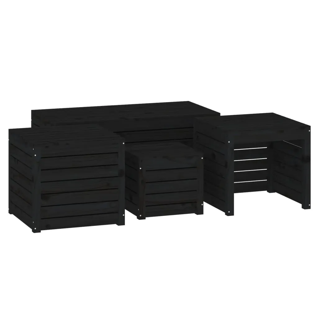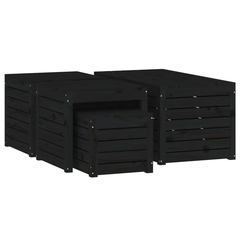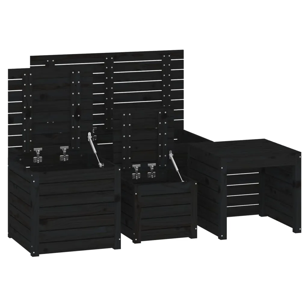 4-tlg. Gartenbox-Set Schwarz Massivholz Kiefer