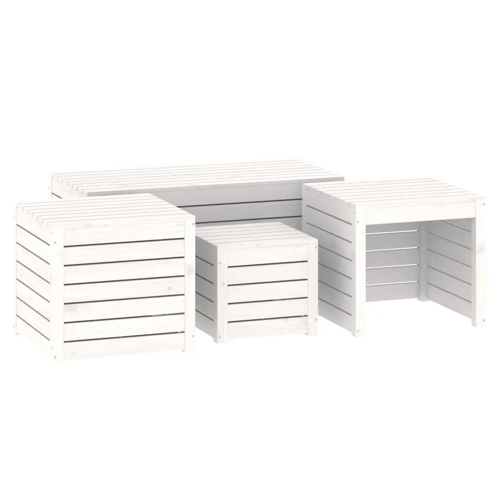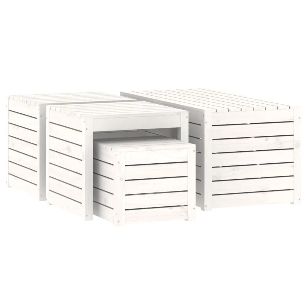 4-tlg. Gartenbox-Set Weiß Massivholz Kiefer