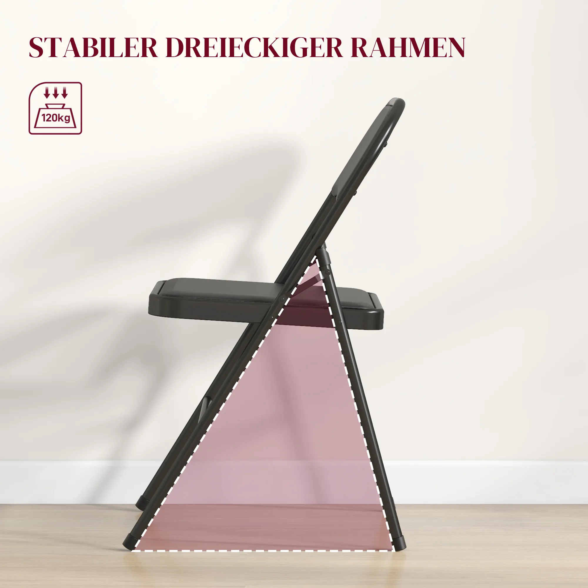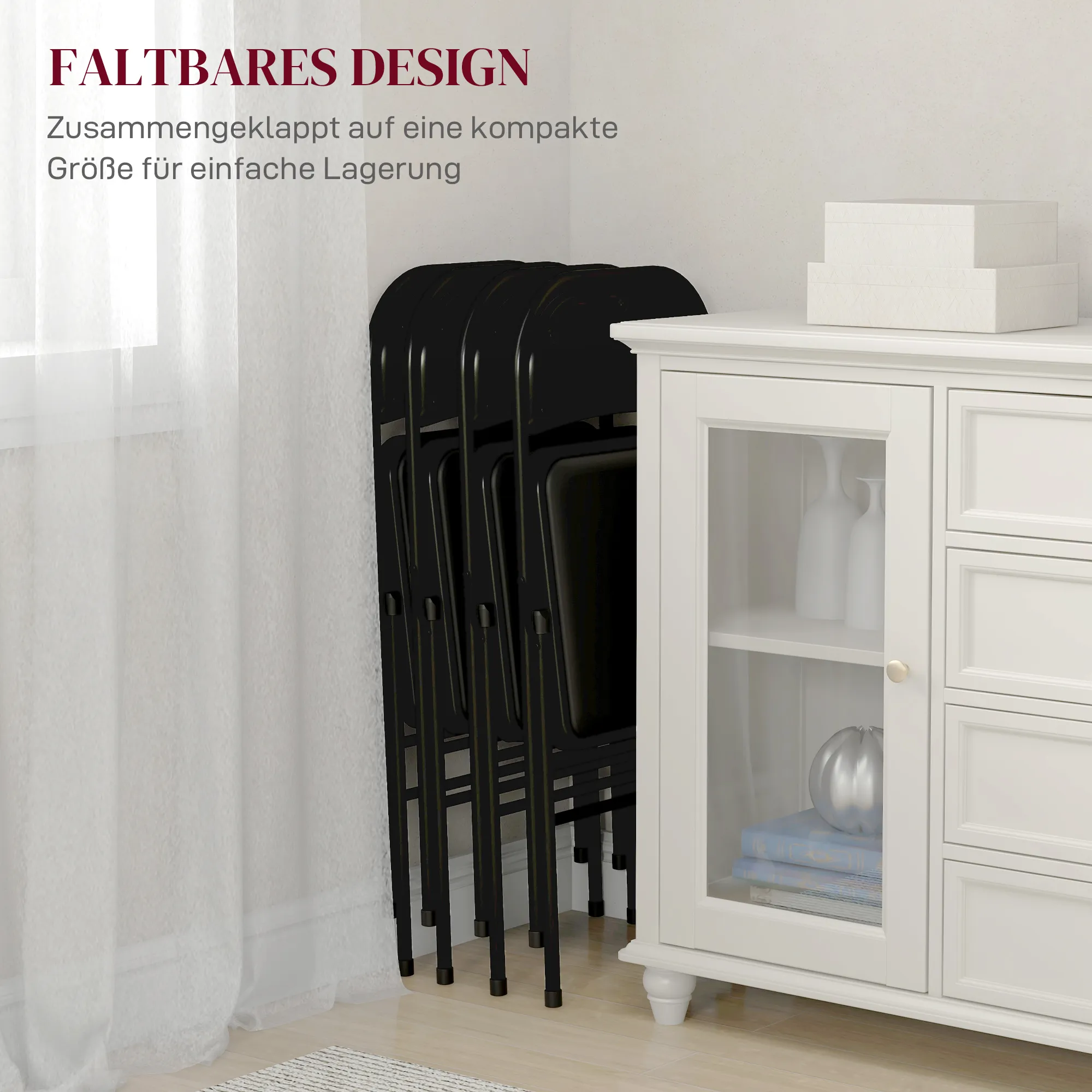 4er-Set Klappstühle, Tragbare Bürostühle, Metallbeine, Faltstuhl für Büro, Empfang, Wartezimmer, Kunstleder, Schwarz