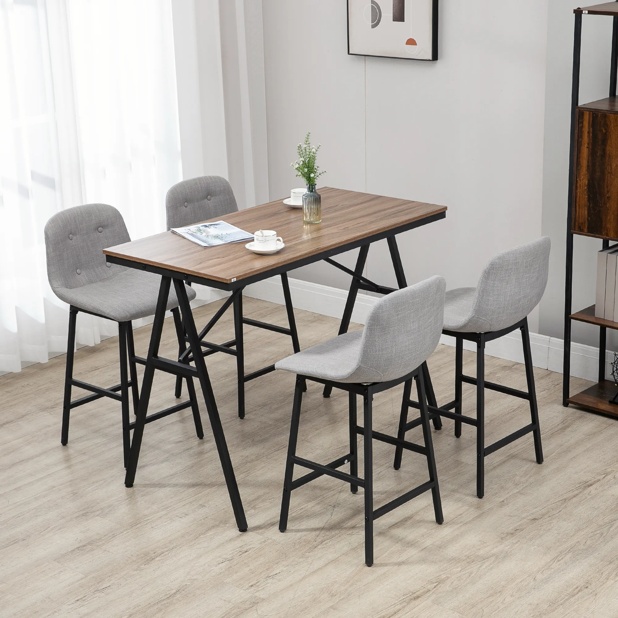 - Das 5-teilige Bartisch Set besteht aus einem Tisch und 4 Stühlen.