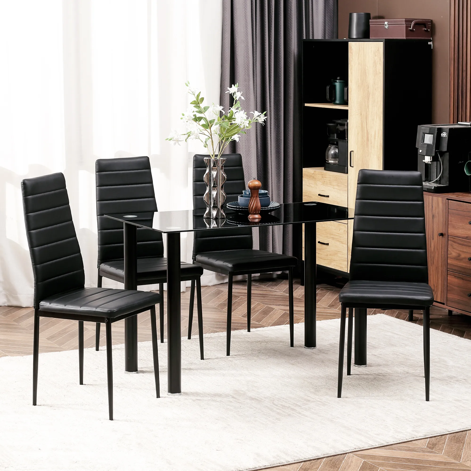 5-tlg. Essgruppe Sitzgruppe Esstisch mit 4 Stühlen, modernes Design, Glastisch, Schwarz