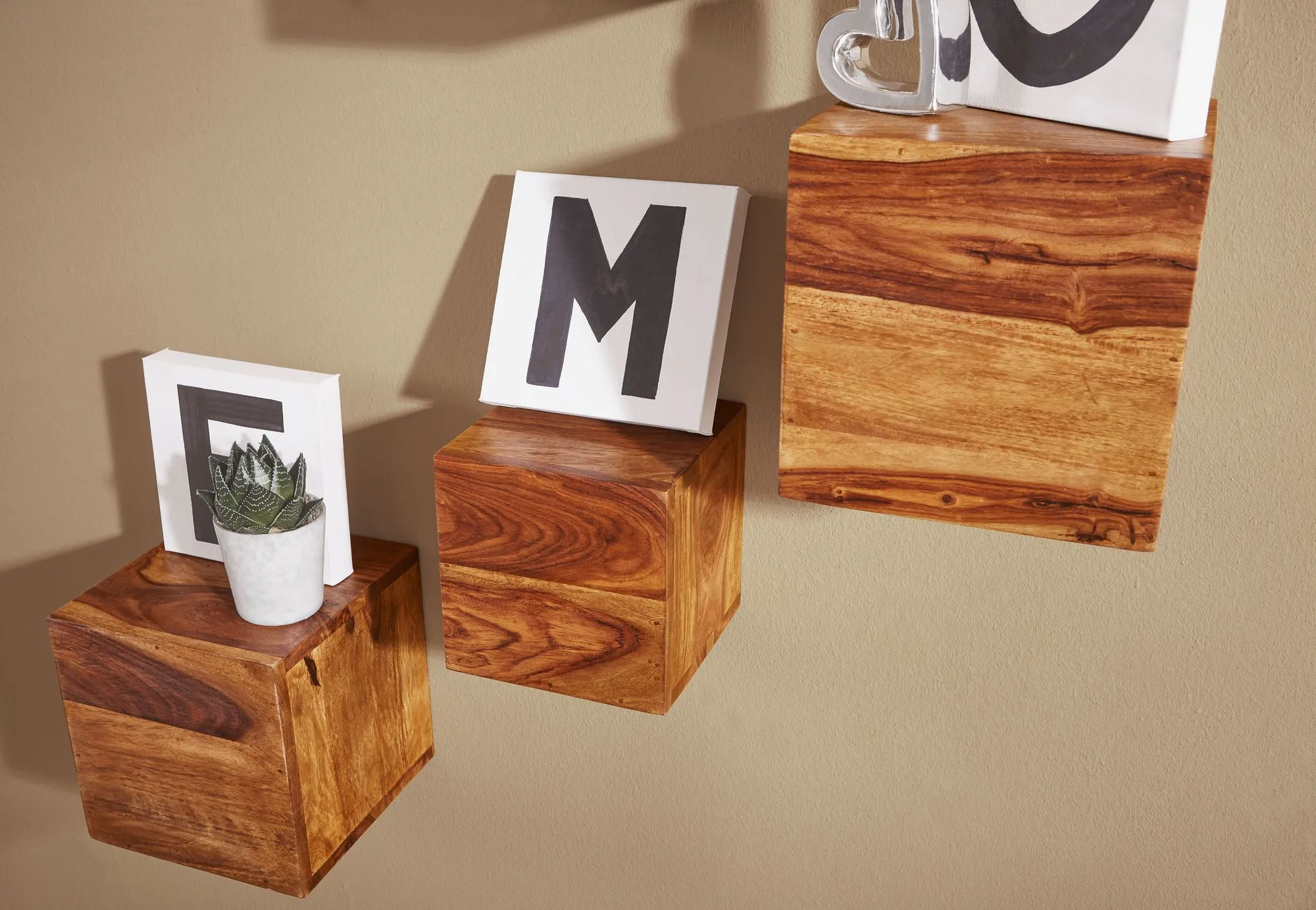 WOHNLING 4er Set Wandregale MUMBAI WL1.531 Massivholz Sheesham Holzregal