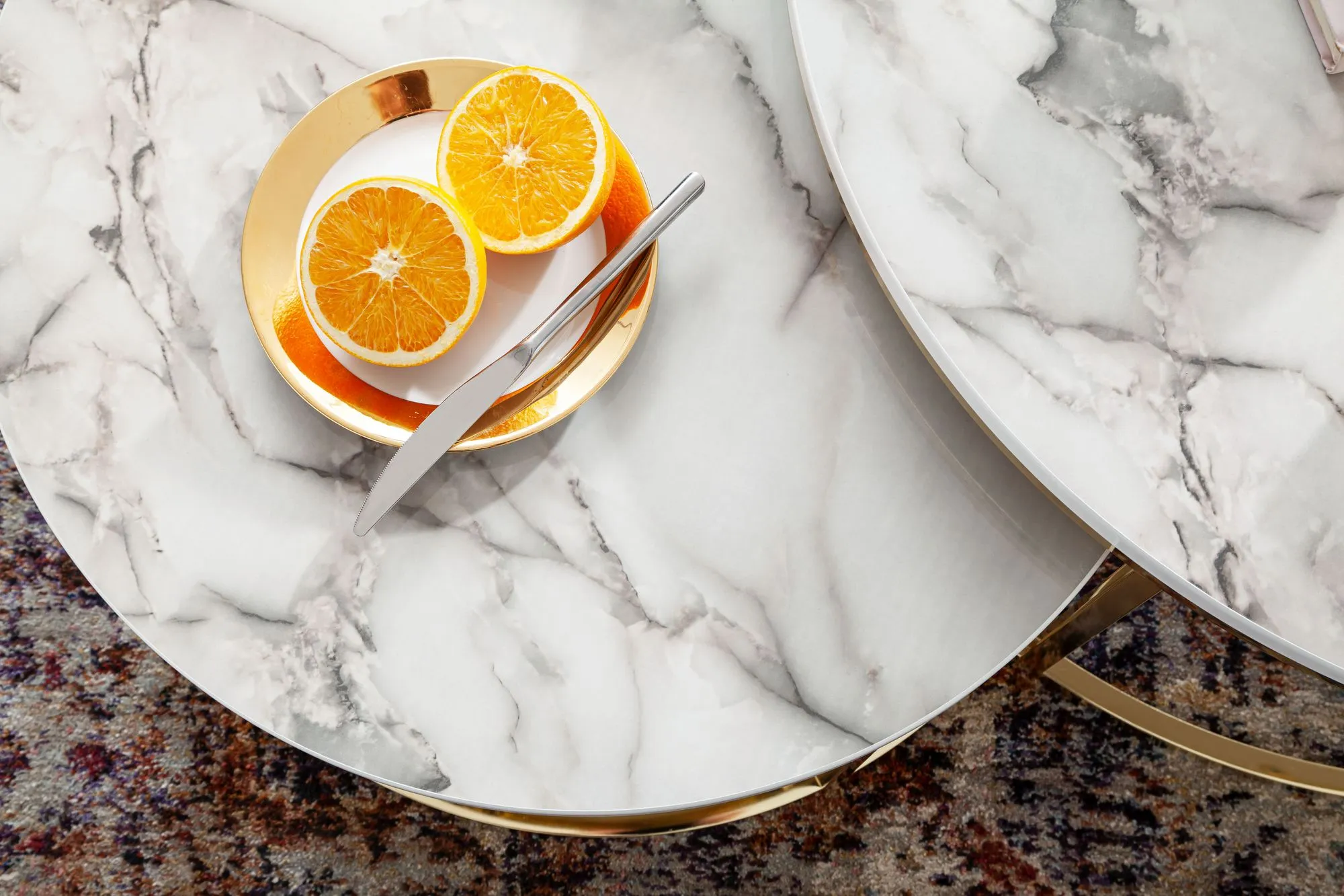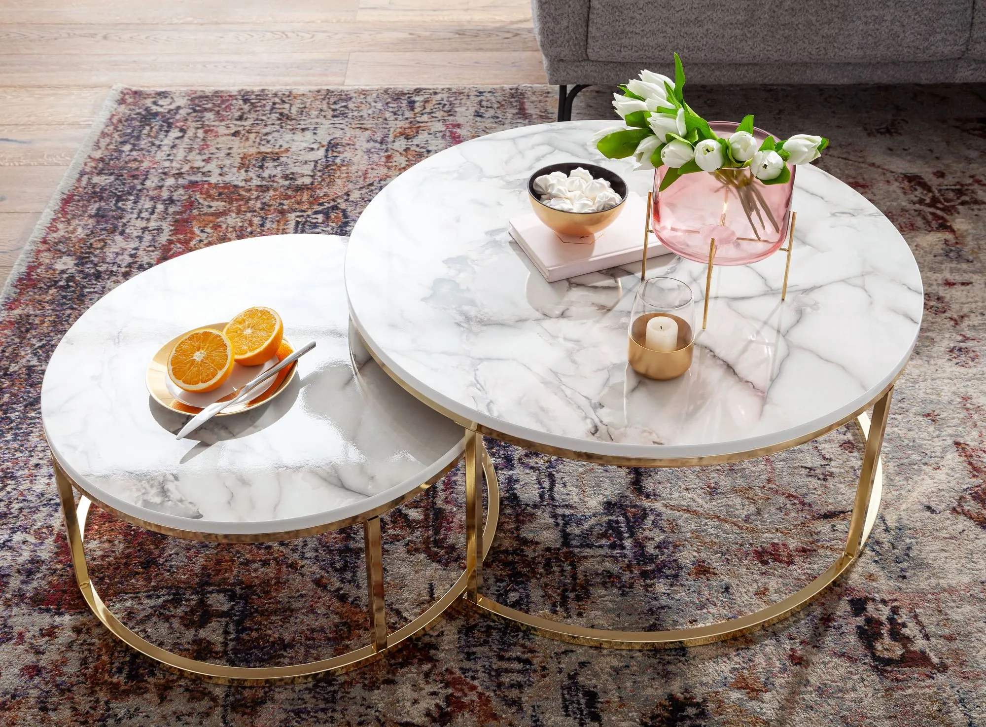 Wohnling Couchtisch 2er Set Weiß Gold Marmor Optik Sofatisch WL6.508 Rund Modern