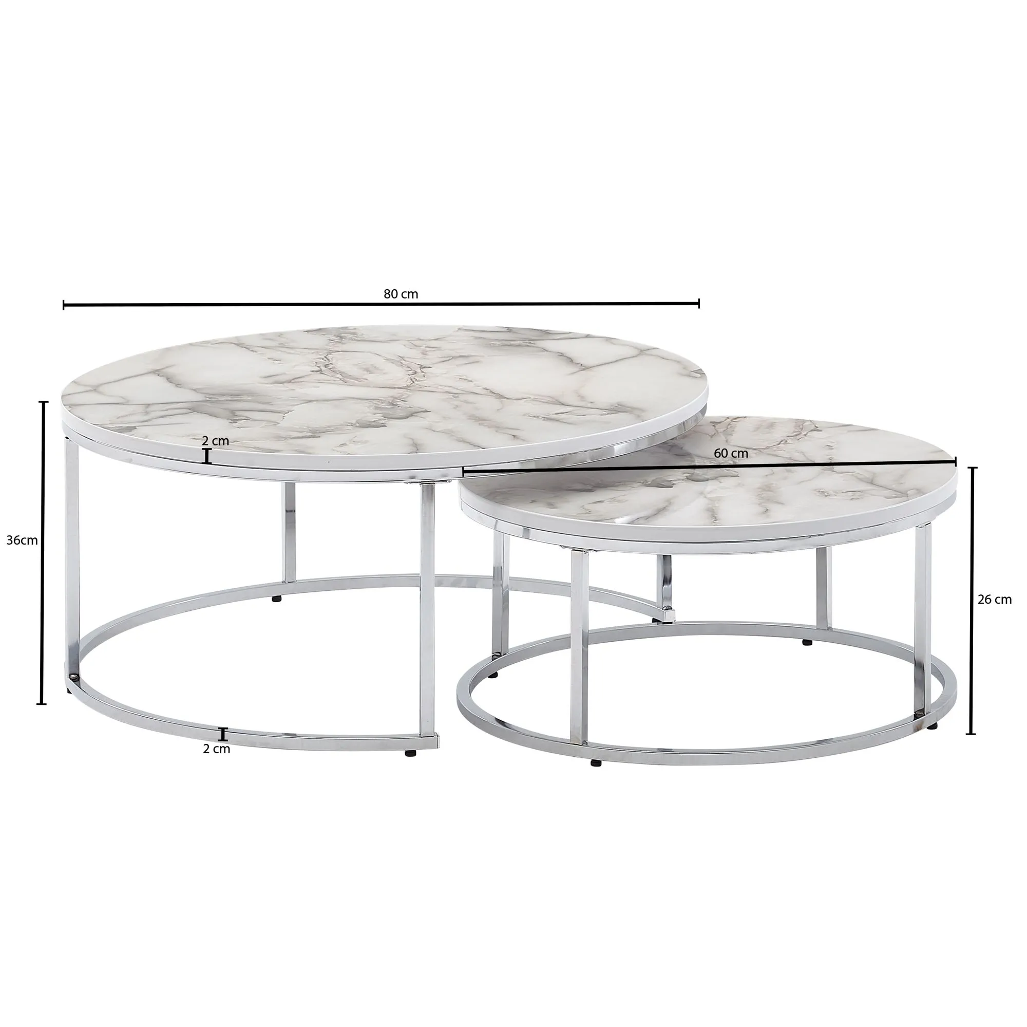 Wohnling Couchtisch 2er Set Weiß Silber Marmor Optik Sofatisch WL6.509 Rund Modern
