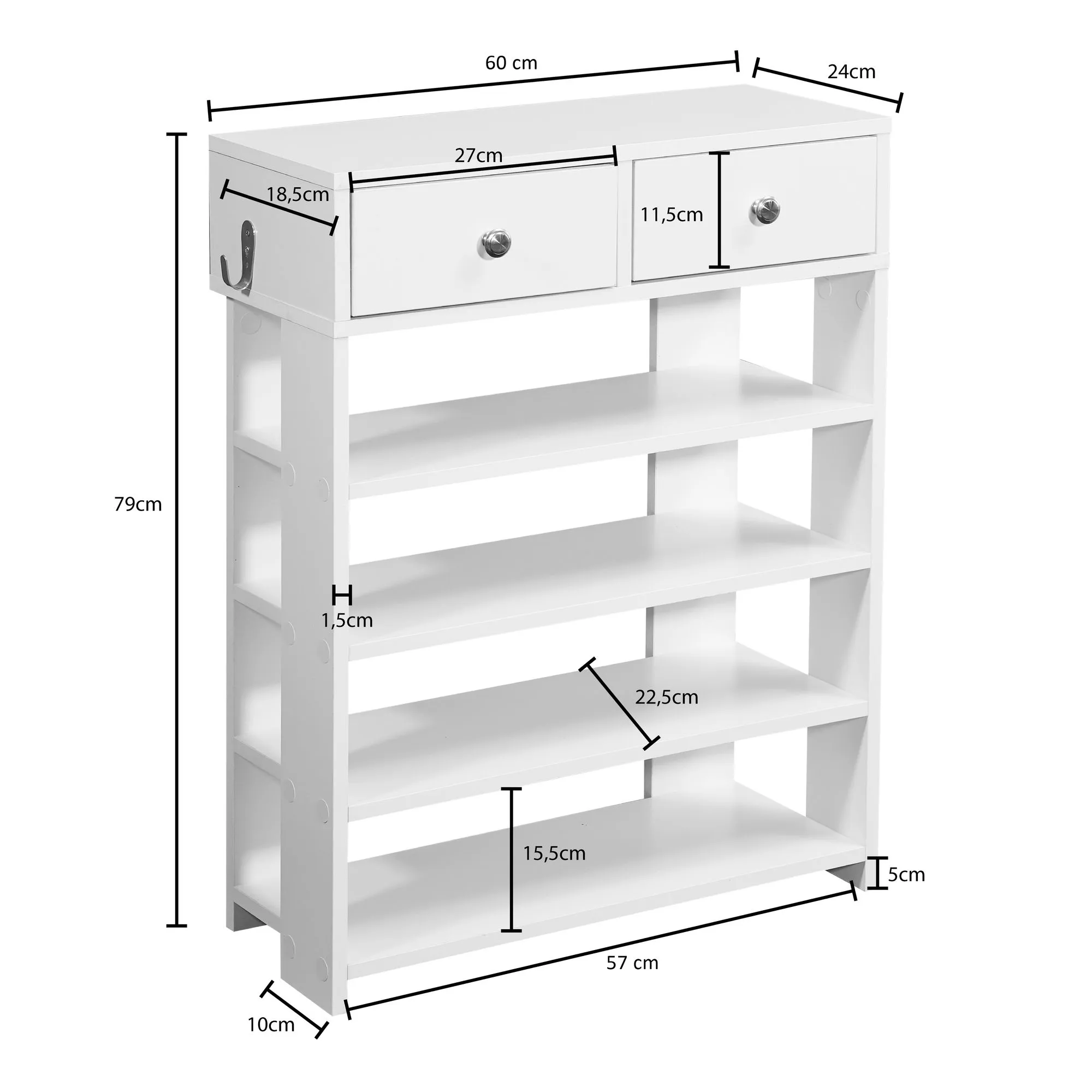 Wohnling Design Schuhregal 60 x 79 x 24 cm Flurregal Weiß