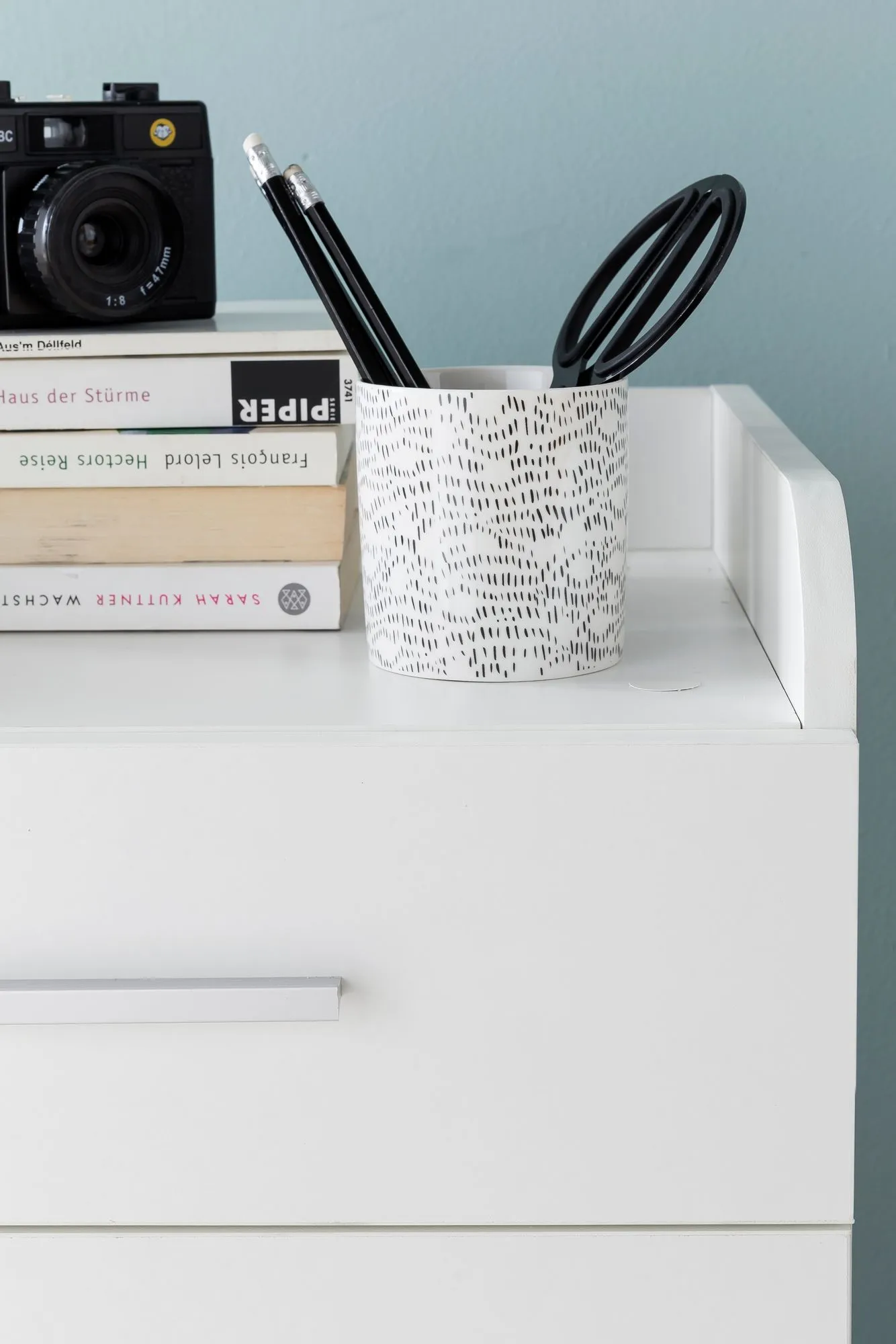 WOHNLING Rollcontainer Kent WL5.748 - 40 x 70,5 x 33 cm Weiß | Schreibtisch-Container Rollschrank 4 Schubladen | Moderner Schubladencontainer mit Rollen | Standcontainer Bürocontainer Beistellcontainer
