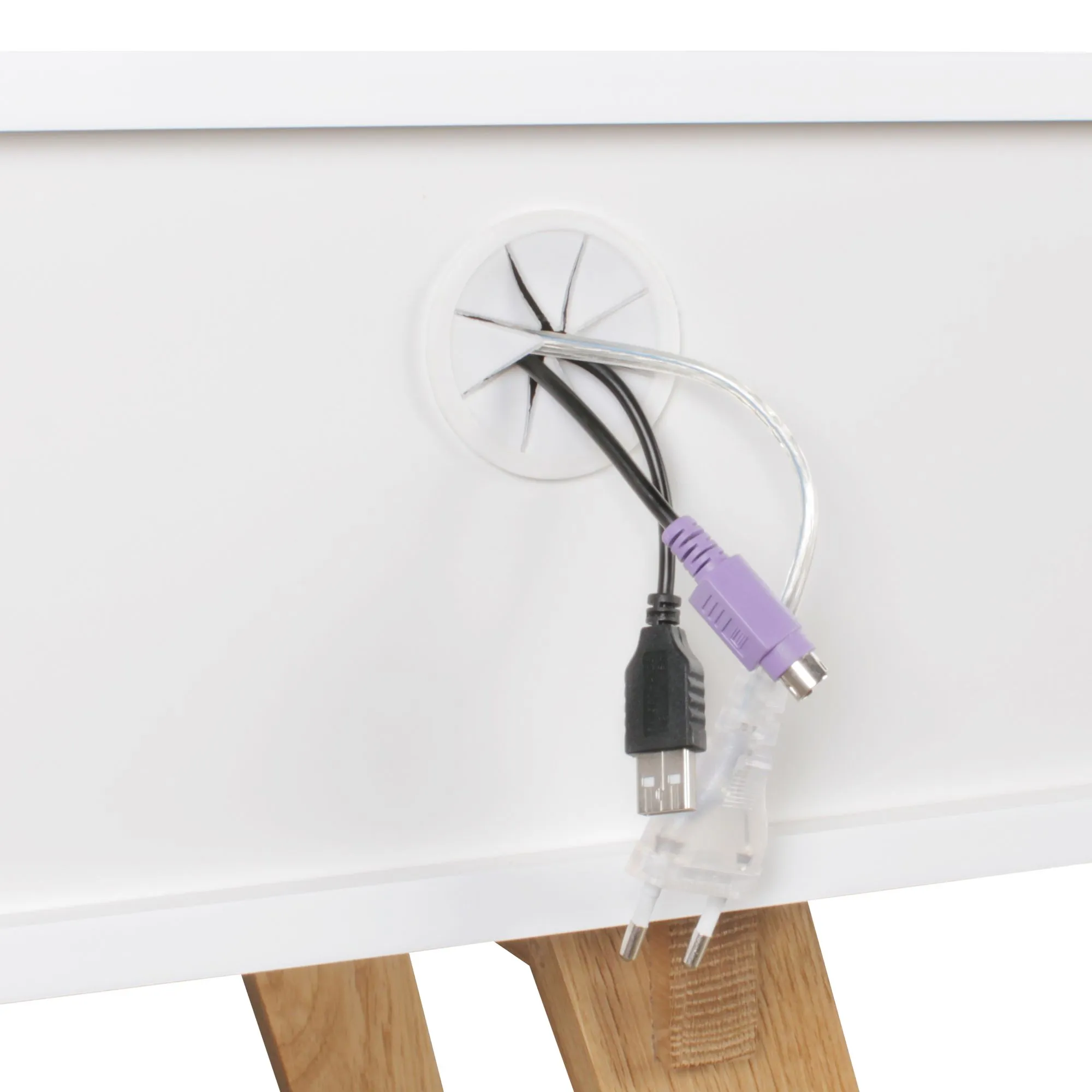 - Zwei Kabeldurchlässe auf der Rückseite der Regalfächer vorhanden