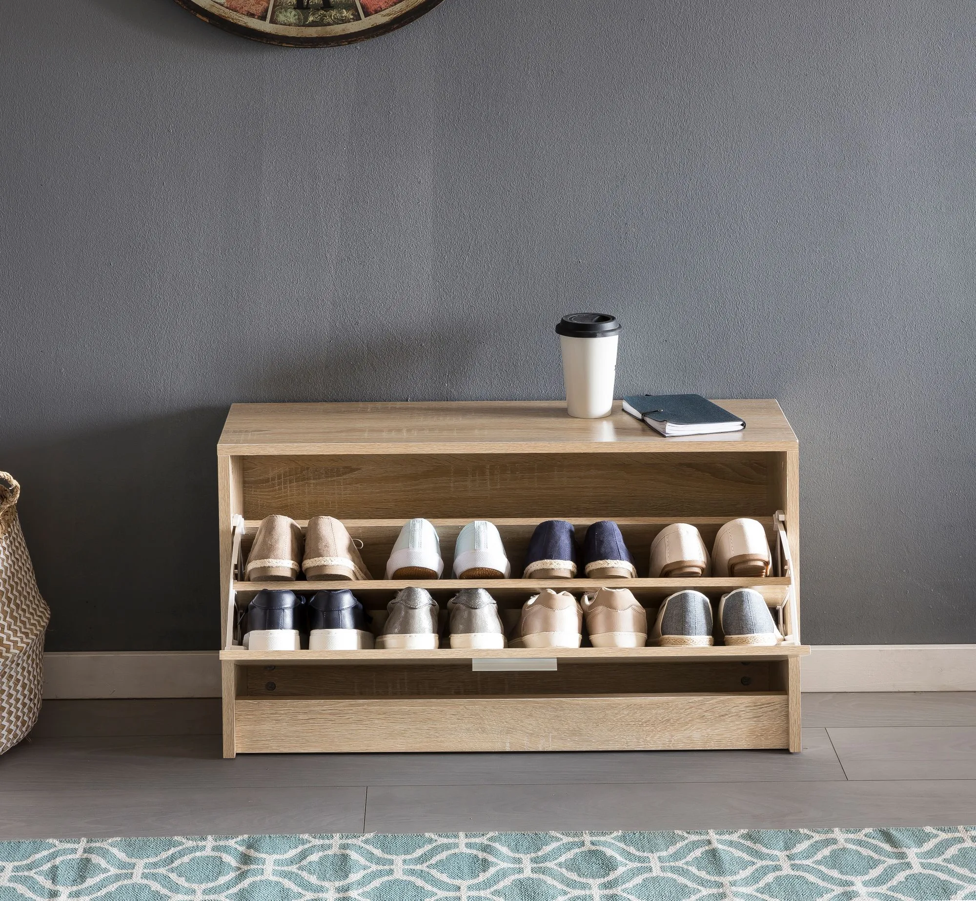 Wohnling Schuhkipper SPLIT Modern 80 x 47 x 24 cm Holz Schuhregal Sonoma 1 Fach