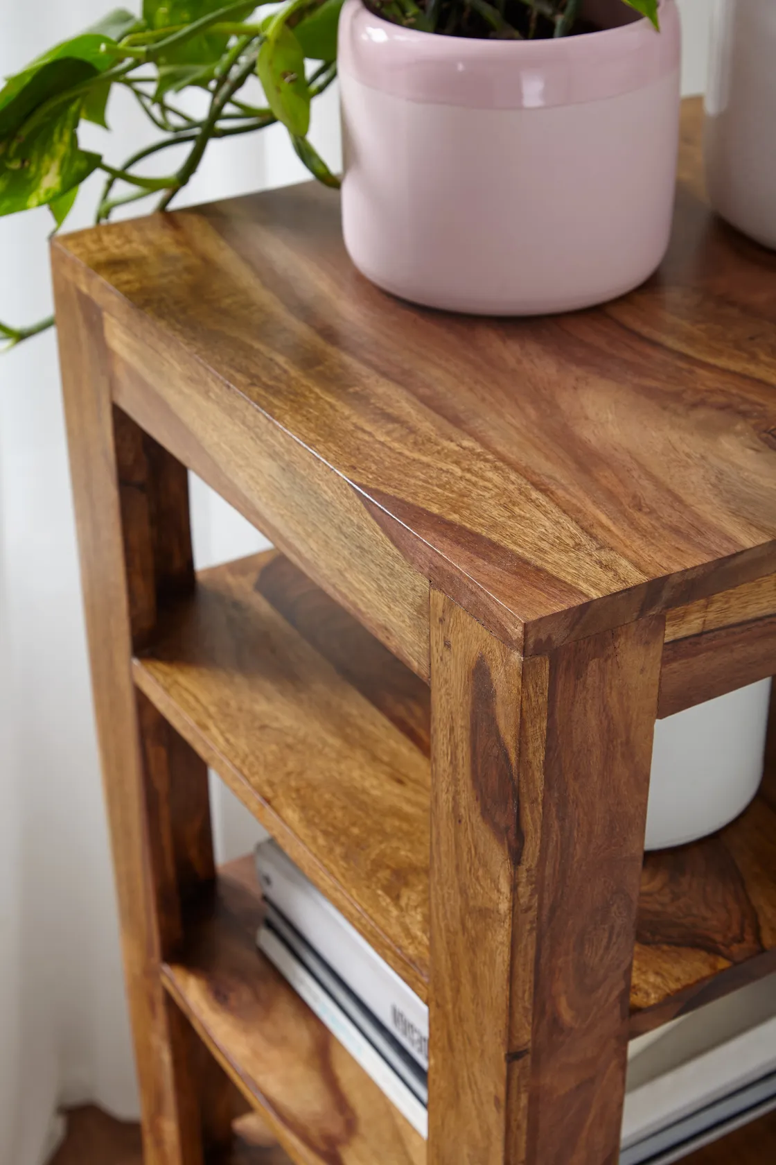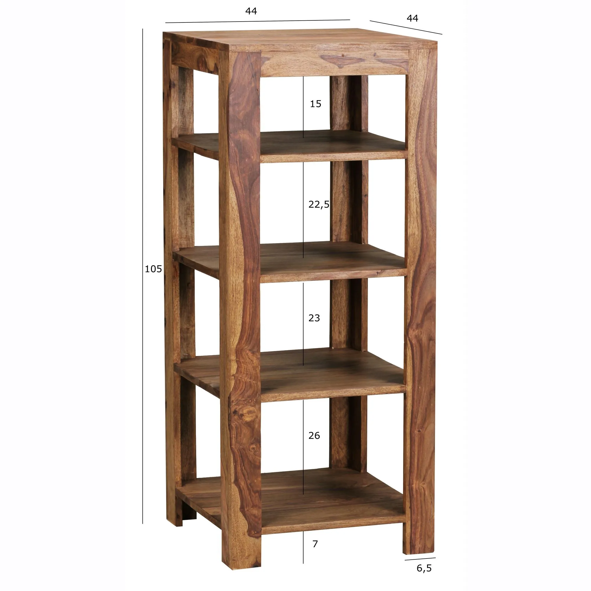 Wohnling Standregal MUMBAI Massiv-Holz Sheesham 105 cm Wohnzimmer-Regal mit 4 Ablagefächer Design Landhaus-Stil Beistelltisch