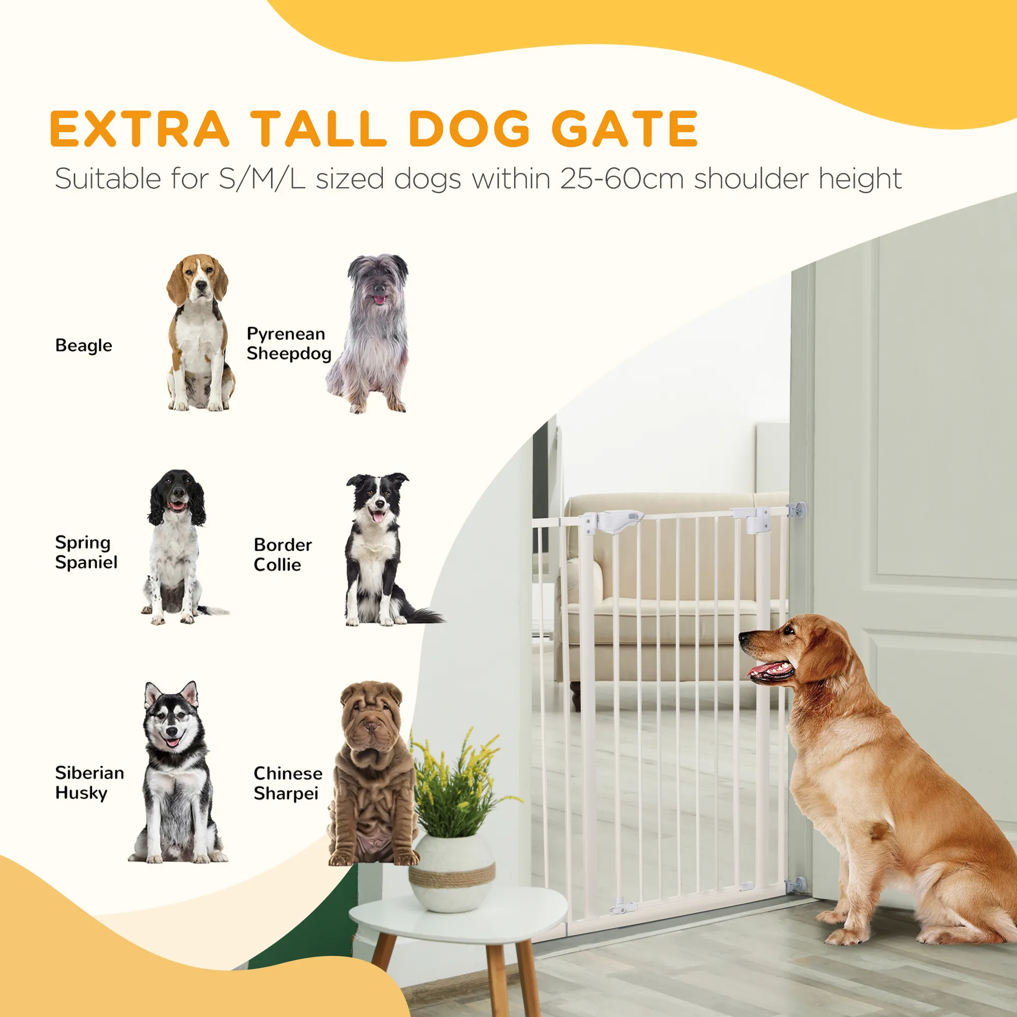 Absperrgitter für Hunde, extra hoch, Schließautomatik, Metallrahmen, 97,5 x 104,1 cm, Weiß