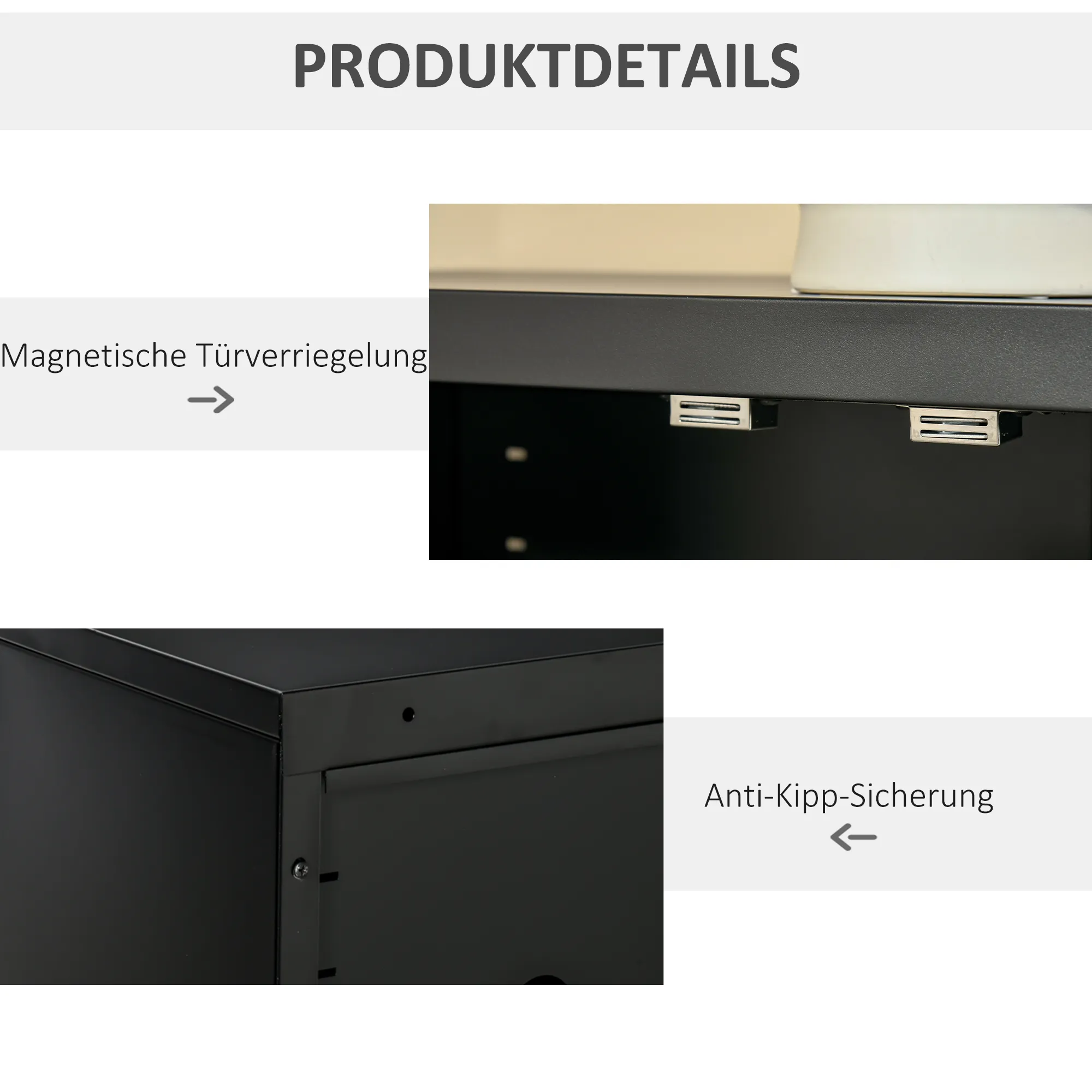 Optimieren sie ihr Zuhause mit diesem praktischen Aufbewahrungsschrank. Die Metallkonstruktion bietet Haltbarkeit und verleiht Ihrem Raum einen professionellen Look. Die Kommode ist mit einer Metalltür mit Lüftungsschlitzen versehen, um Gegenstände außer Sichtweite zu halten und trotzdem Belüftung zu gewährleisten. Geeignet dieser Aktenschrank für die Aufbewahrung von Werkzeugen und Zubehör sowie von Handtüchern oder Büchern.