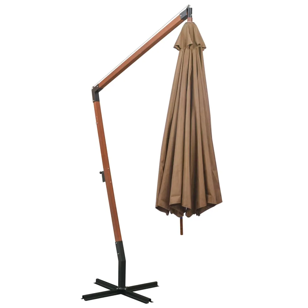 Ampelschirm mit Mast Taupe 3,5x2,9 m Massivholz Tanne