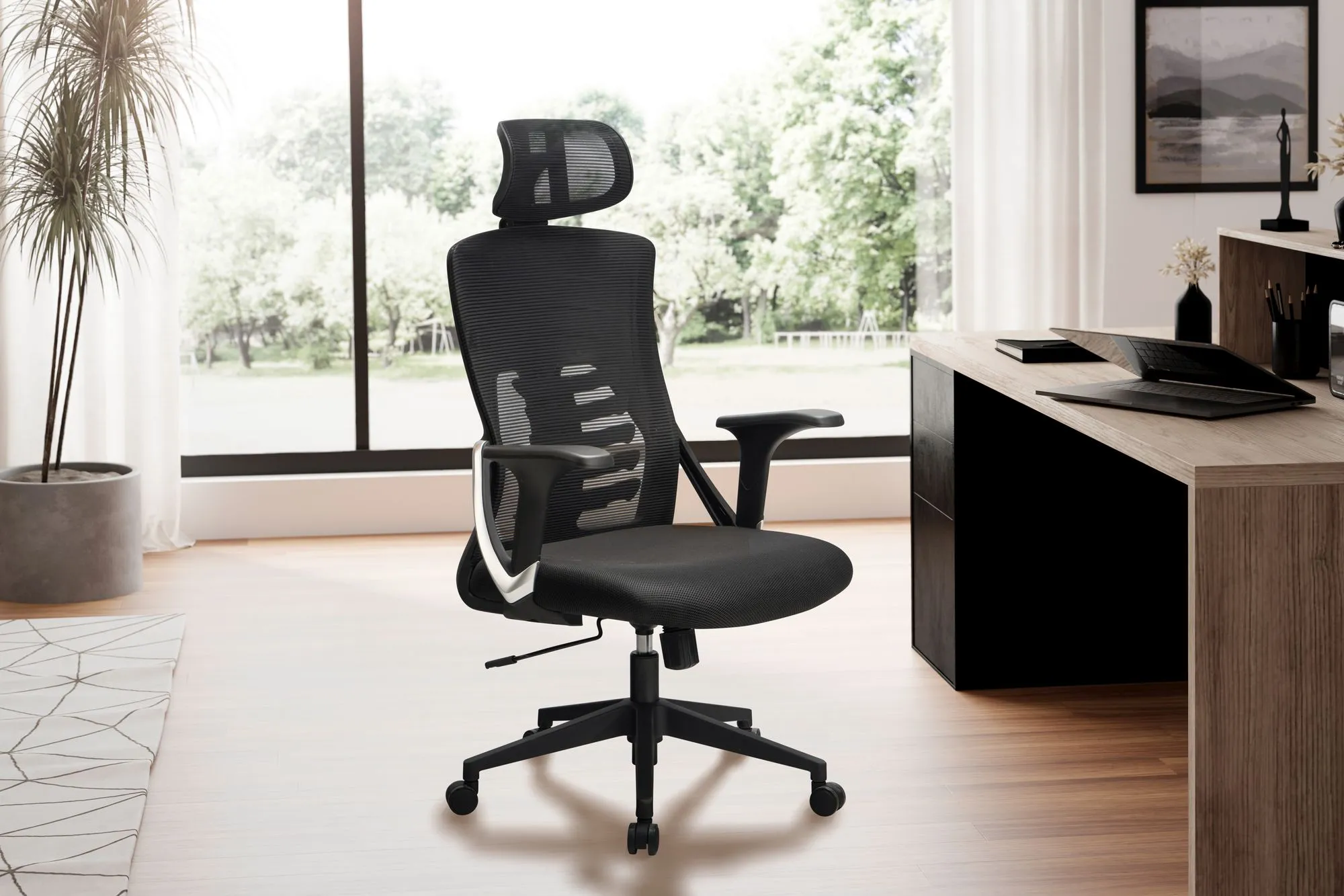 Amstyle Bürostuhl Schwarz Mesh-Bezug Schreibtischstuhl bis 120 kg mit Kopfstütze