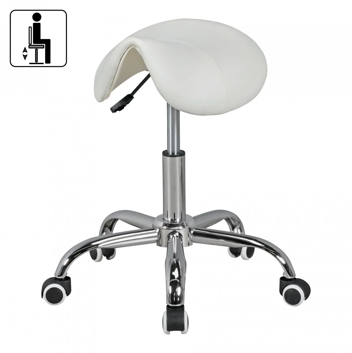 - Weiße Kunstleder-Sitzfläche in Sattelform