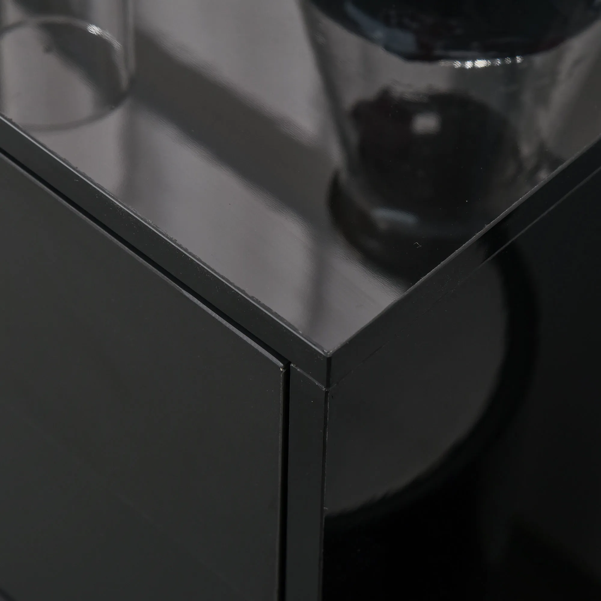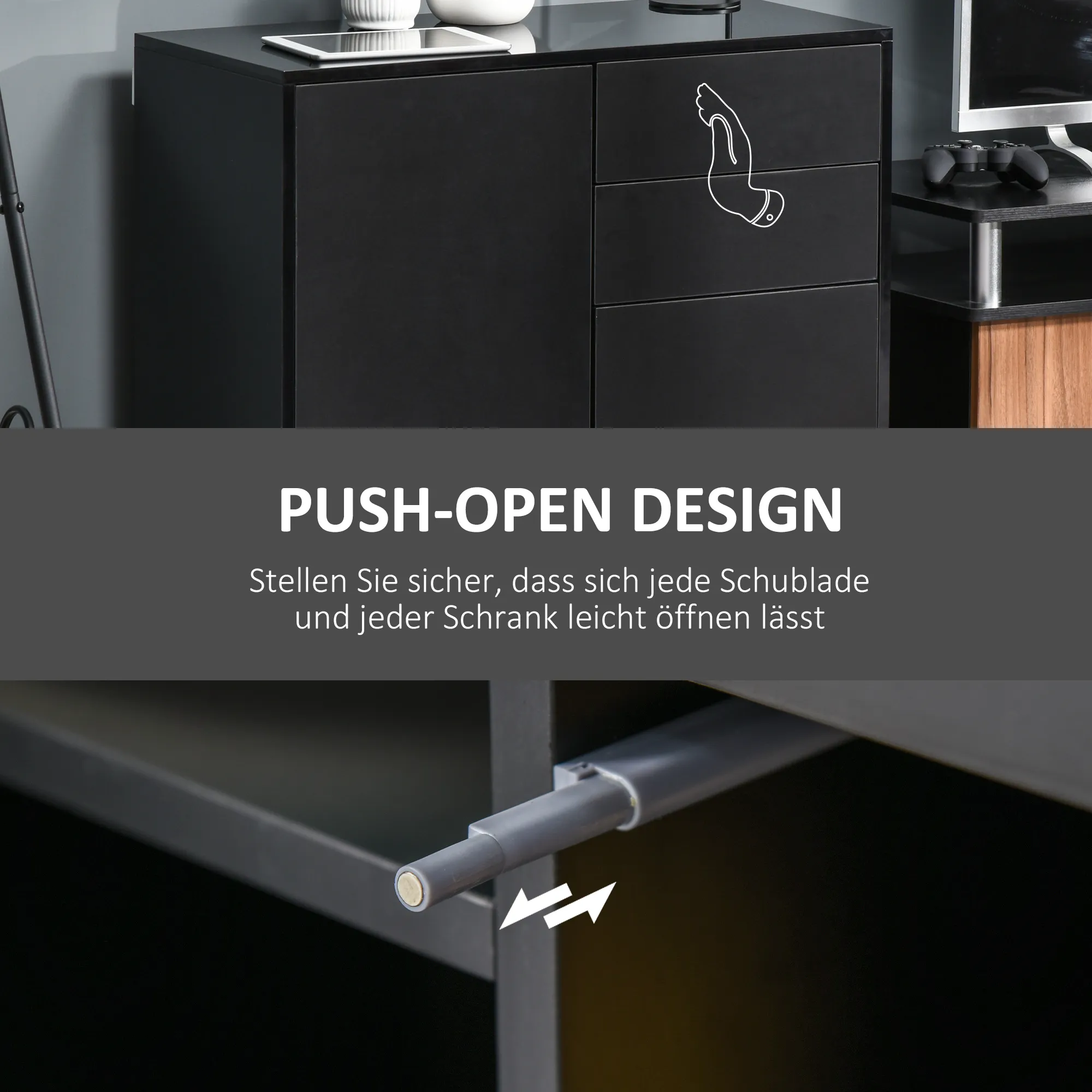 Schlichtes Design und intelligente Stauraumlösungen, perfekt für den Alltag. Dieses elegante Sideboard ist eine Bereicherung für jedes Wohnzimmer und verbindet elegantes Design mit praktischer Aufbewahrung. Die glänzende Oberfläche beleuchtet den Raum, während zwei Schränke und zwei Schubladen viel Platz für Sammlungen oder Dekoration bieten. Die push-to-open Türen ermöglichen einen grifflosen Zugang, so bleibt alles leicht zugänglich.