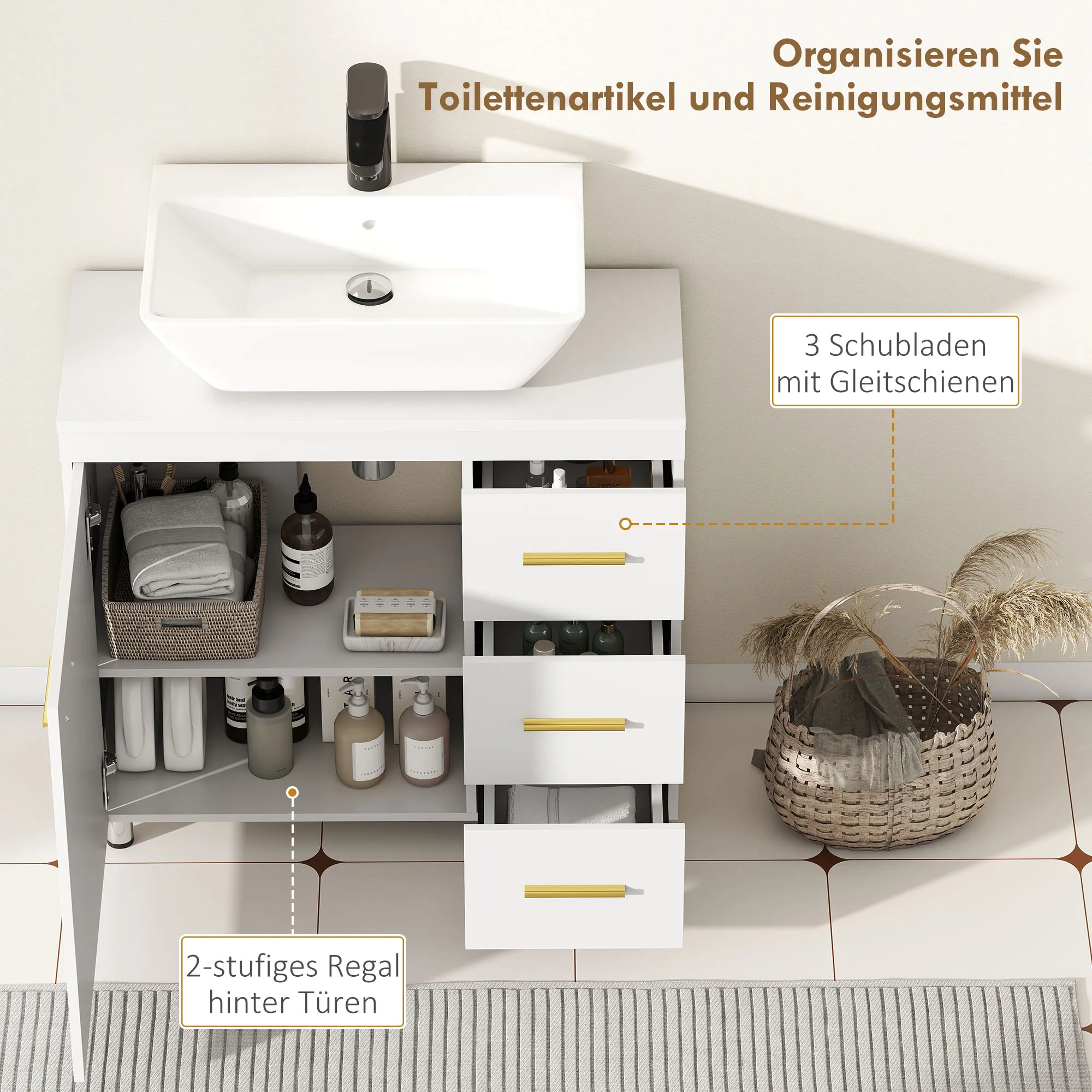 Badezimmer-Unterschrank, 3-stufiges Design, MDF, Spanplatte, Weiß