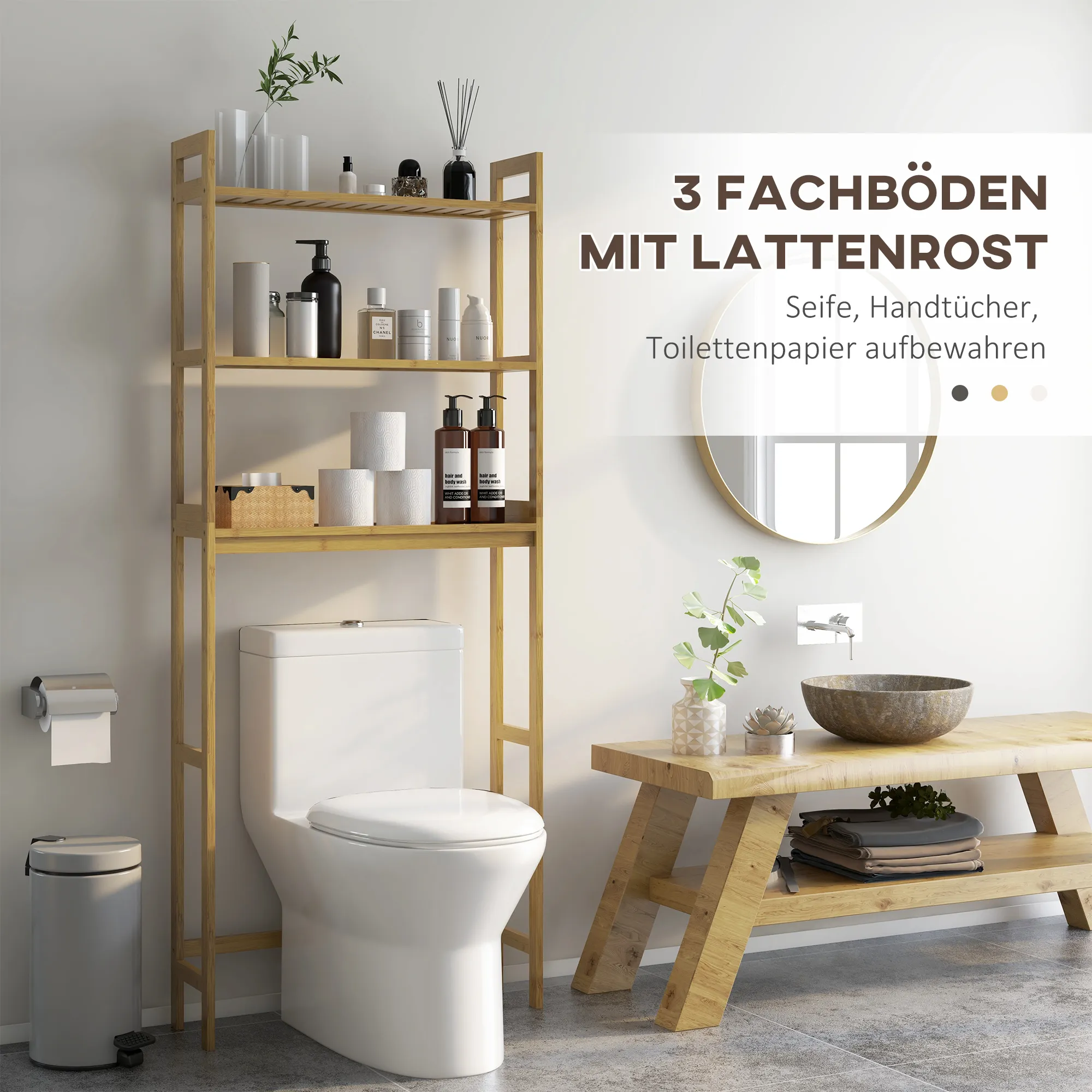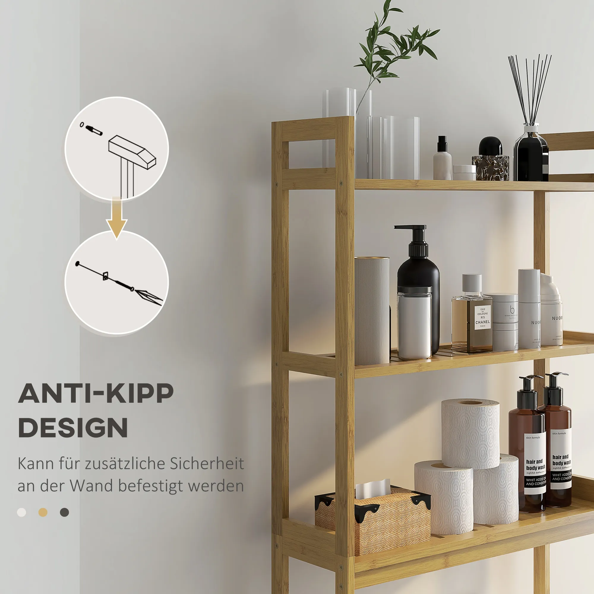 Nutzen Sie ungenutzten Platz in Ihrem Badezimmer und schaffen Sie zusätzlichen Stauraum für Badutensilien mit dem Schrank über dem WC. Mit seinen 3 offenen Ablagen im vertikalen Design ist das Badregal platzsparend und perfekt für kleine Räume geeignet. Der freistehende Schrank aus strapazierfähigem Bambus hat eine natürliche und warme Ausstrahlung und ist für den täglichen Gebrauch geeignet. Statt alles zu stapeln, haben Sie mit dem Bad-Organizer alles, was Sie brauchen, immer griffbereit.