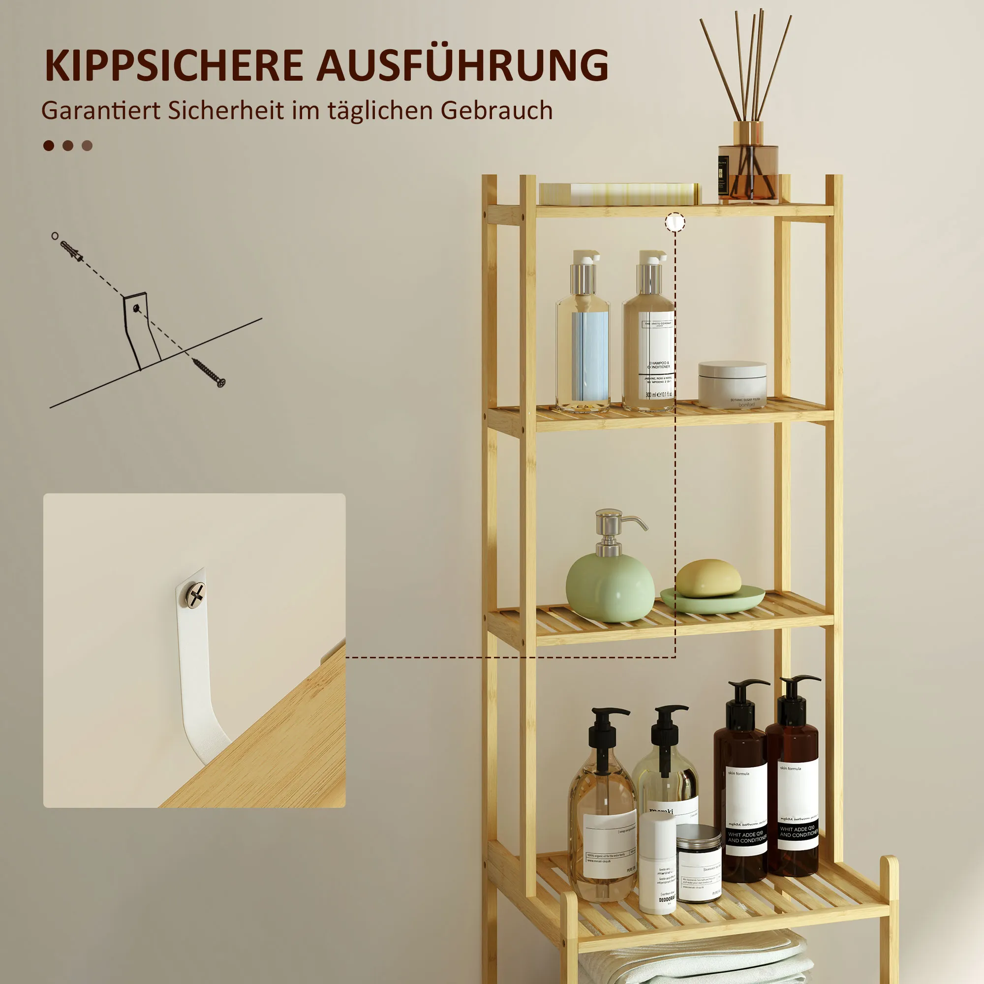 - Das Badregal dient verschiedenen Zwecken für vielseitigen Einsatz