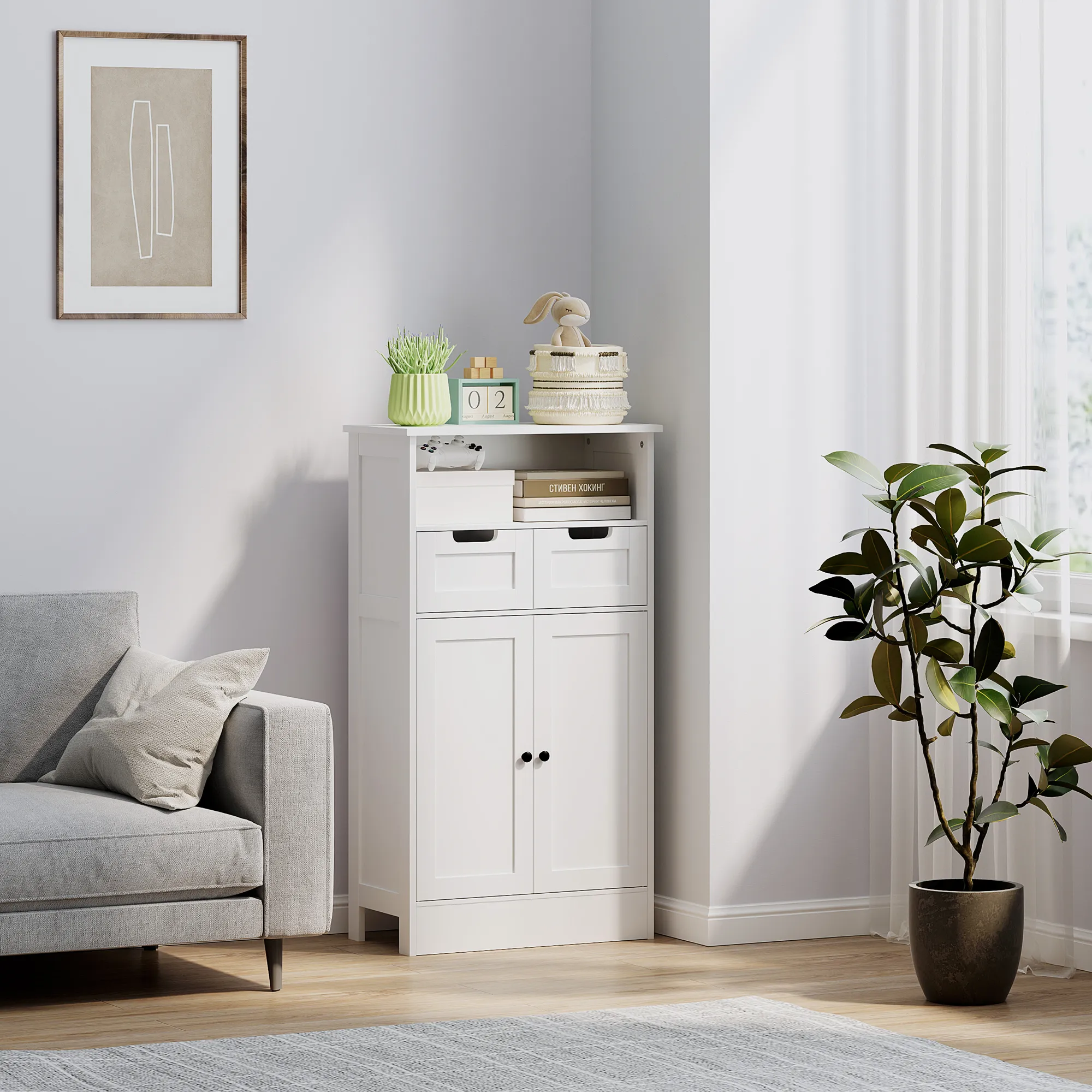 Badezimmerschrank mit 2 Schubladen, Tür, 60 x 30 x 109 cm, Weiß