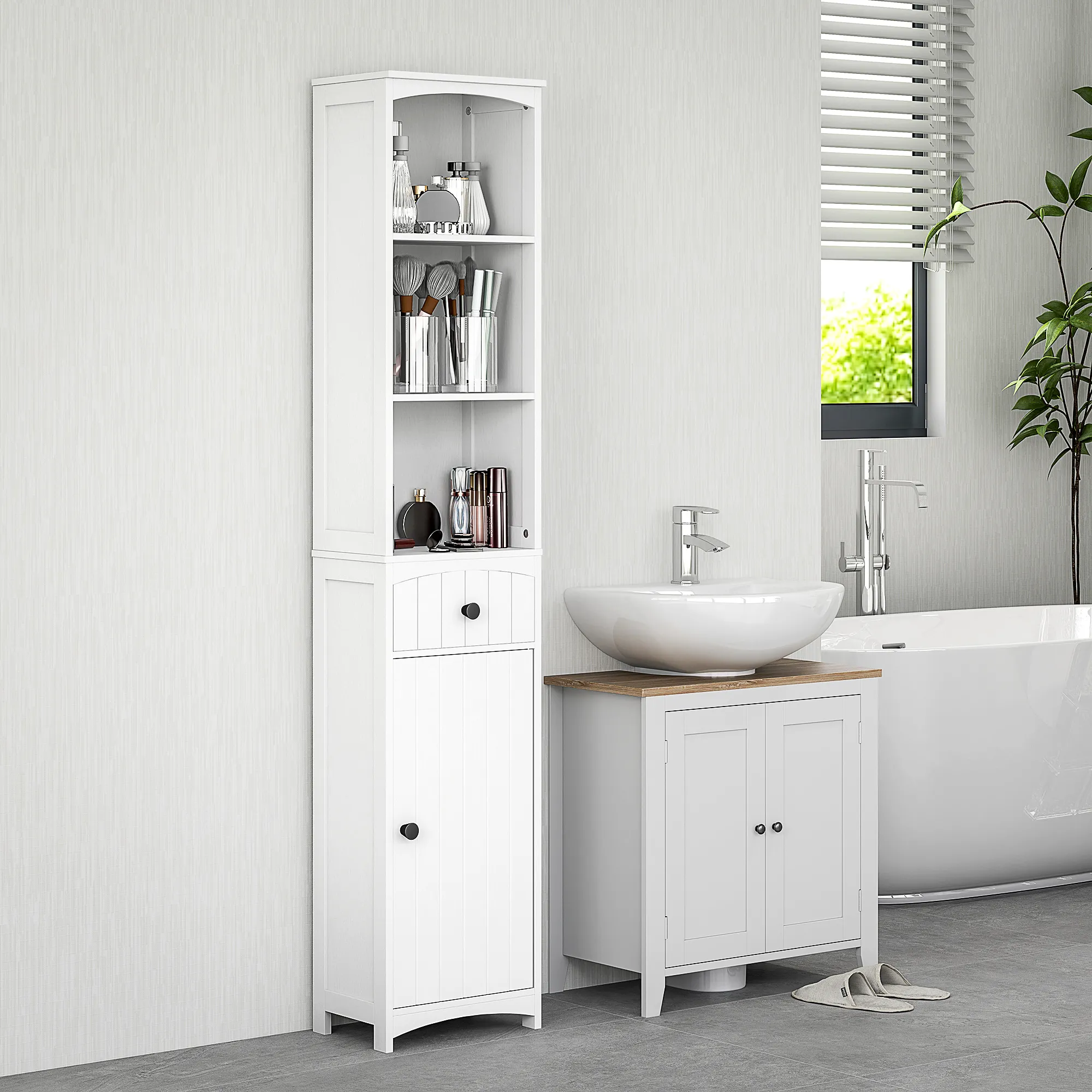 Badezimmerschrank mit 3 Regalen, 1 Schublade, robust, MDF, Weiß