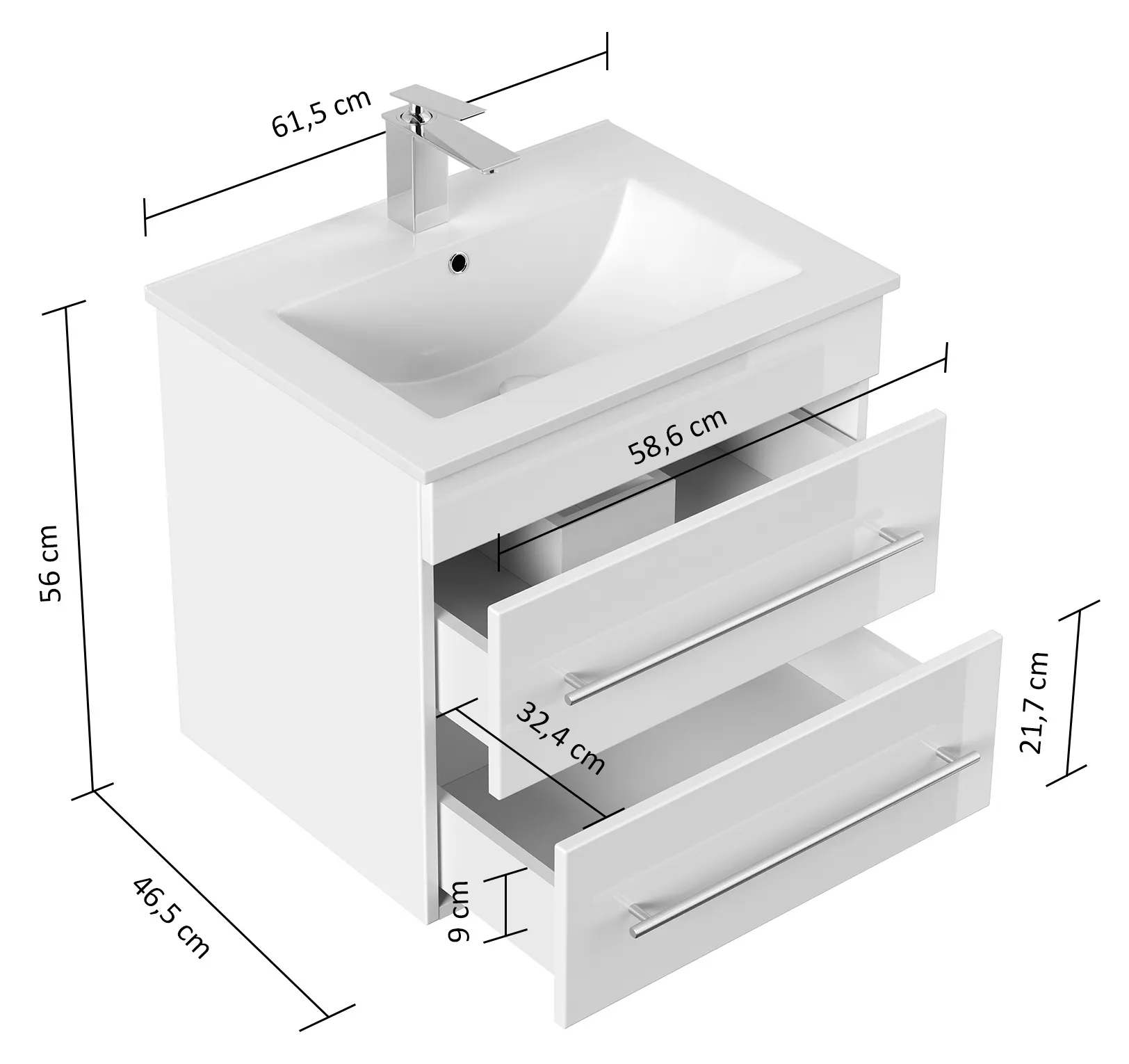 Das Badmöbel wurde designed in Deutschland und aus hochwertigem Holzwerkstoff gefertigt. Schubläden und/oder Türen sind mit einem Softclose System ausgestattet.