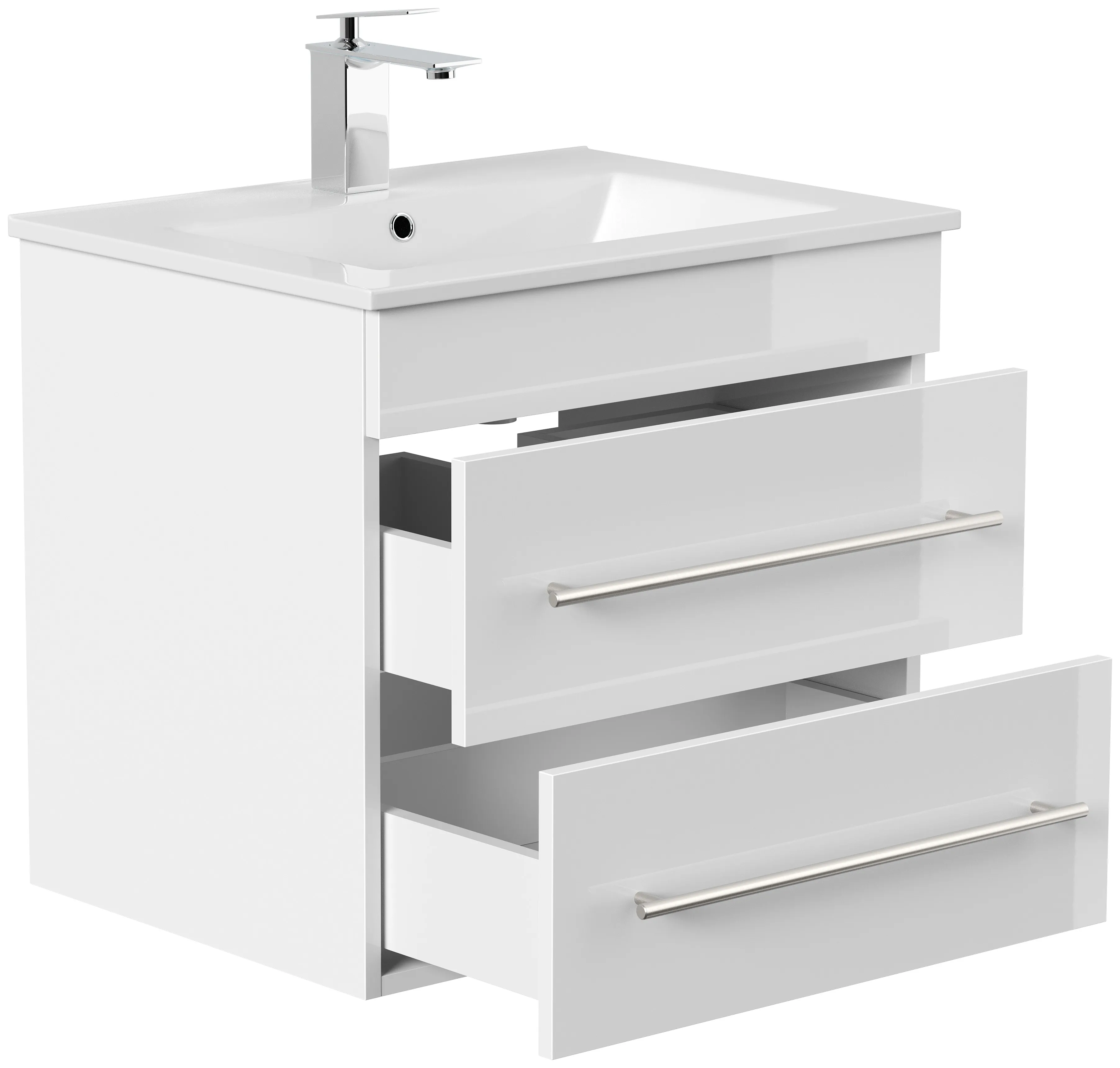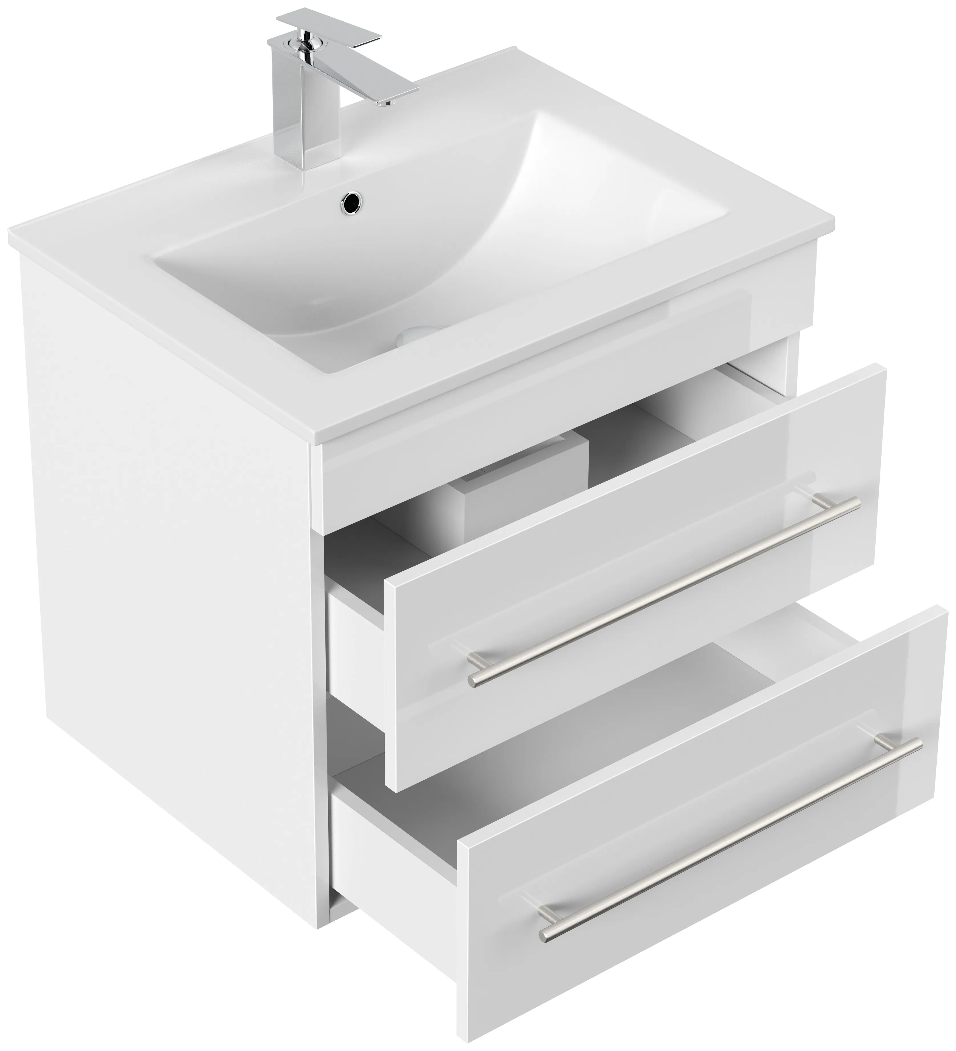 Badmöbel Waschtisch Unterschrank, 2 Schubladen mit Softclose (B/H/T) 59/54/45,6 cm.