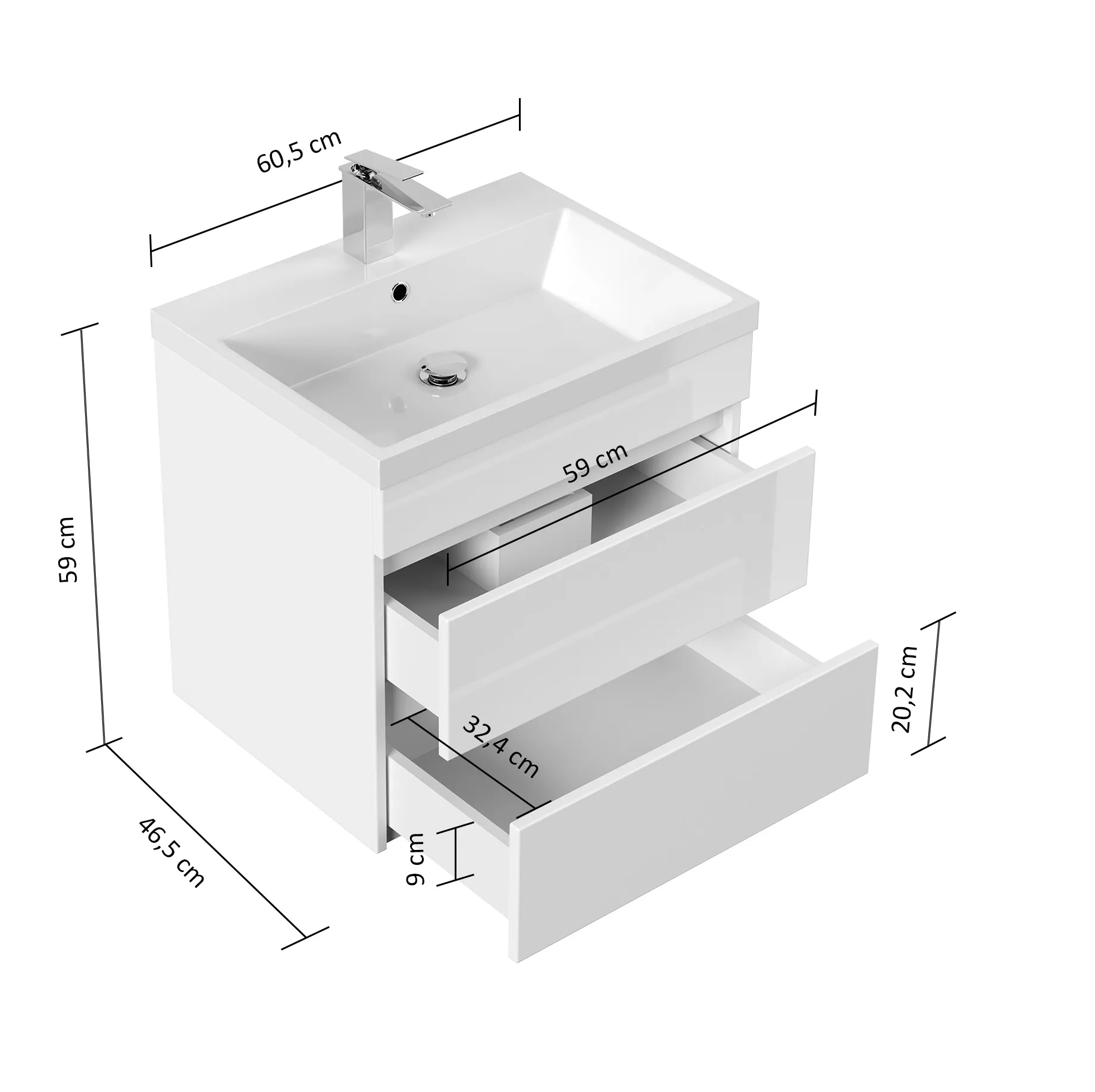 Unterschrank mit zwei grifflosen Schubladen mit Soft-Close (B/H/T) 59,4/54,4/45,7 cm,