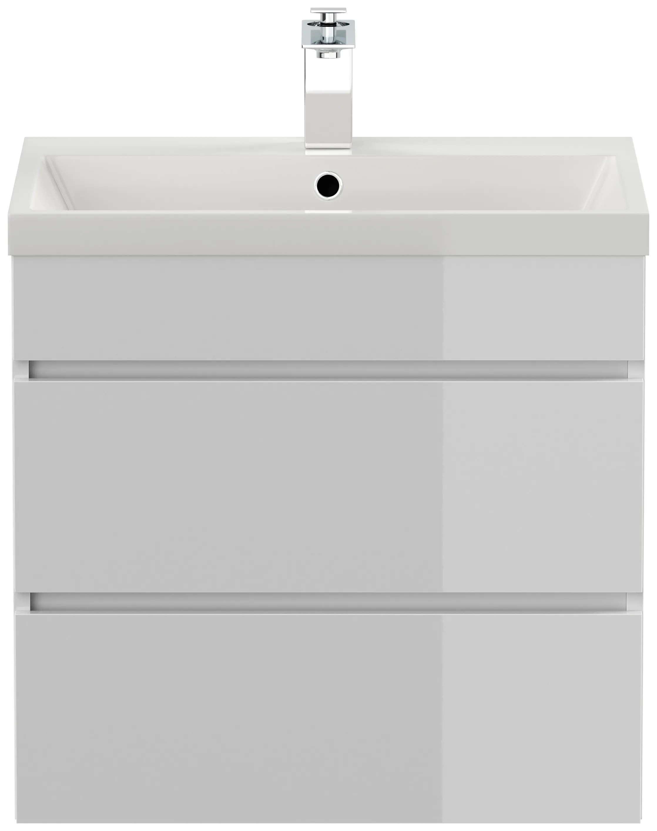 Badmöbel Fellini 60 weiss hochglanz mit drei grifflosen Schubladen