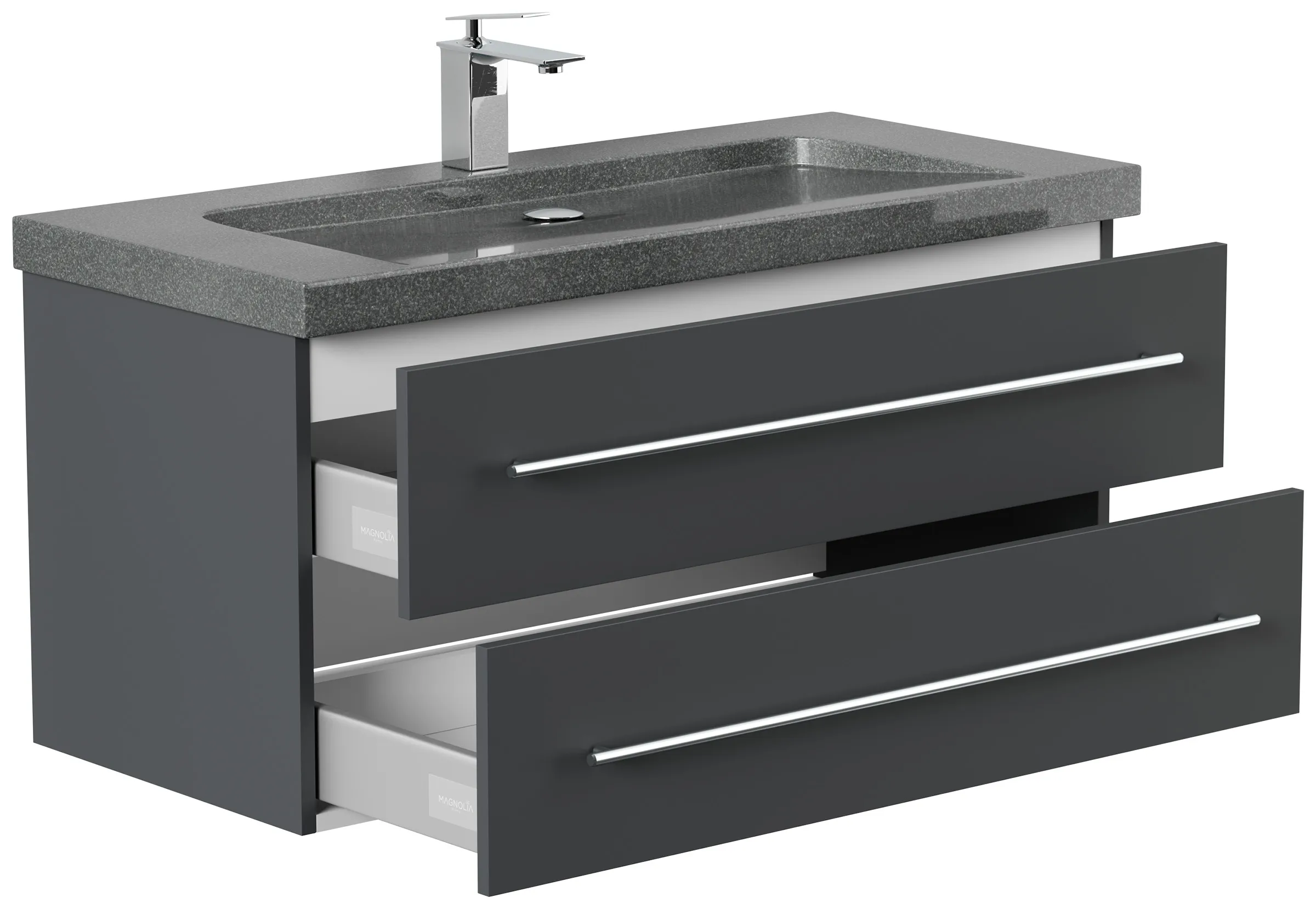 Badmöbel Granit G654 YAMO 100 cm 1 Hahnloch SoftClose grafit