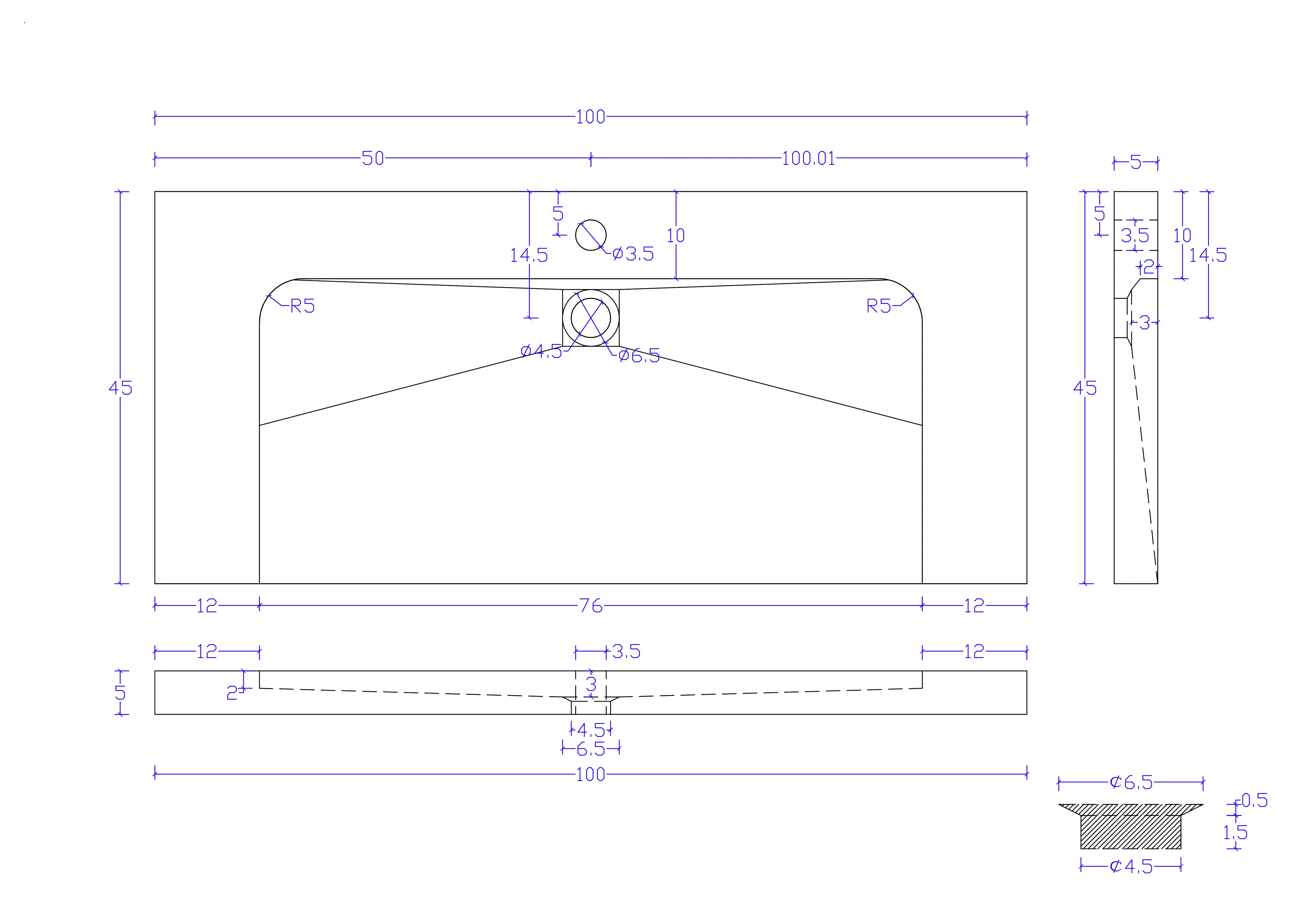 Waschbecken Granit Naturstein: (B/H/T) 100/5/45 cm,