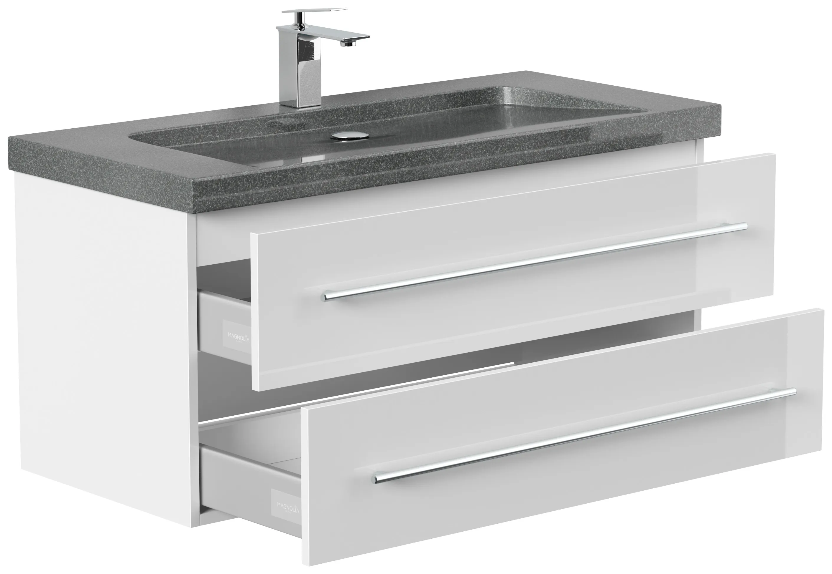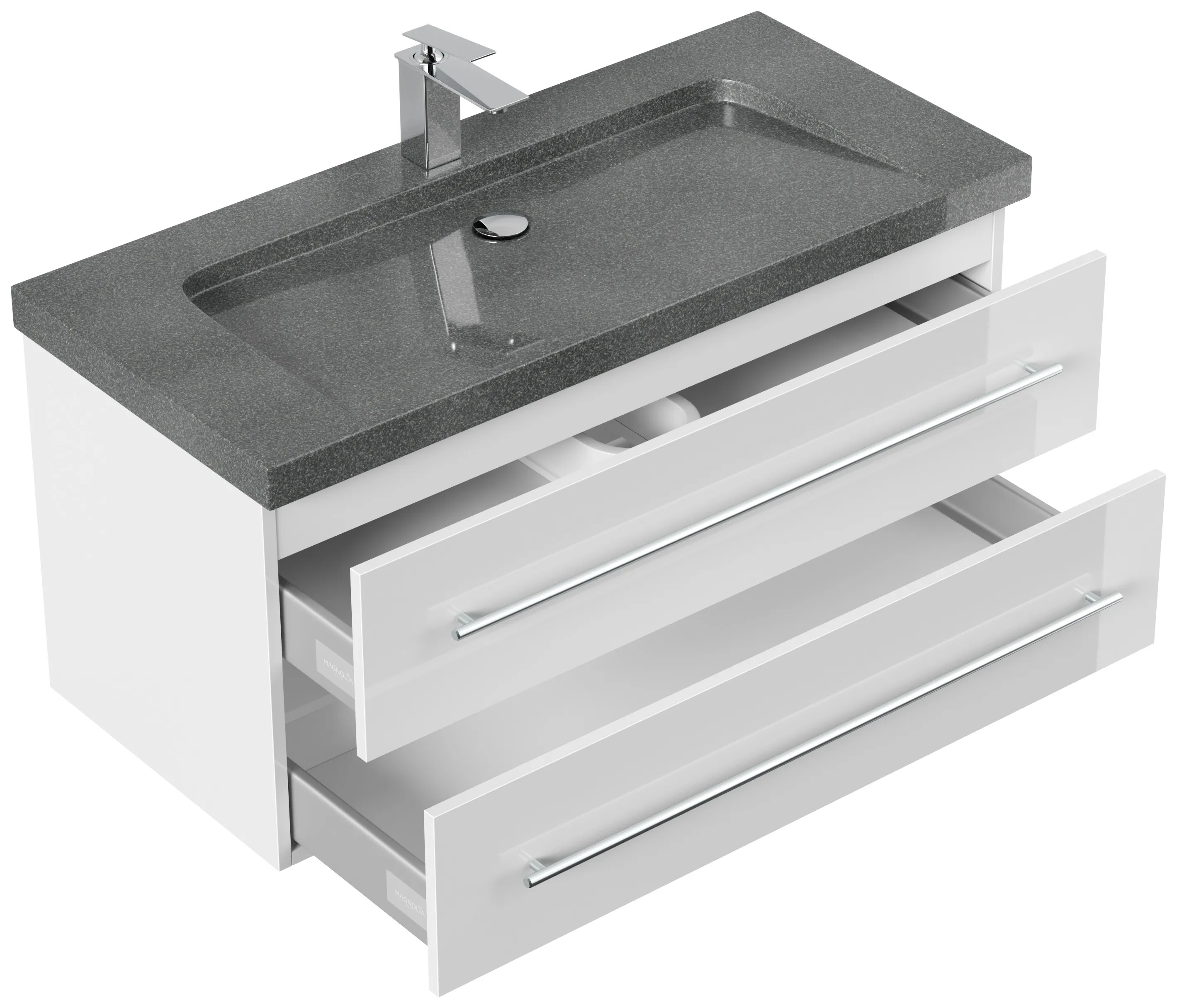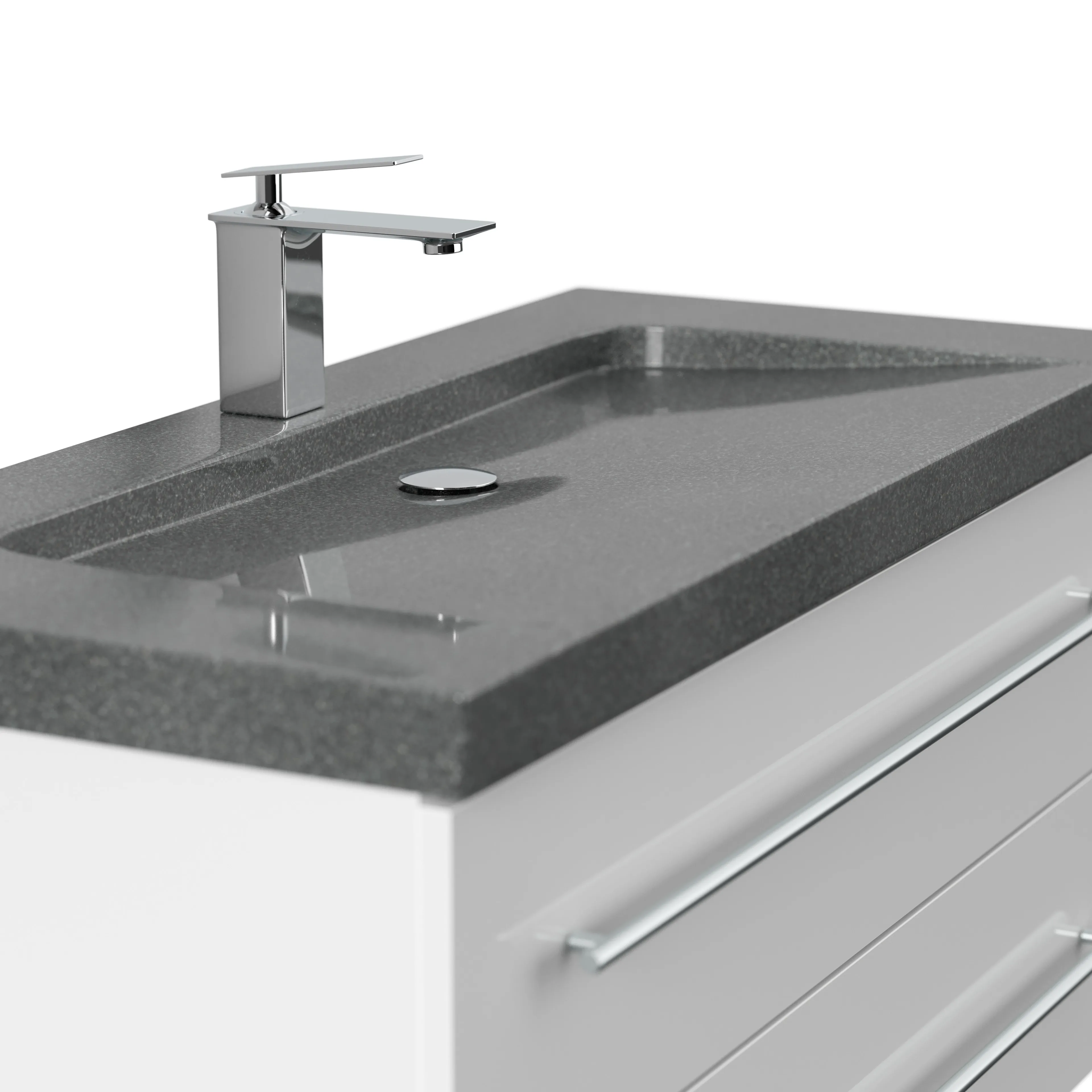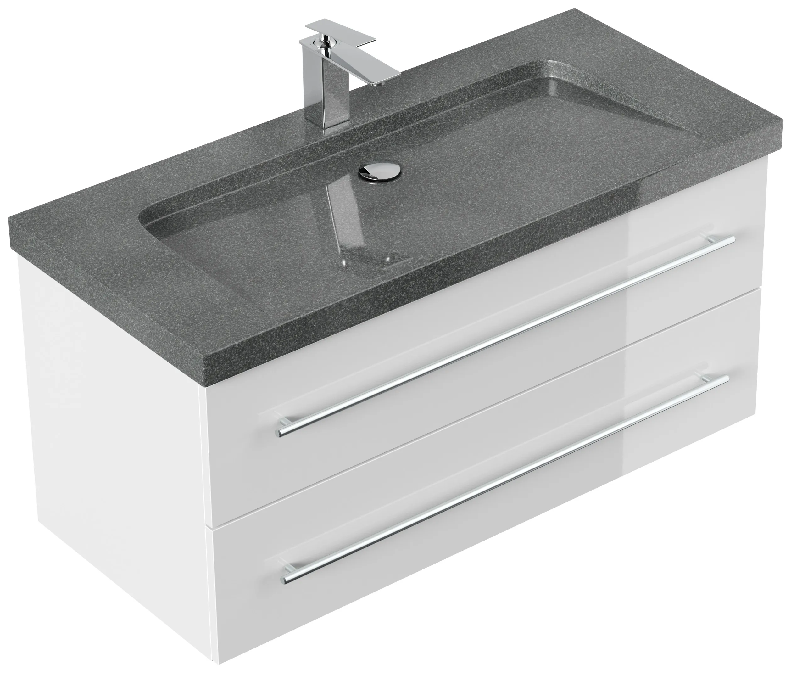 Badmöbel Granit G654 YAMO 100 cm 1 Hahnloch SoftClose weiß hochglanz