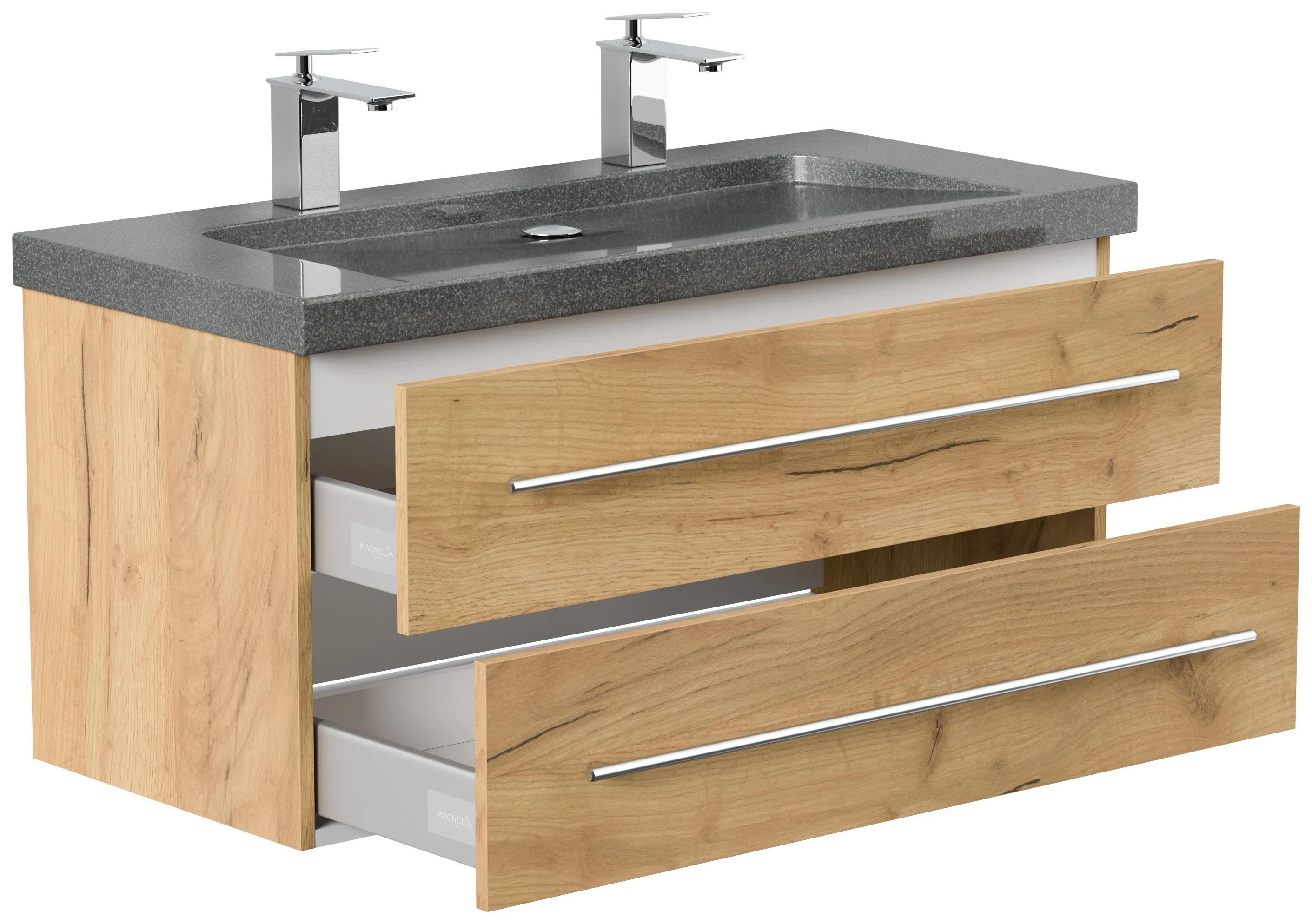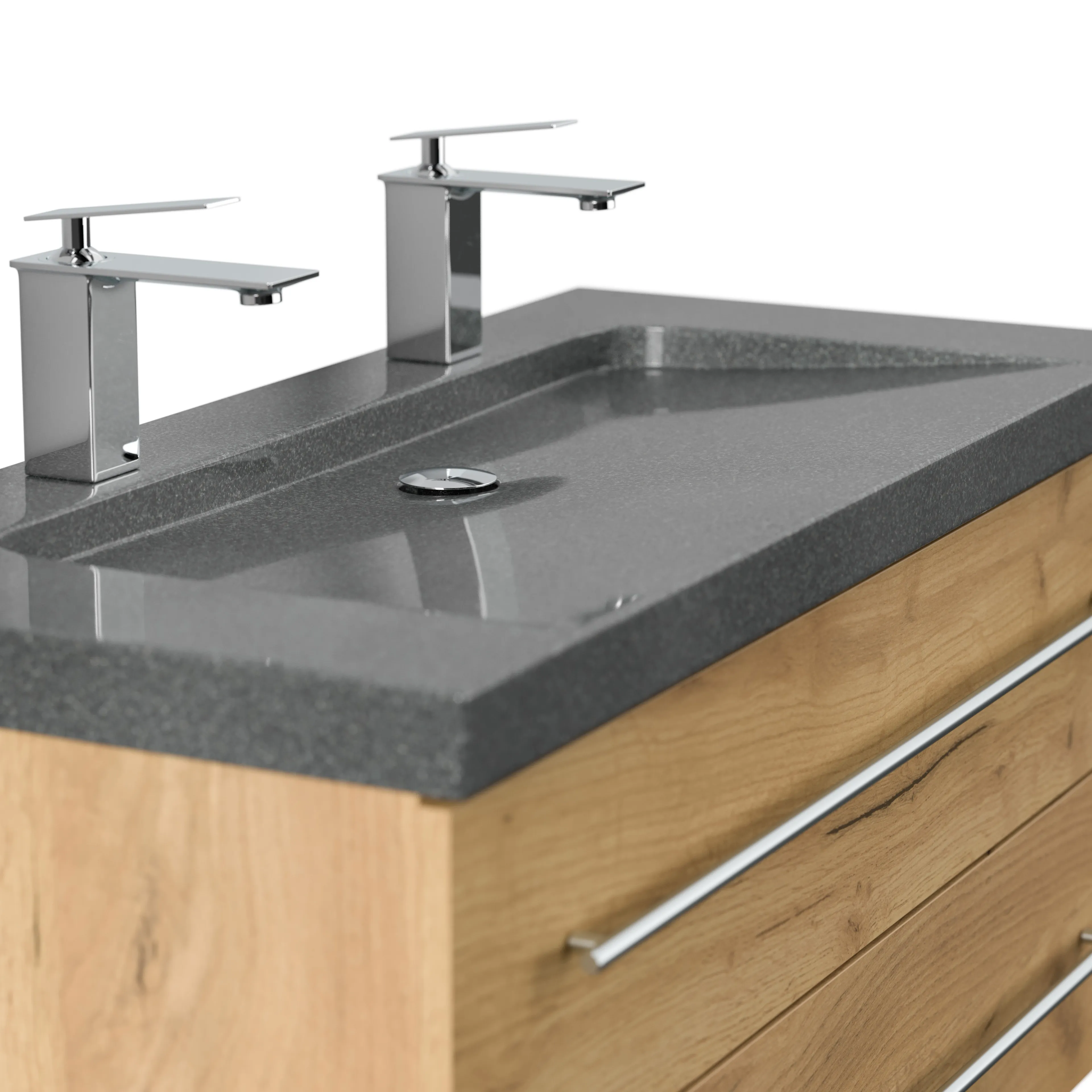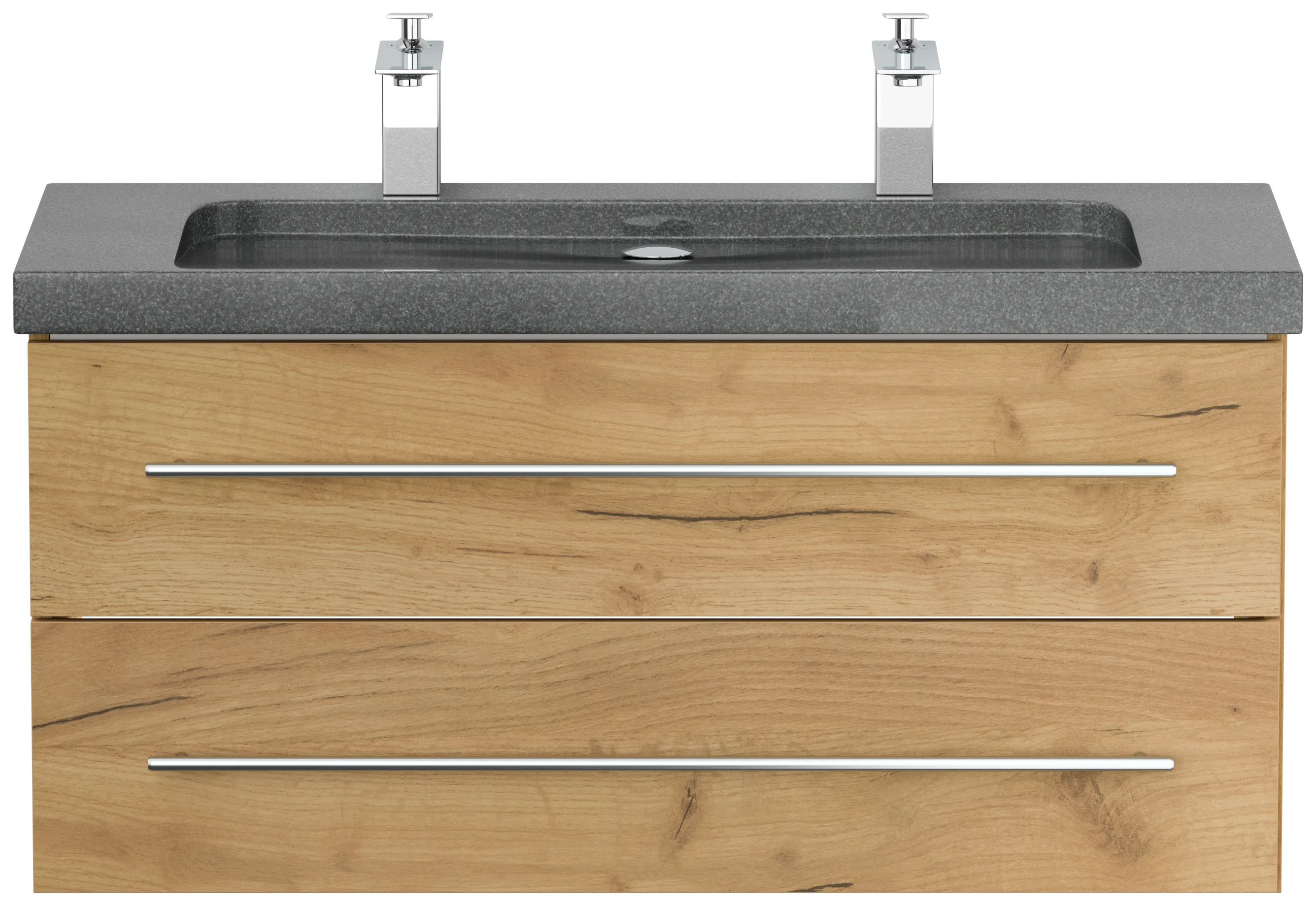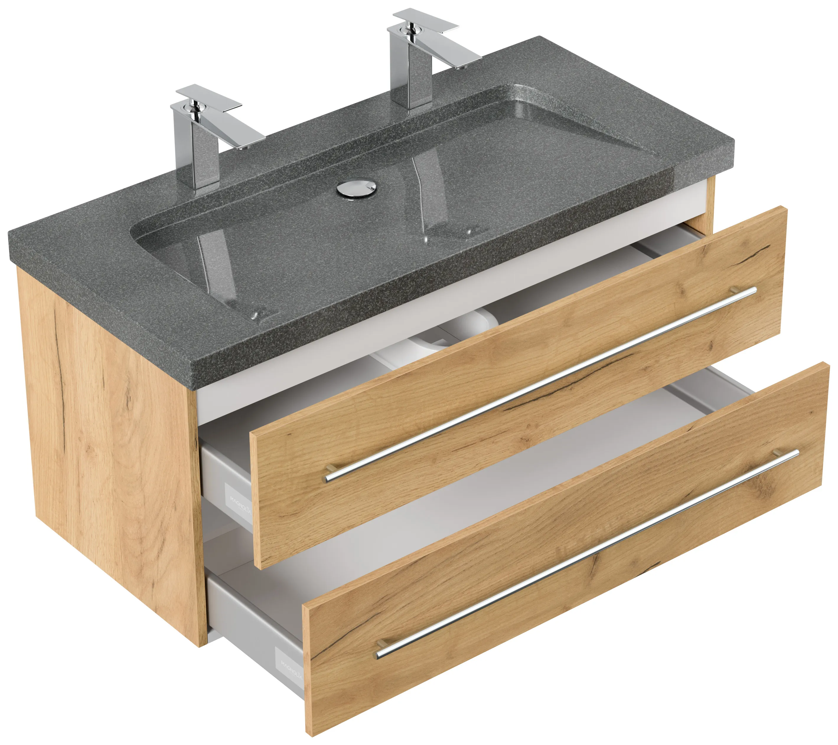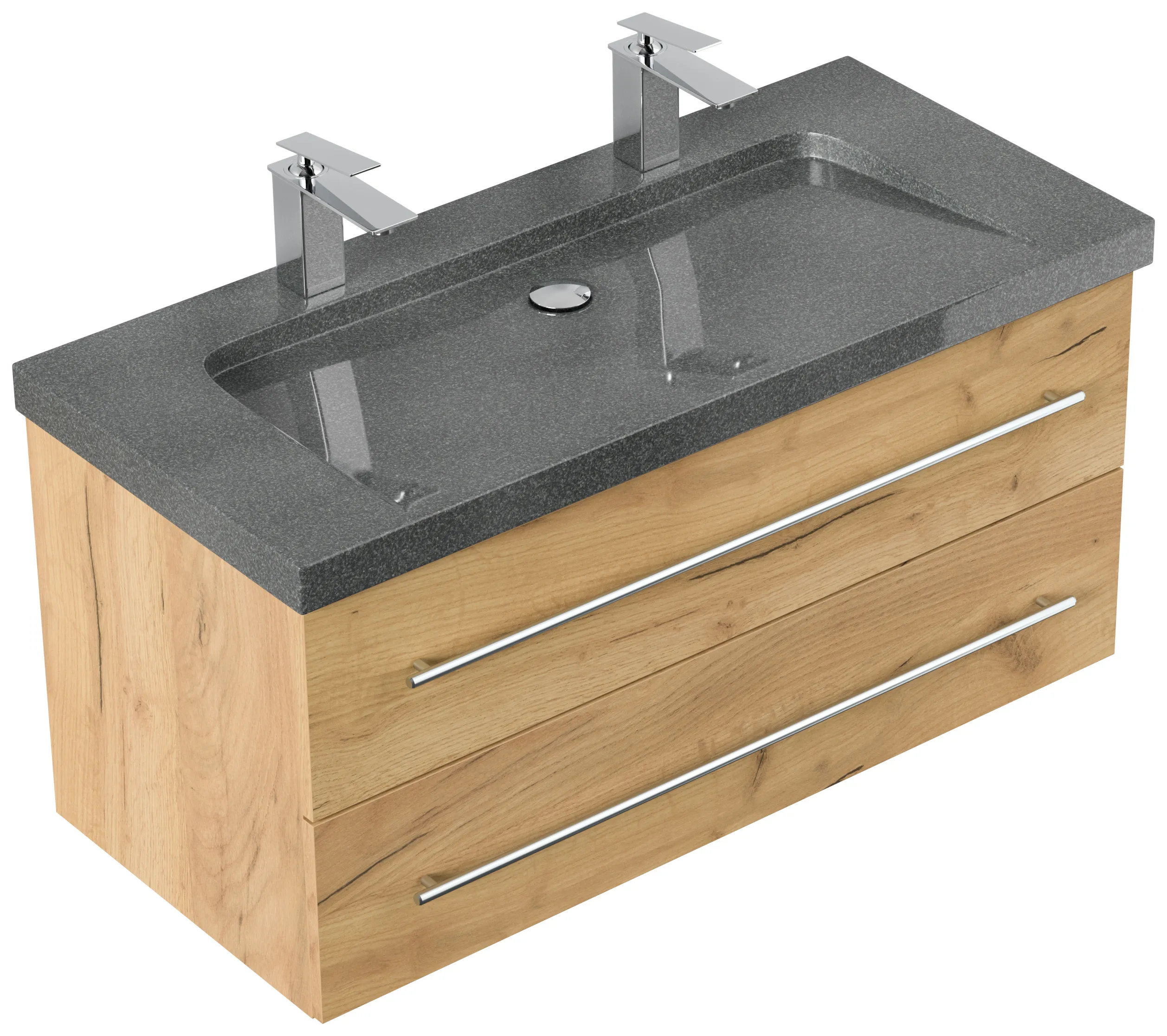 Badmöbel Granit G654 YAMO 100 cm 2 Hahnlöcher SoftClose eiche gold