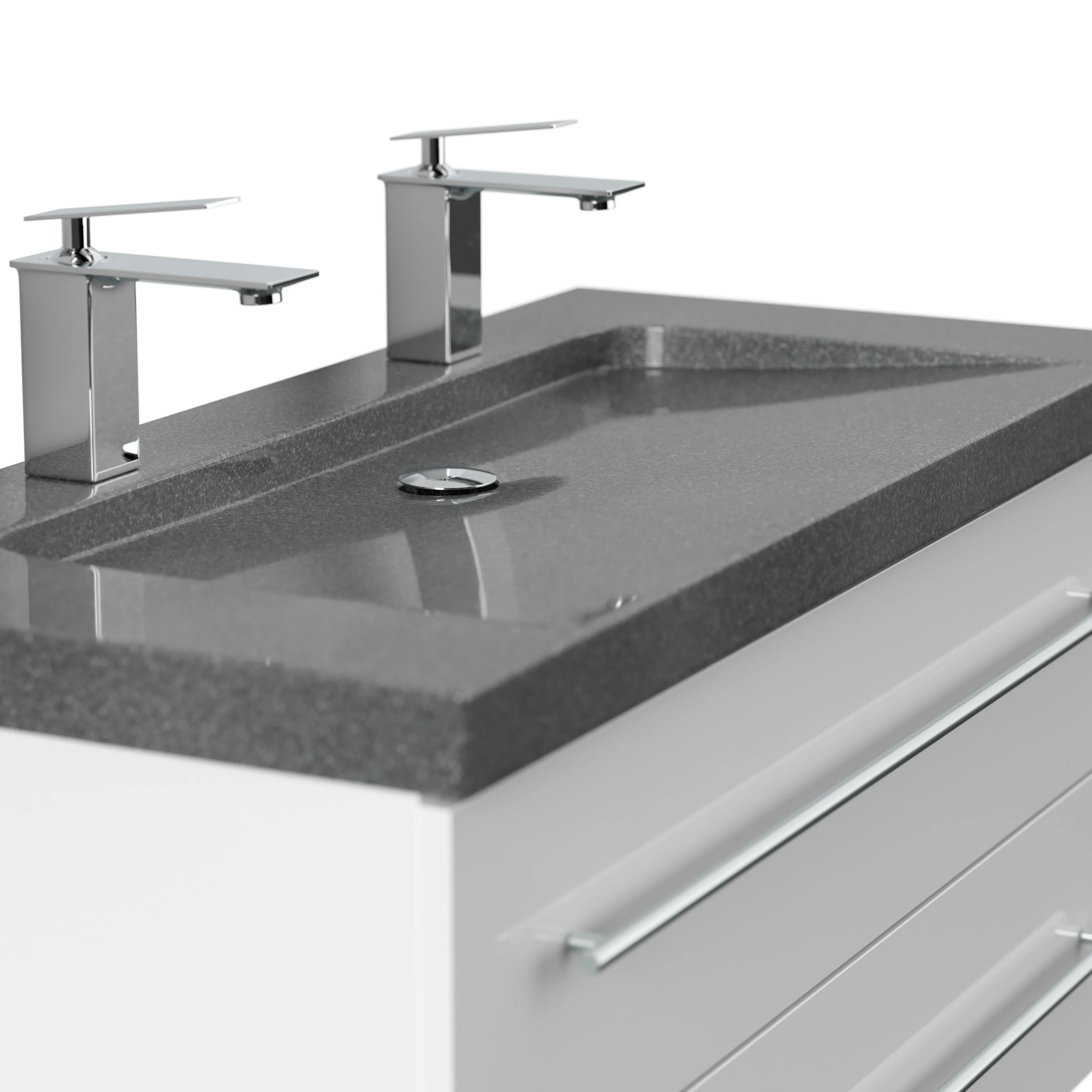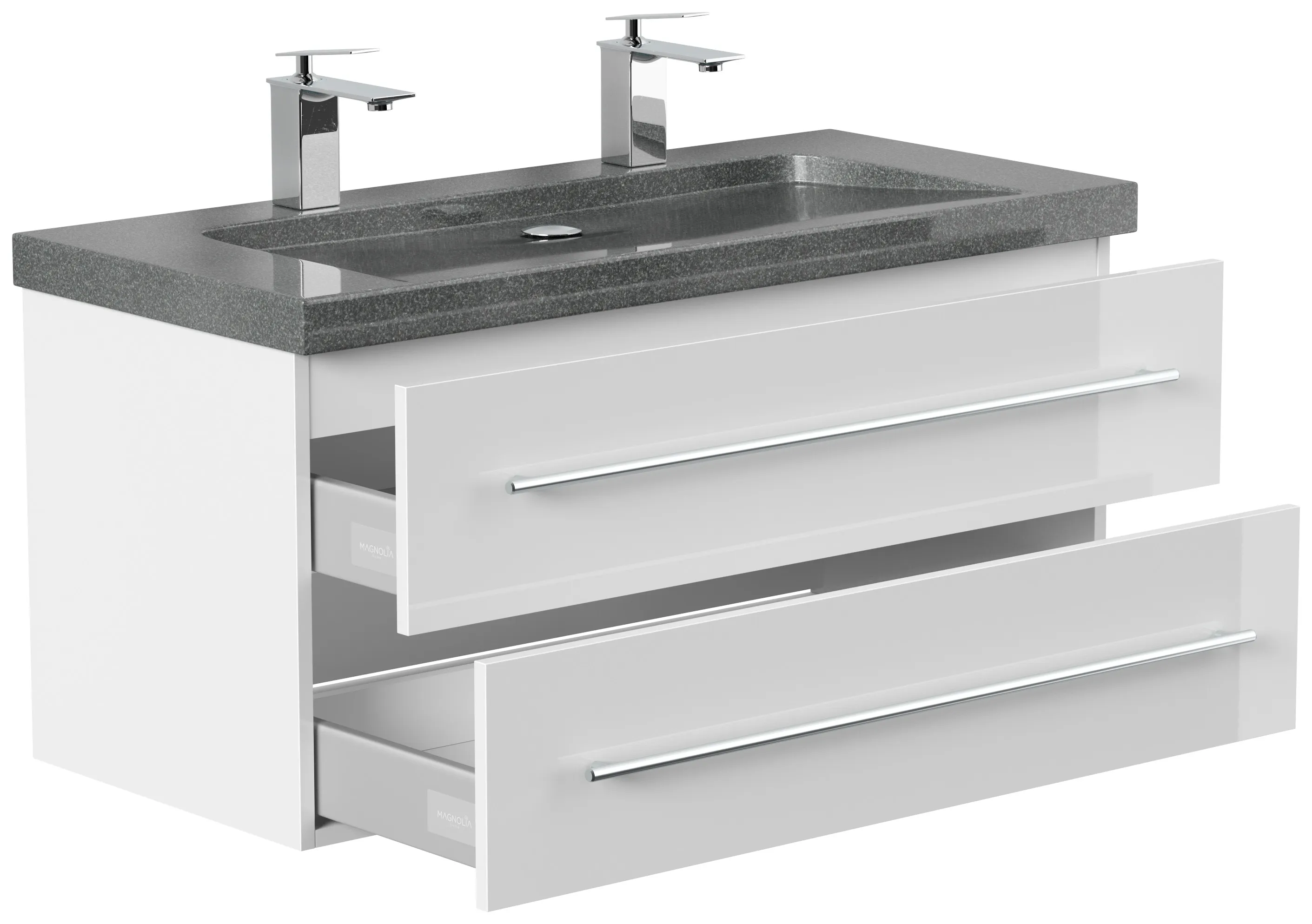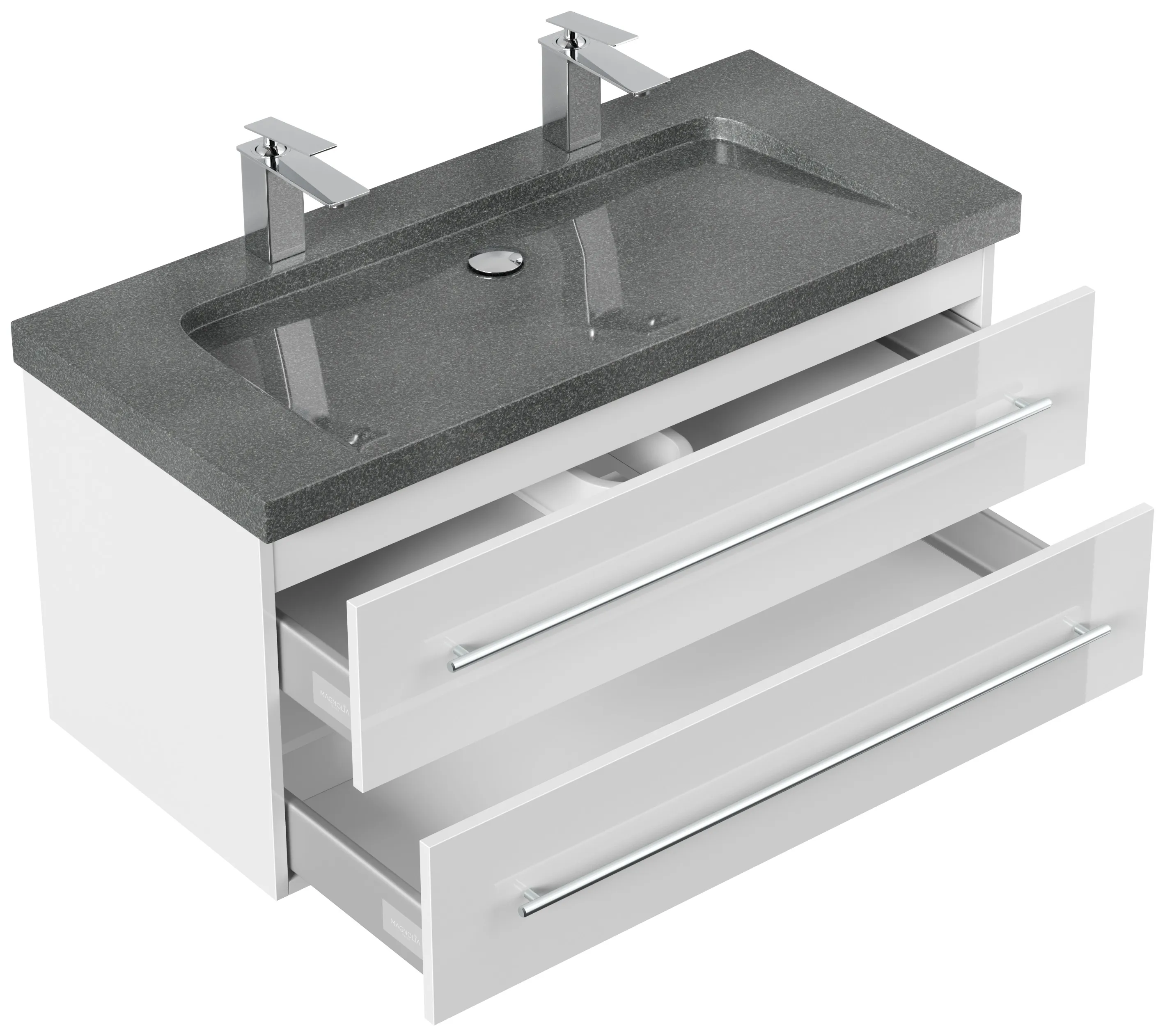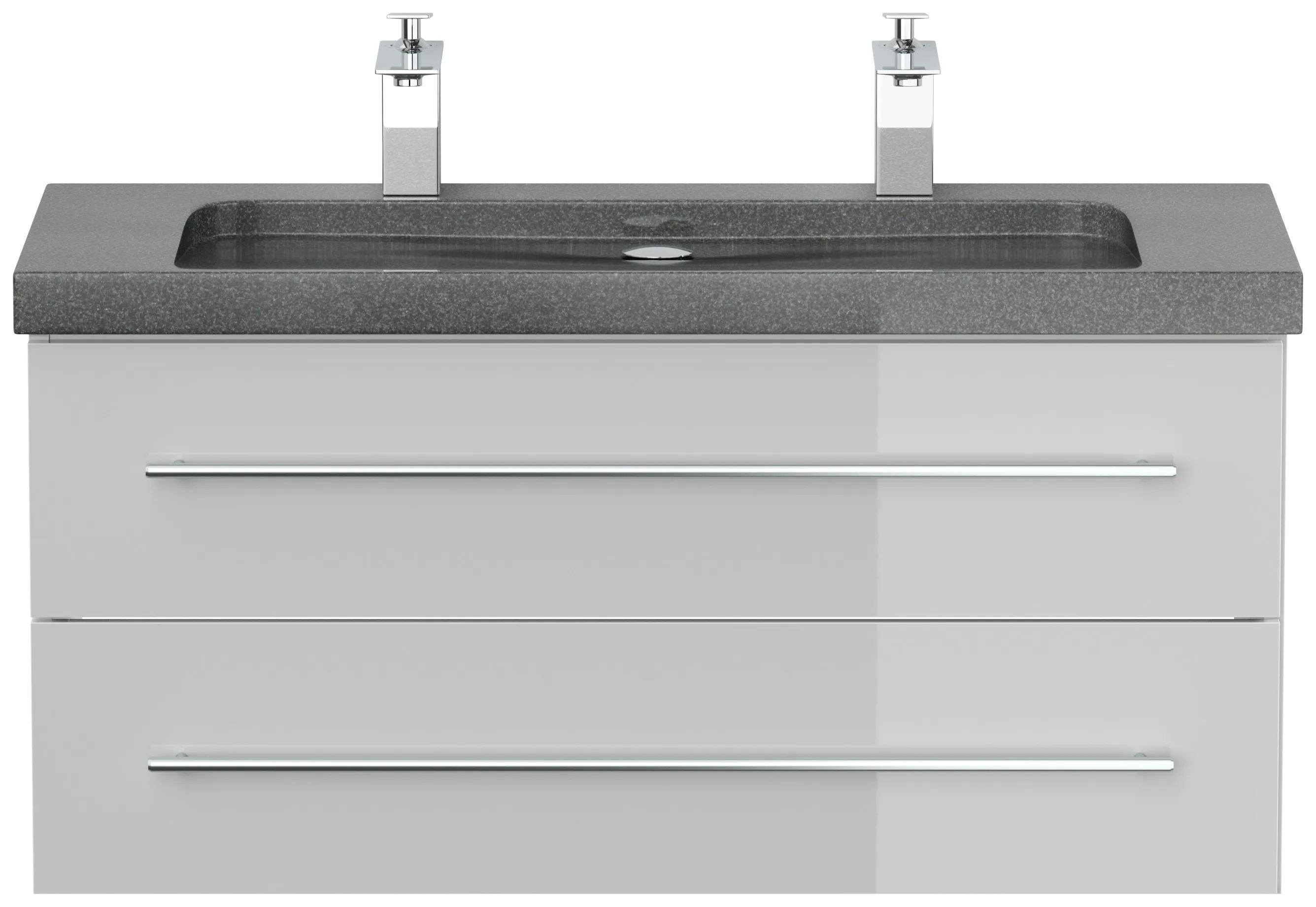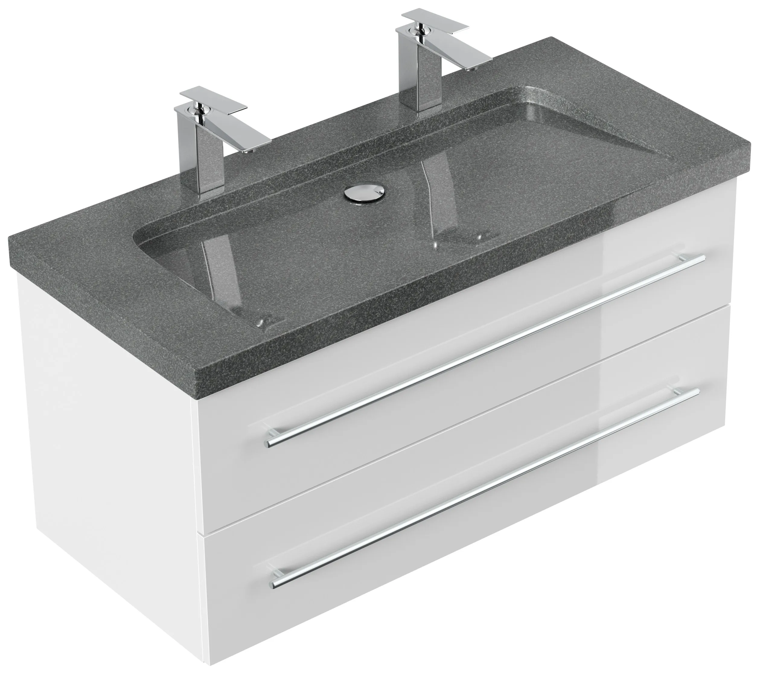 Badmöbel Granit G654 YAMO 100 cm 2 Hahnlöcher SoftClose weiß hochglanz
