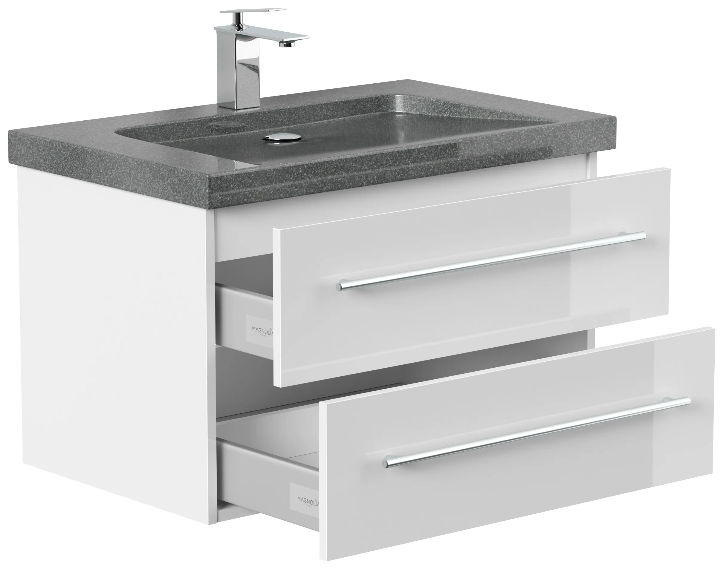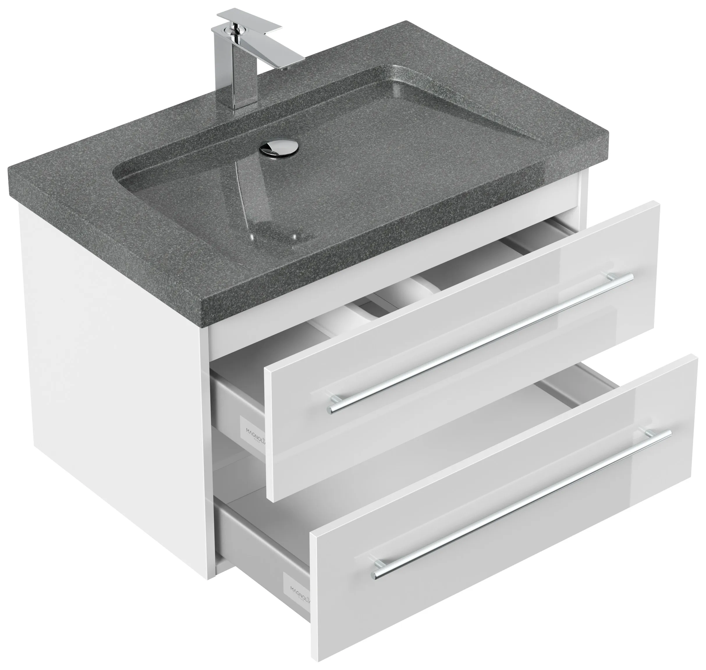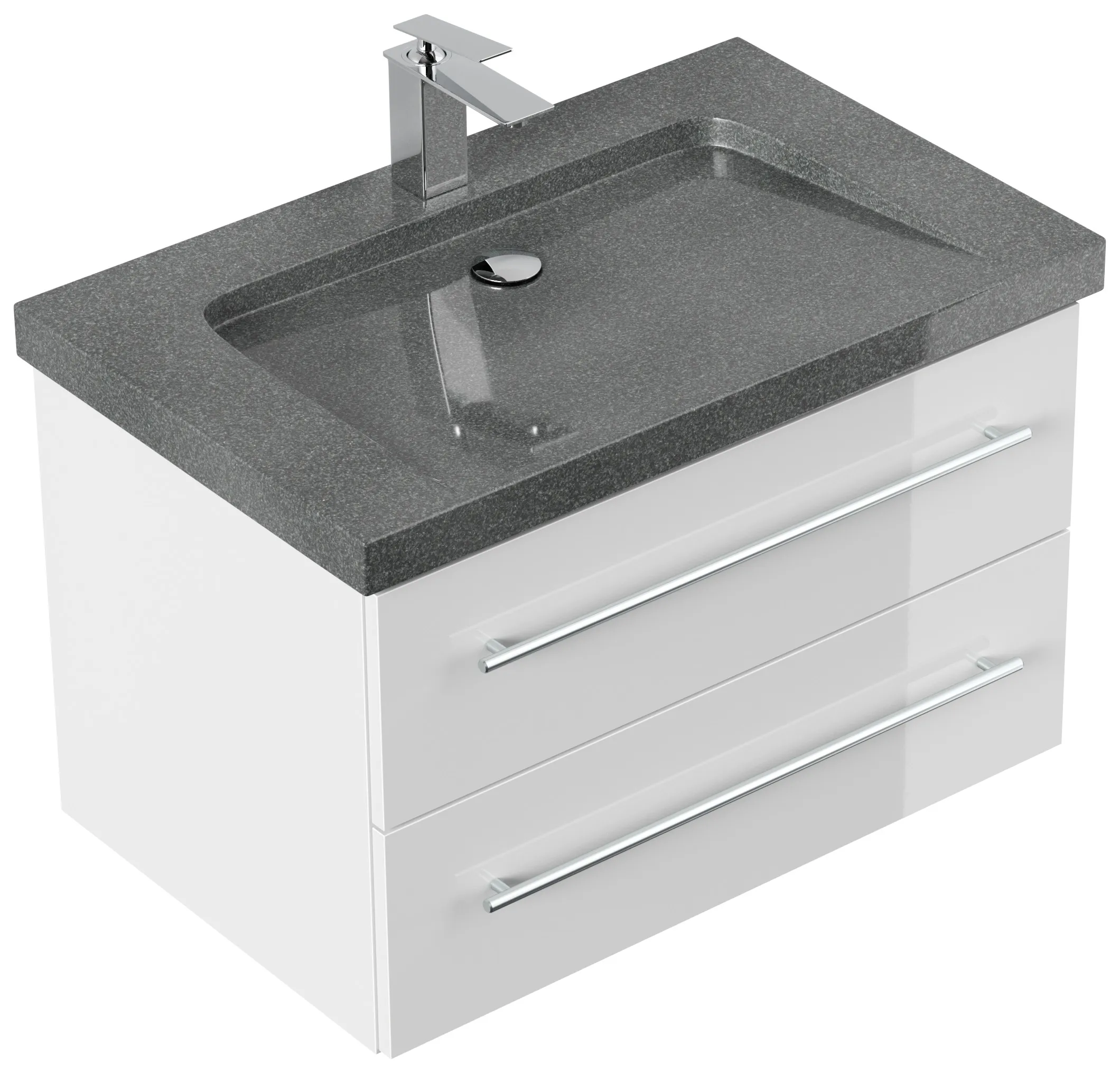 Badmöbel Granit G654 YAMO 75cm 1 Hahnloch SoftClose weiß hochglanz