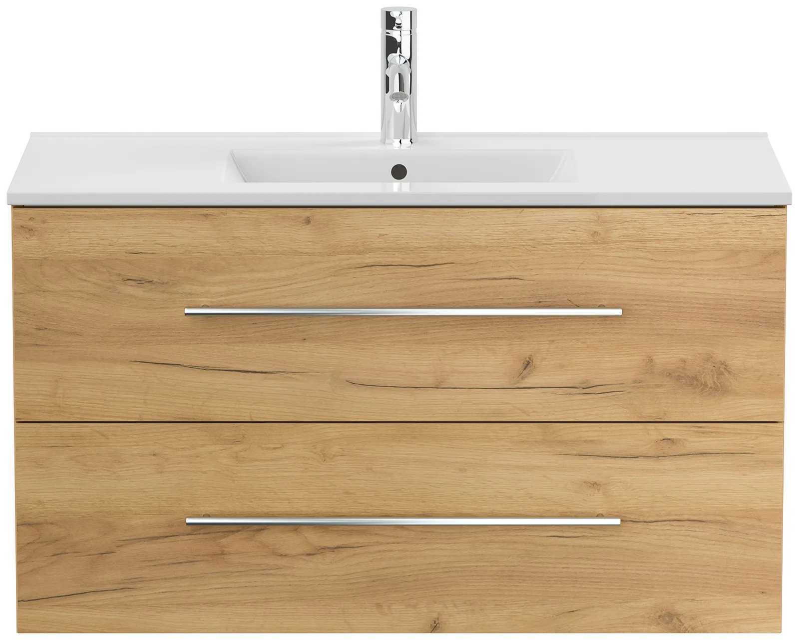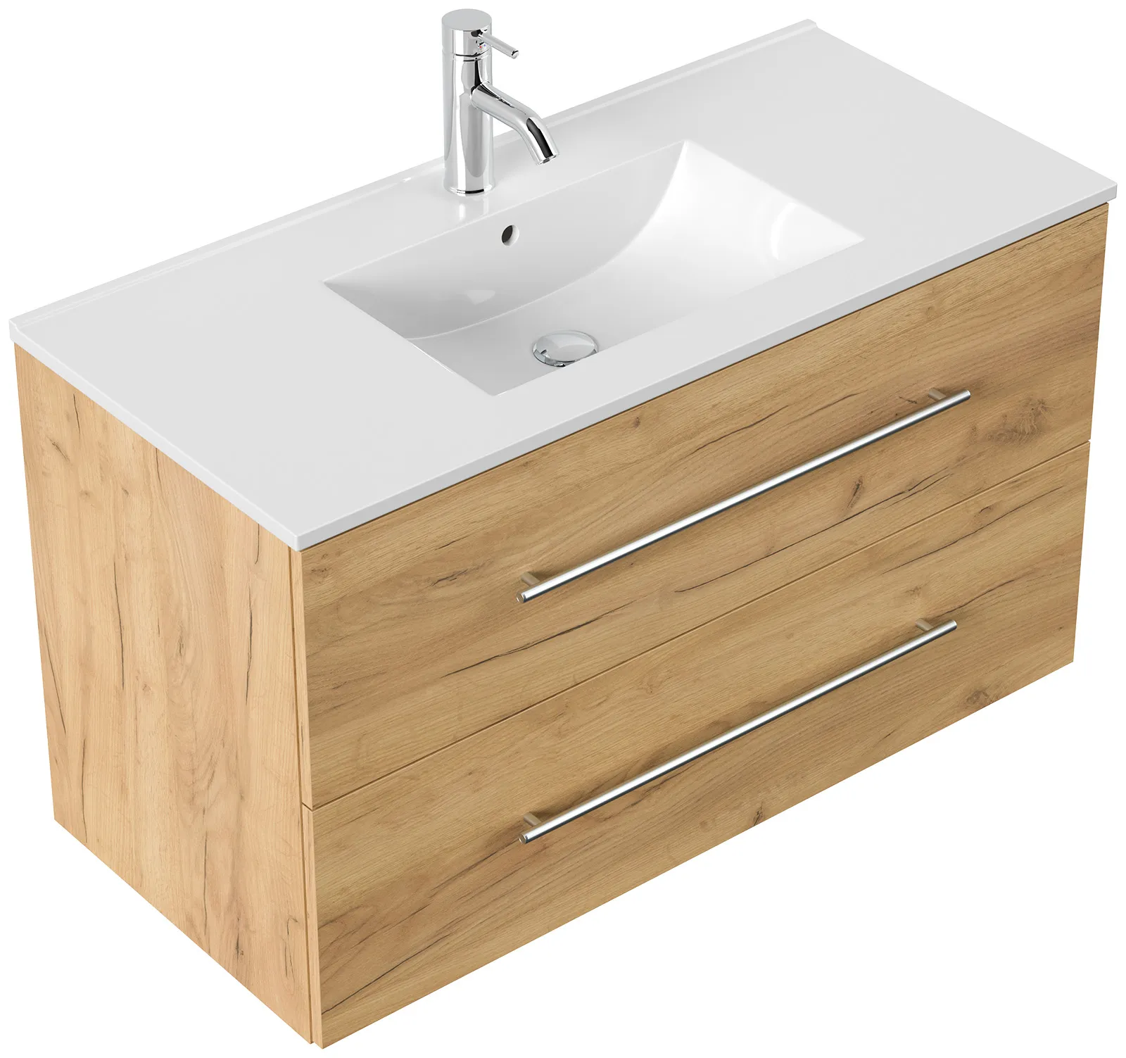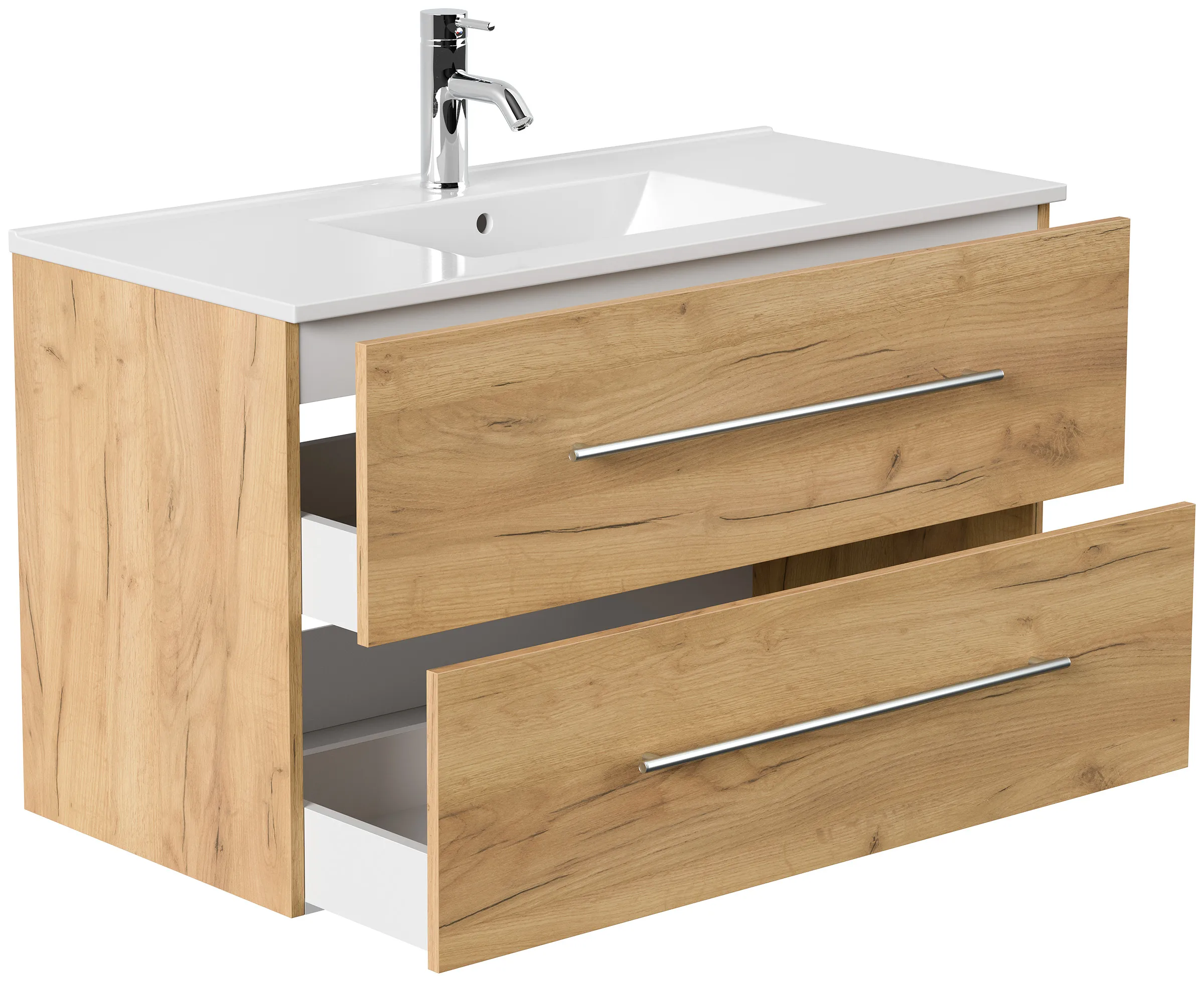Badmöbel Waschtisch Unterschrank mit Keramik Waschbecken, 2 Schubladen mit Softclose (B/H/T) 101/57,8/47 cm.