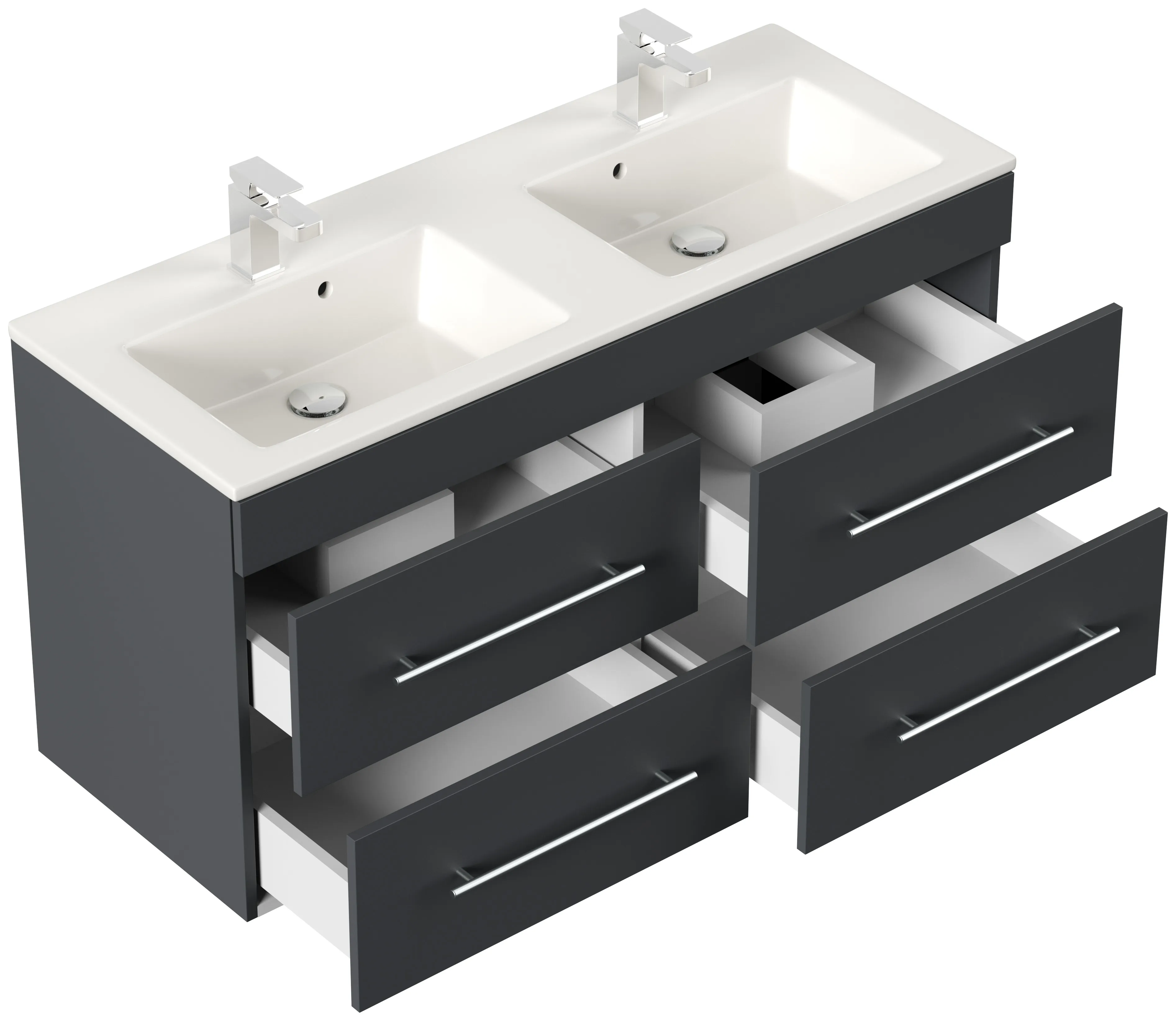 Das Badmöbel wurde designed in Deutschland und aus hochwertigem Holzwerkstoff gefertigt. Schubläden und/oder Türen sind mit einem Softclose System ausgestattet.