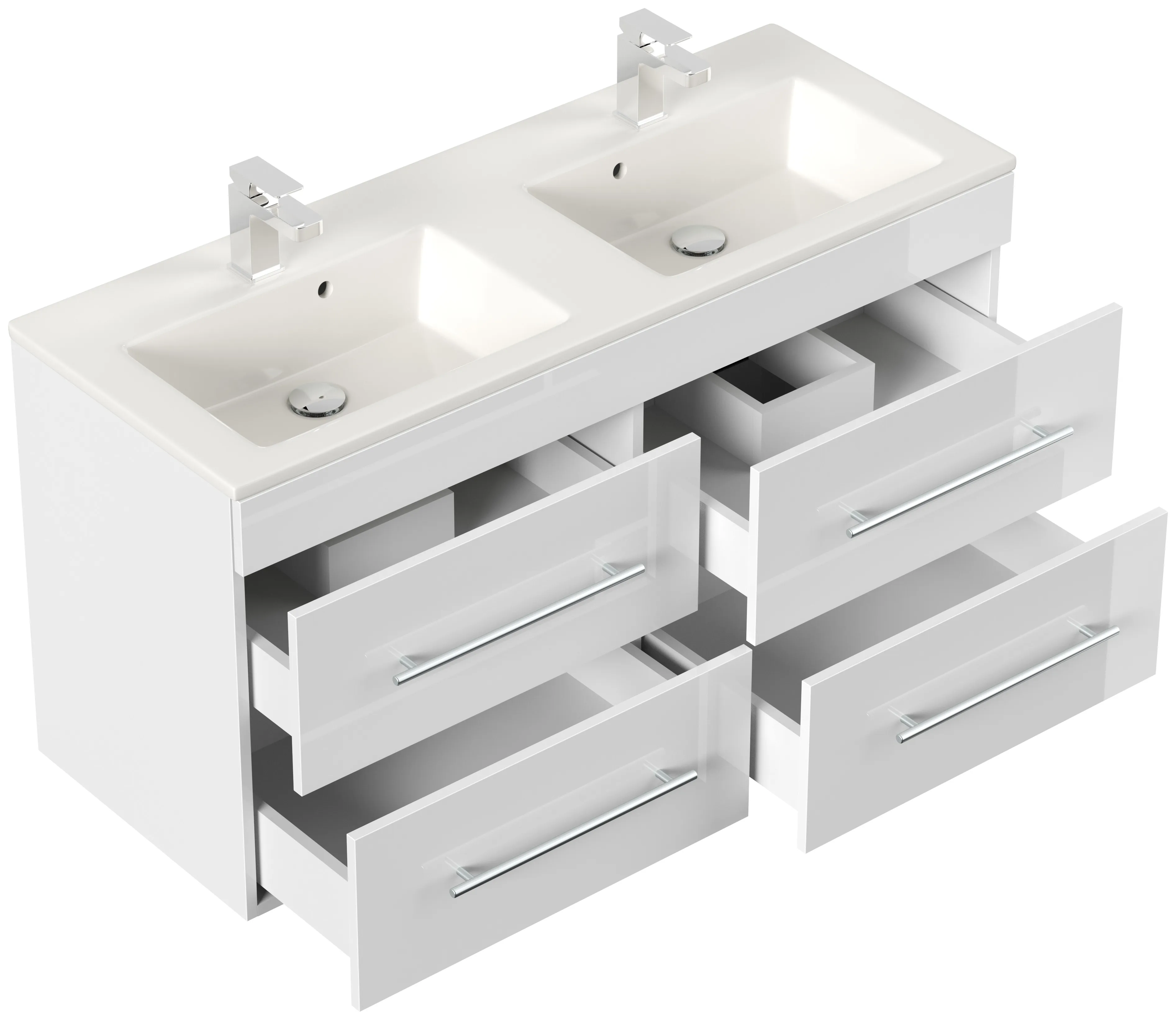 Das Badmöbel wurde designed in Deutschland und aus hochwertigem Holzwerkstoff gefertigt. Schubläden und/oder Türen sind mit einem Softclose System ausgestattet.