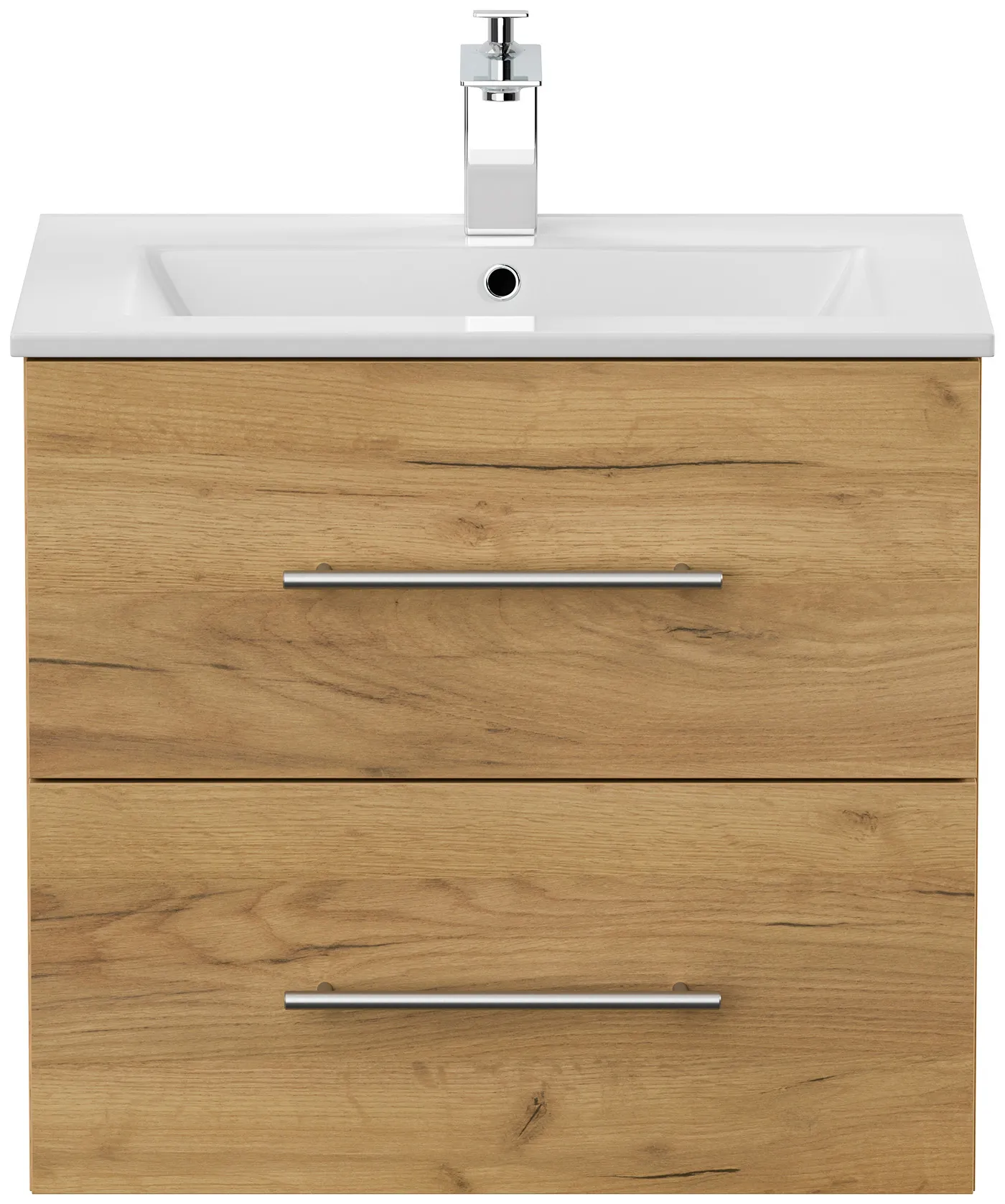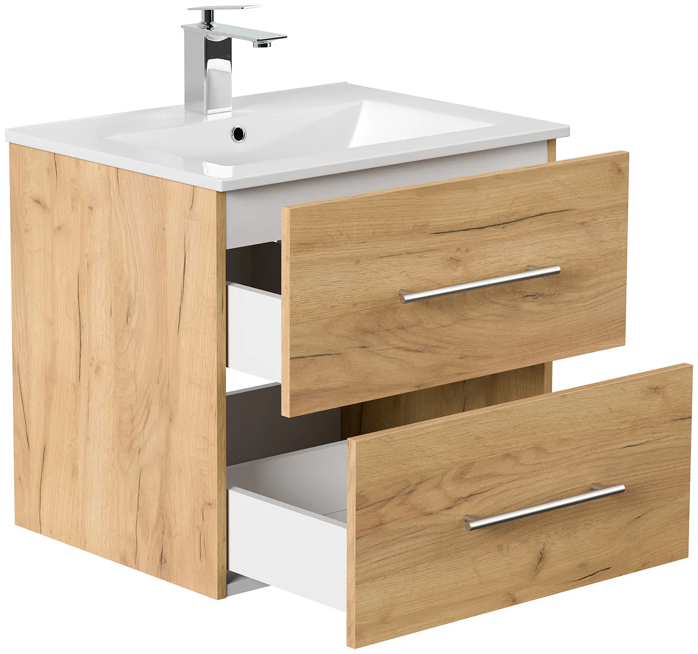 Badmöbel Waschtisch Unterschrank mit Keramik Waschbecken, 2 Schubladen mit Softclose (B/H/T) 61,5/55,6/46,5 cm.