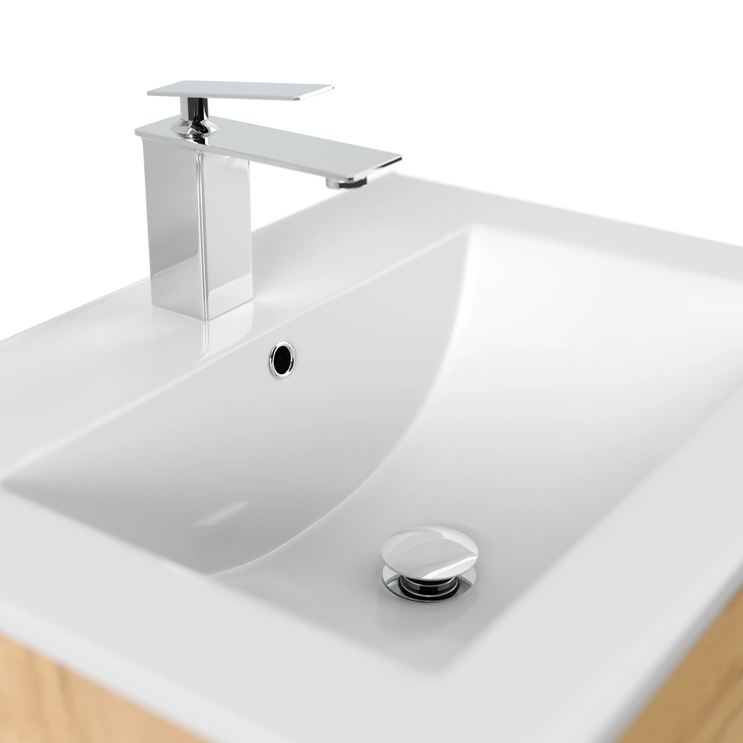 Das Badmöbel wurde designed in Deutschland und aus hochwertigem Holzwerkstoff gefertigt. Schubläden und/oder Türen sind mit einem Softclose System ausgestattet. Eiche Gold - Täuschend echte Holzoptik.