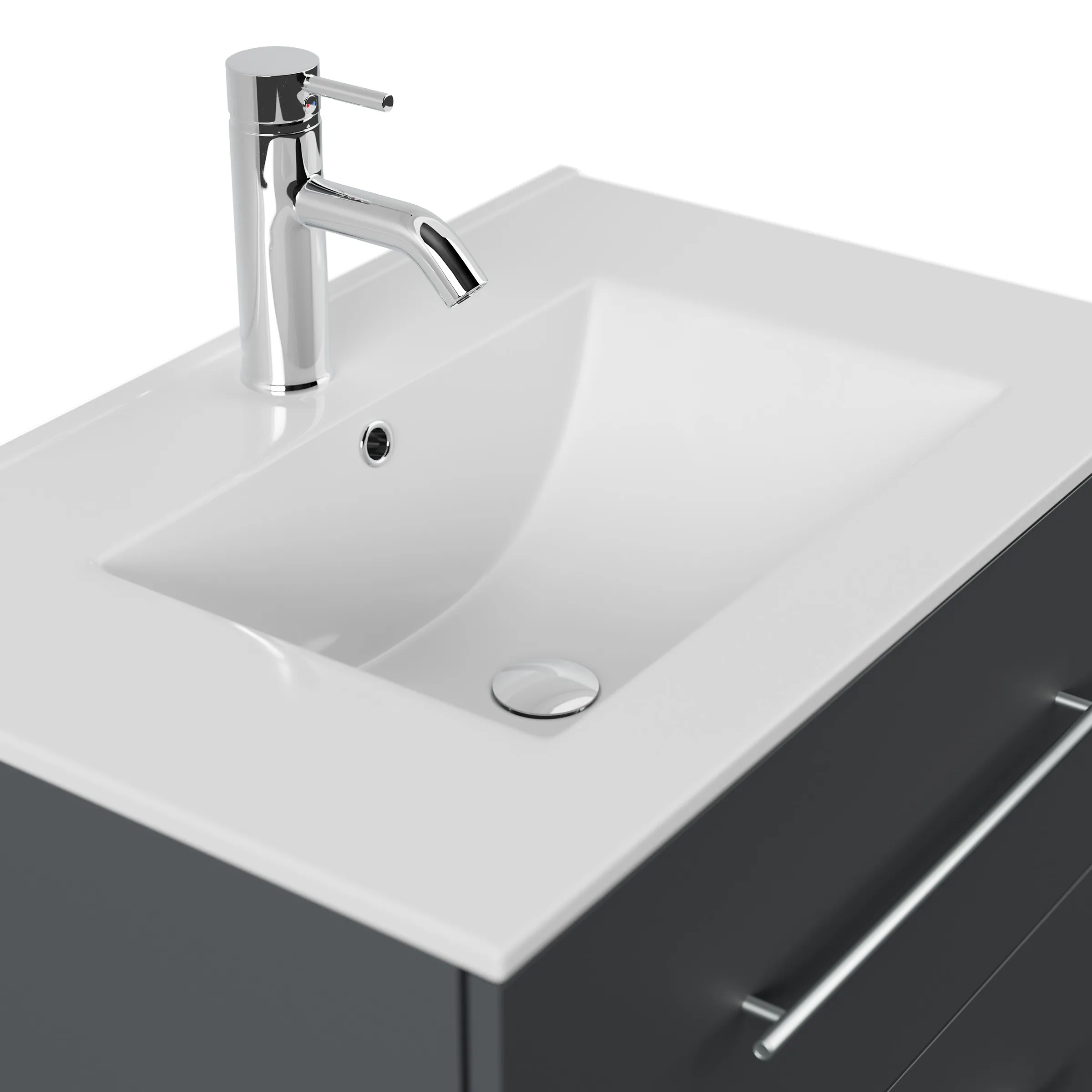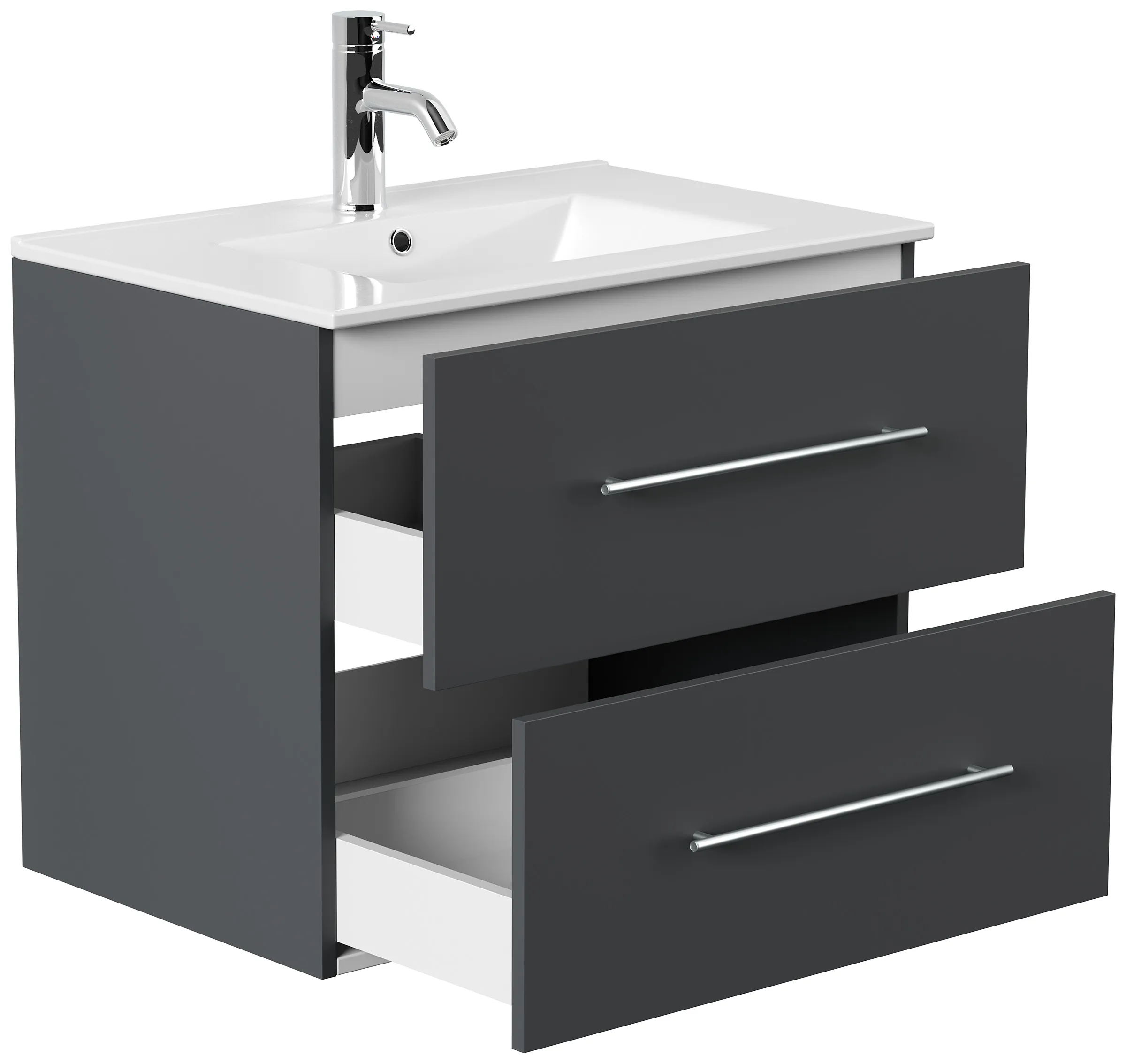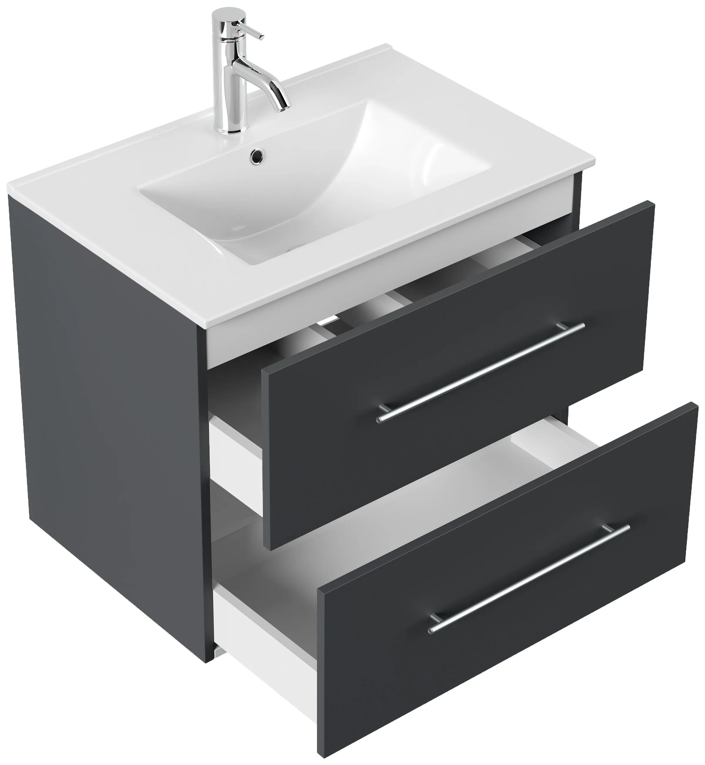 Badmöbel Waschtisch Unterschrank mit Keramik Waschbecken, 2 Schubladen mit Softclose (B/H/T) 71/53,8/46,5 cm.