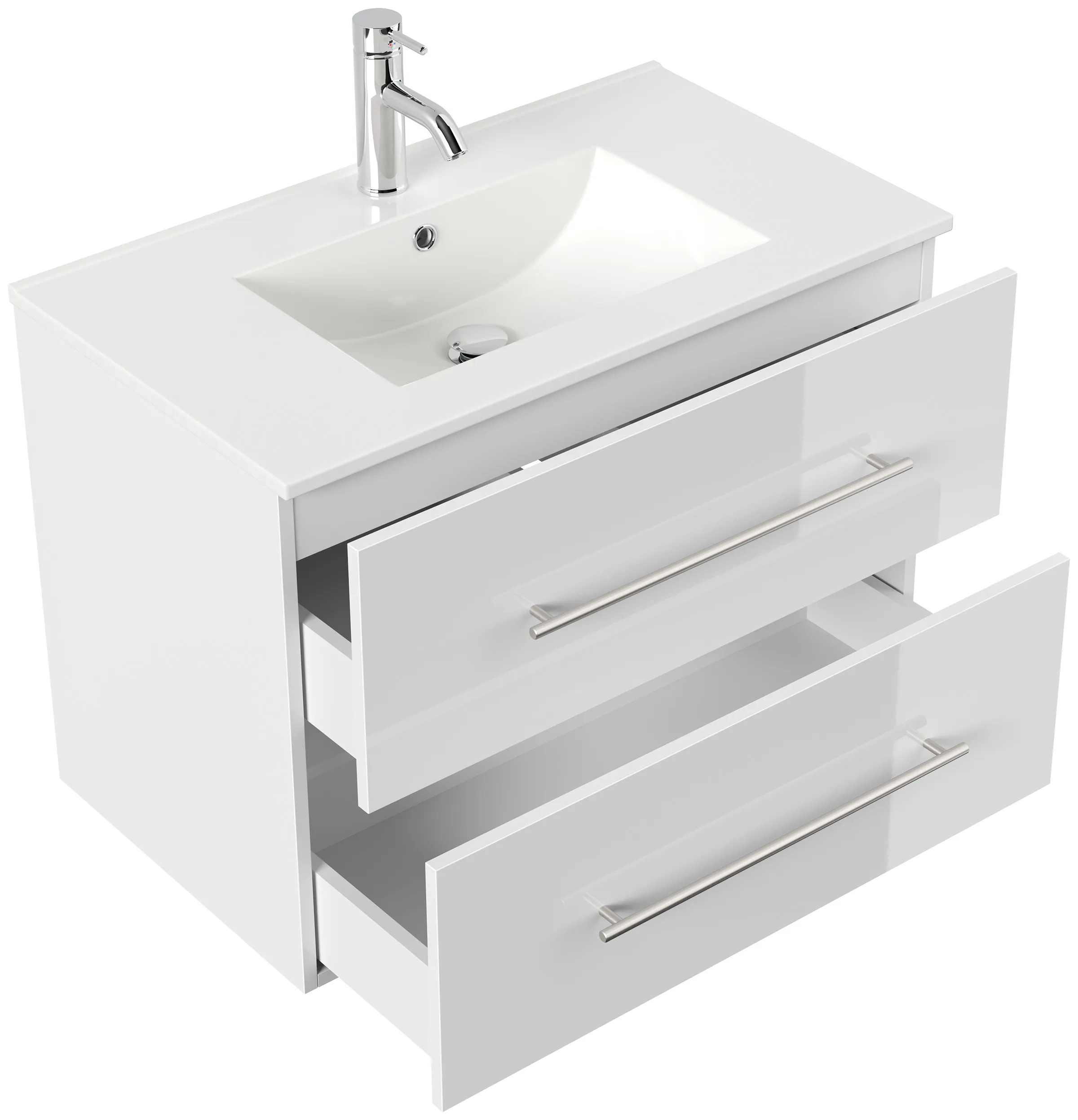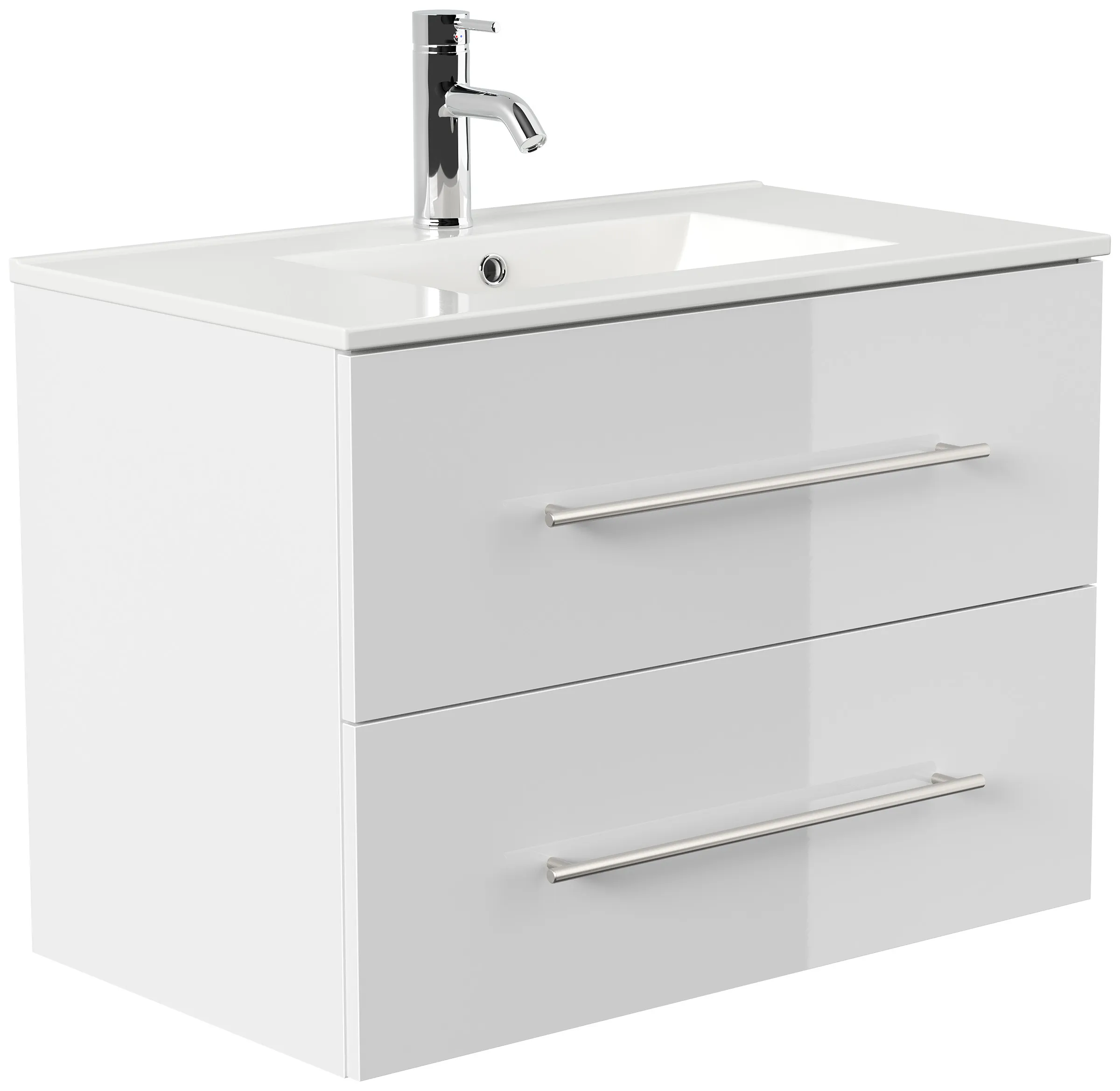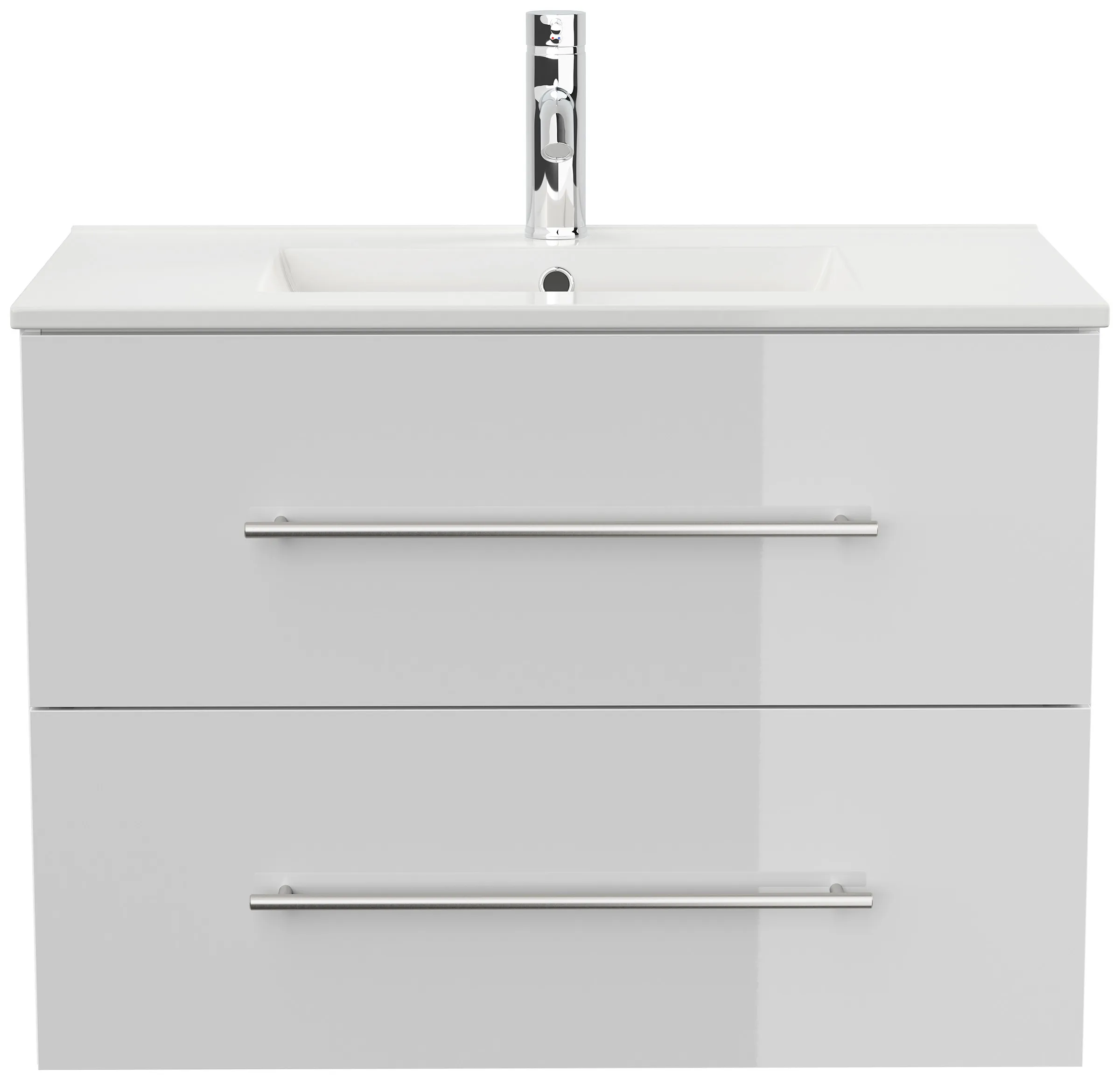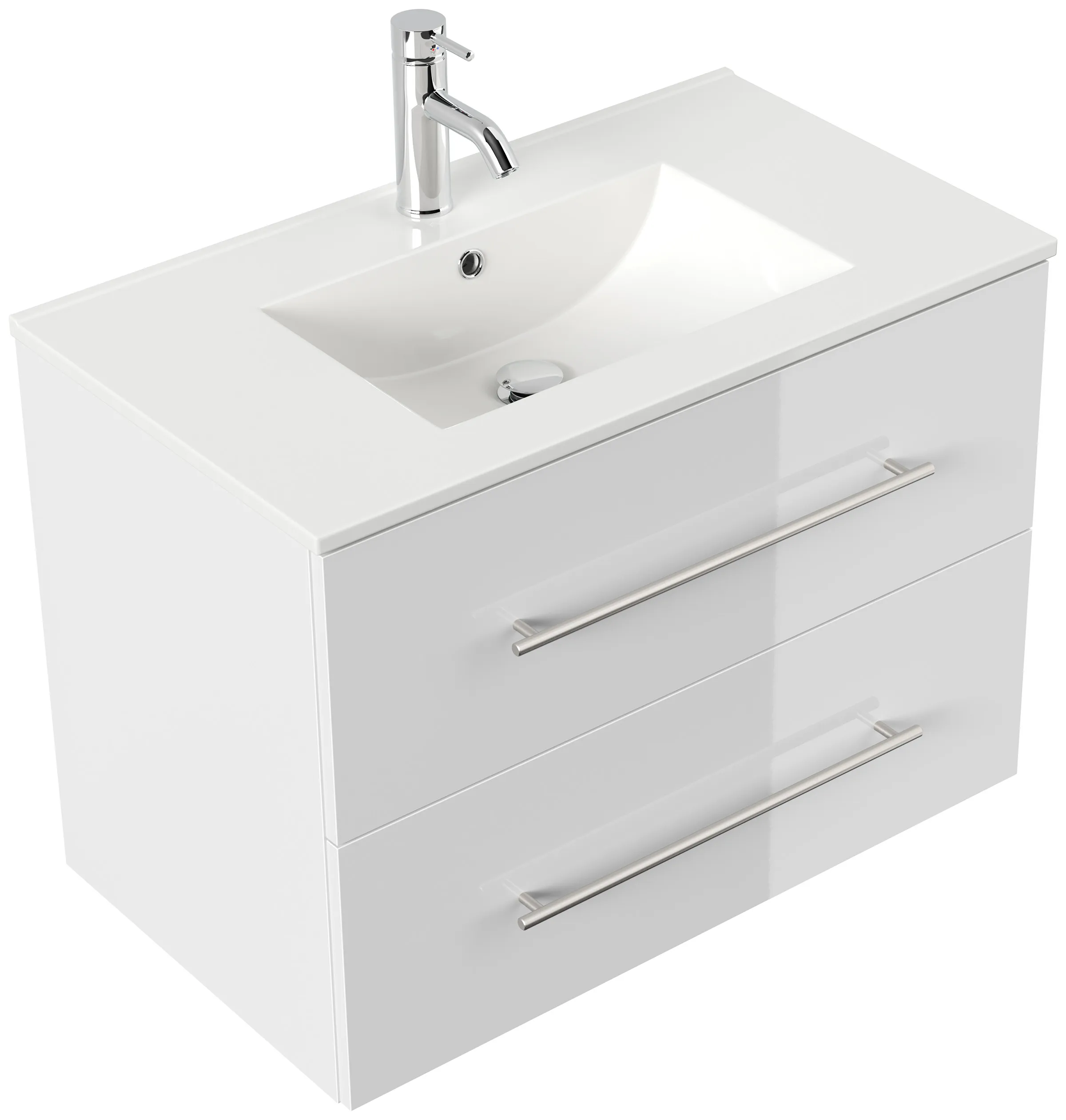 Badmöbel Waschtisch Unterschrank mit Keramik Waschbecken, 2 Schubladen mit Softclose (B/H/T) 81/61/46 cm.
