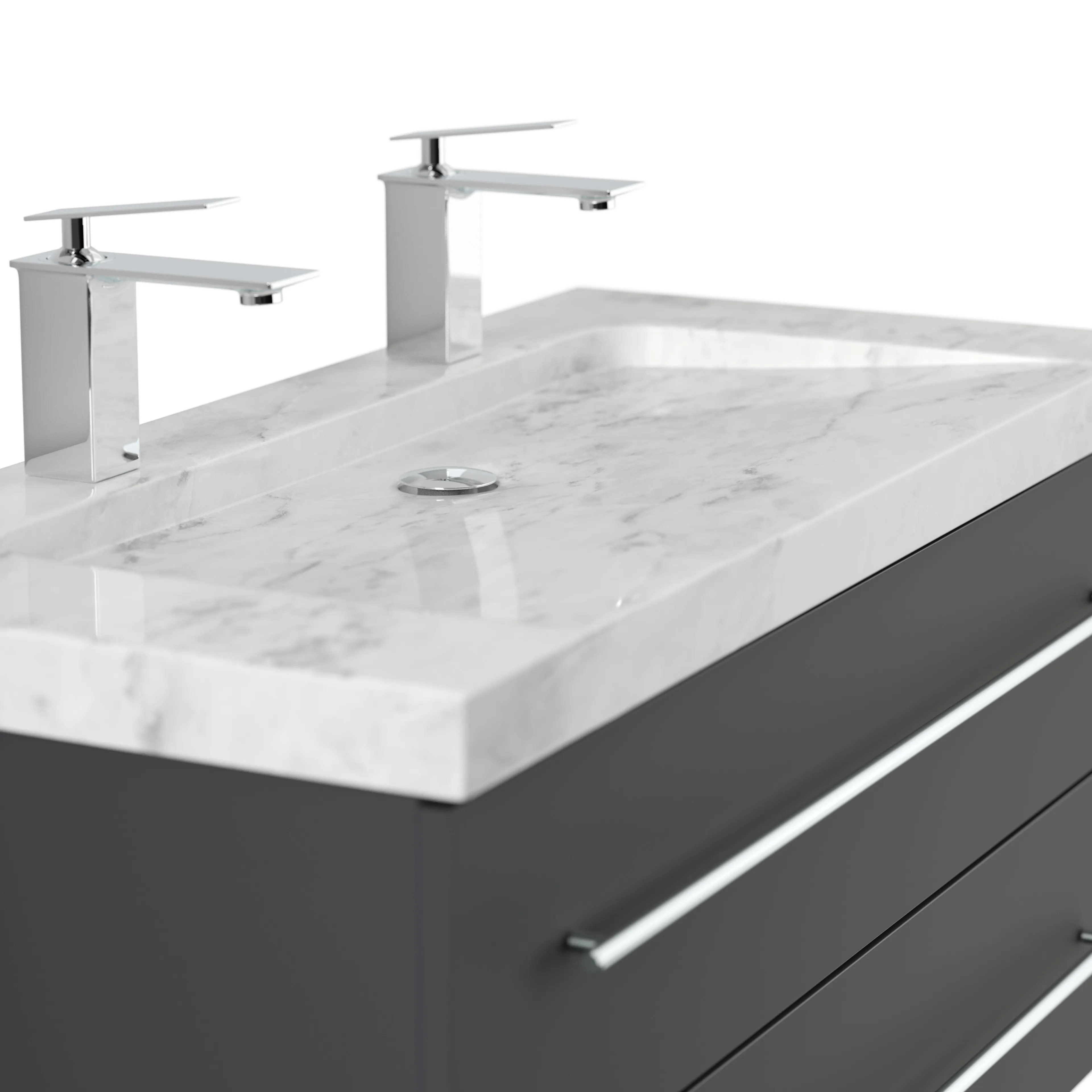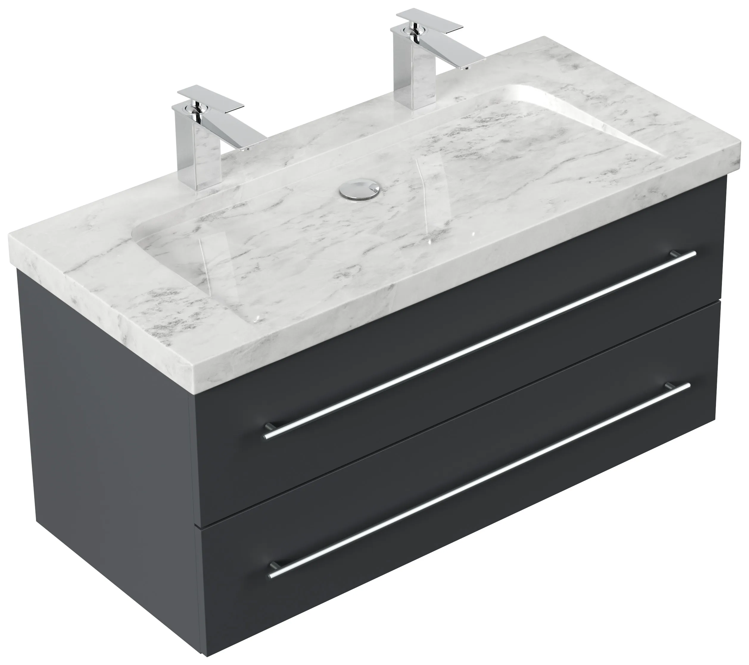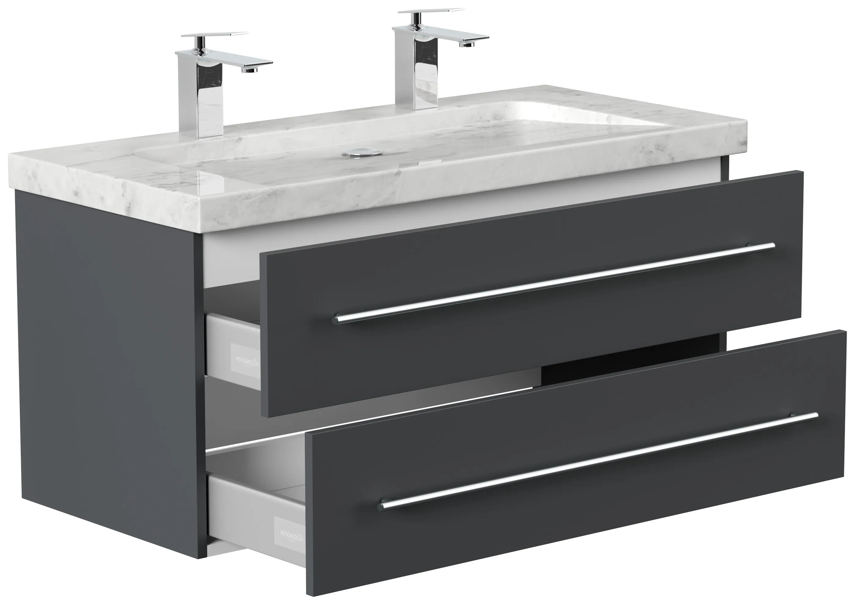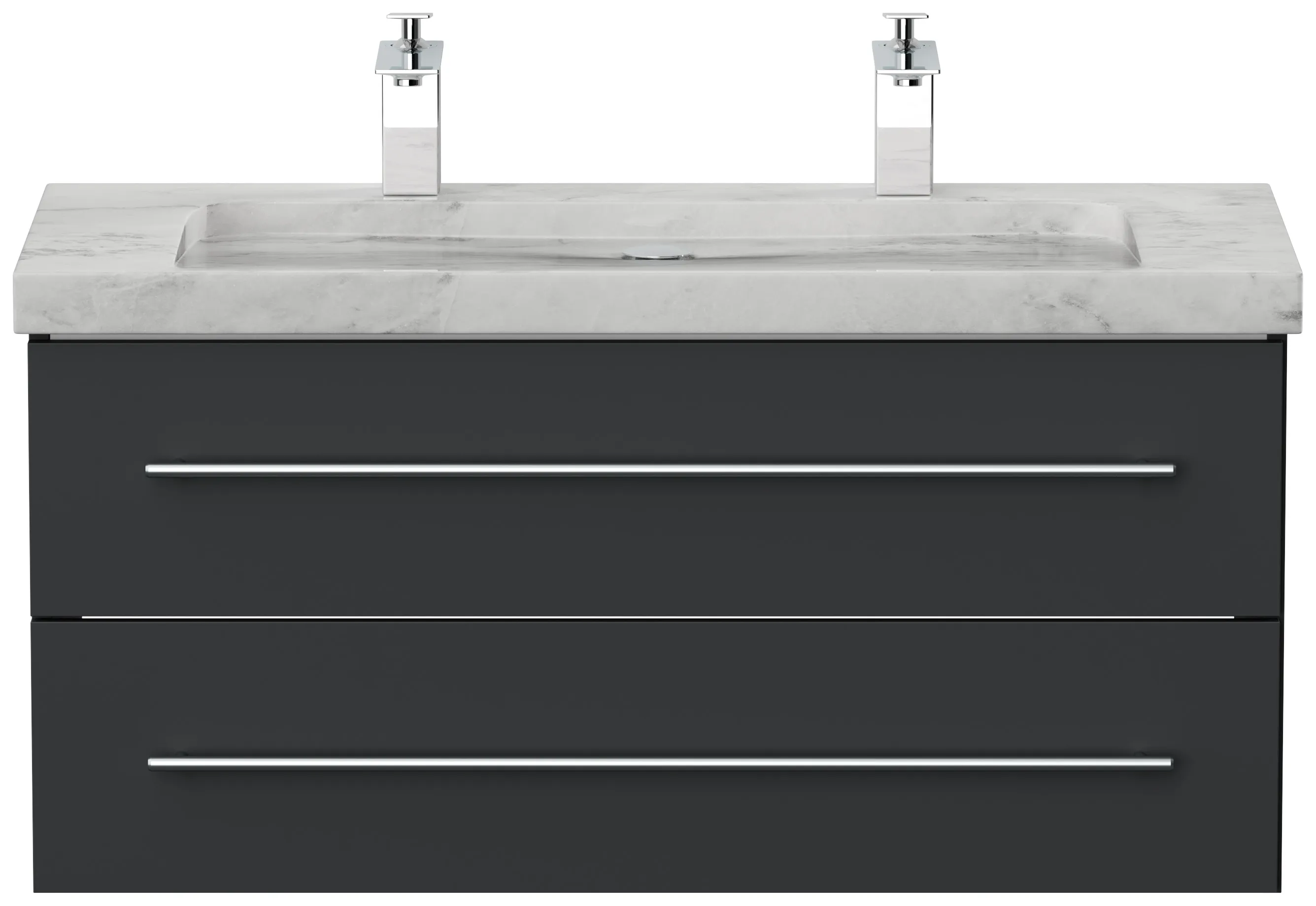 Badmöbel Marmor Carrara White YAMO 100 cm 2 Hahnlöcher SoftClose grafit