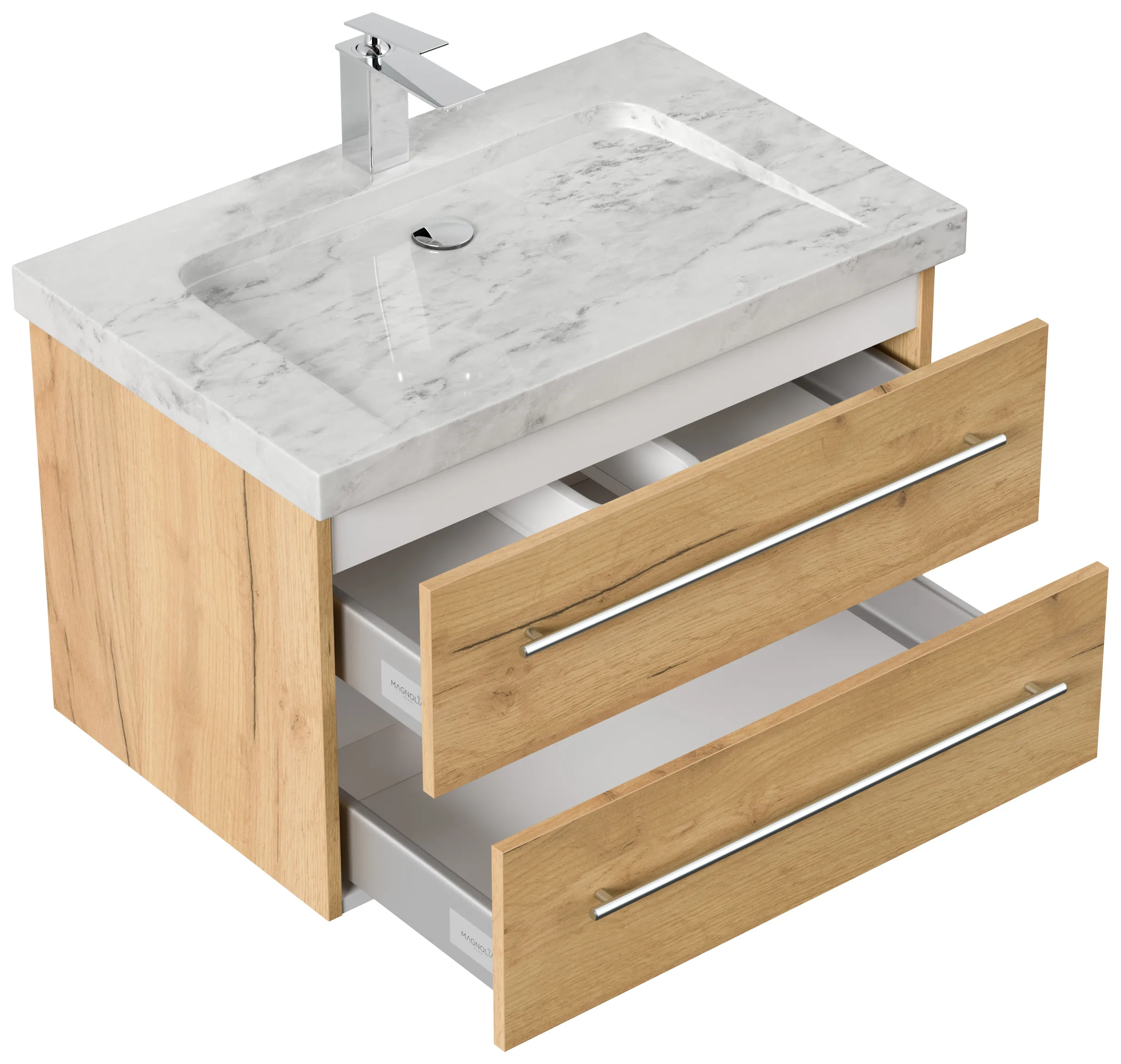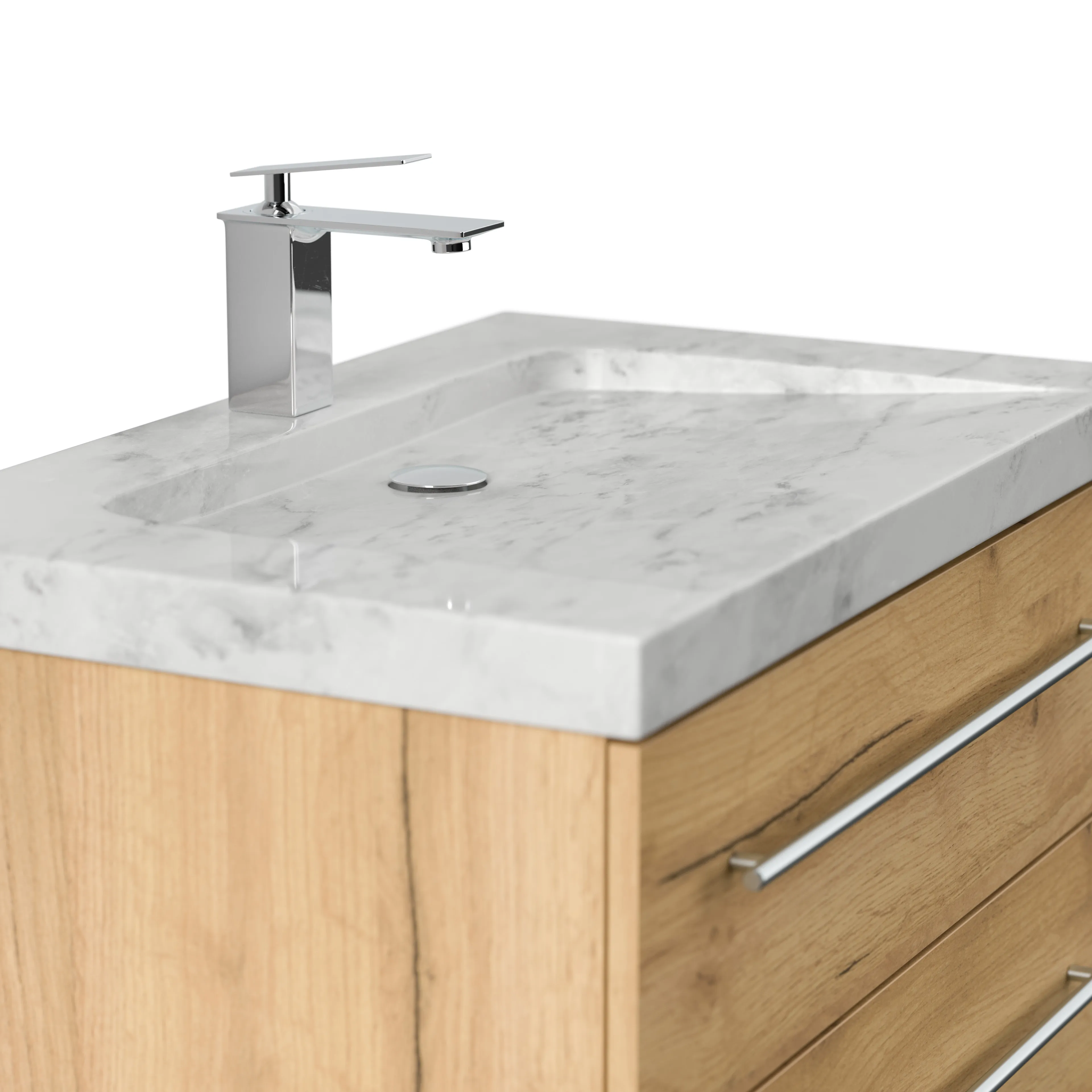 Badmöbel Marmor Carrara White YAMO 75 cm 1 Hahnloch SoftClose eiche gold