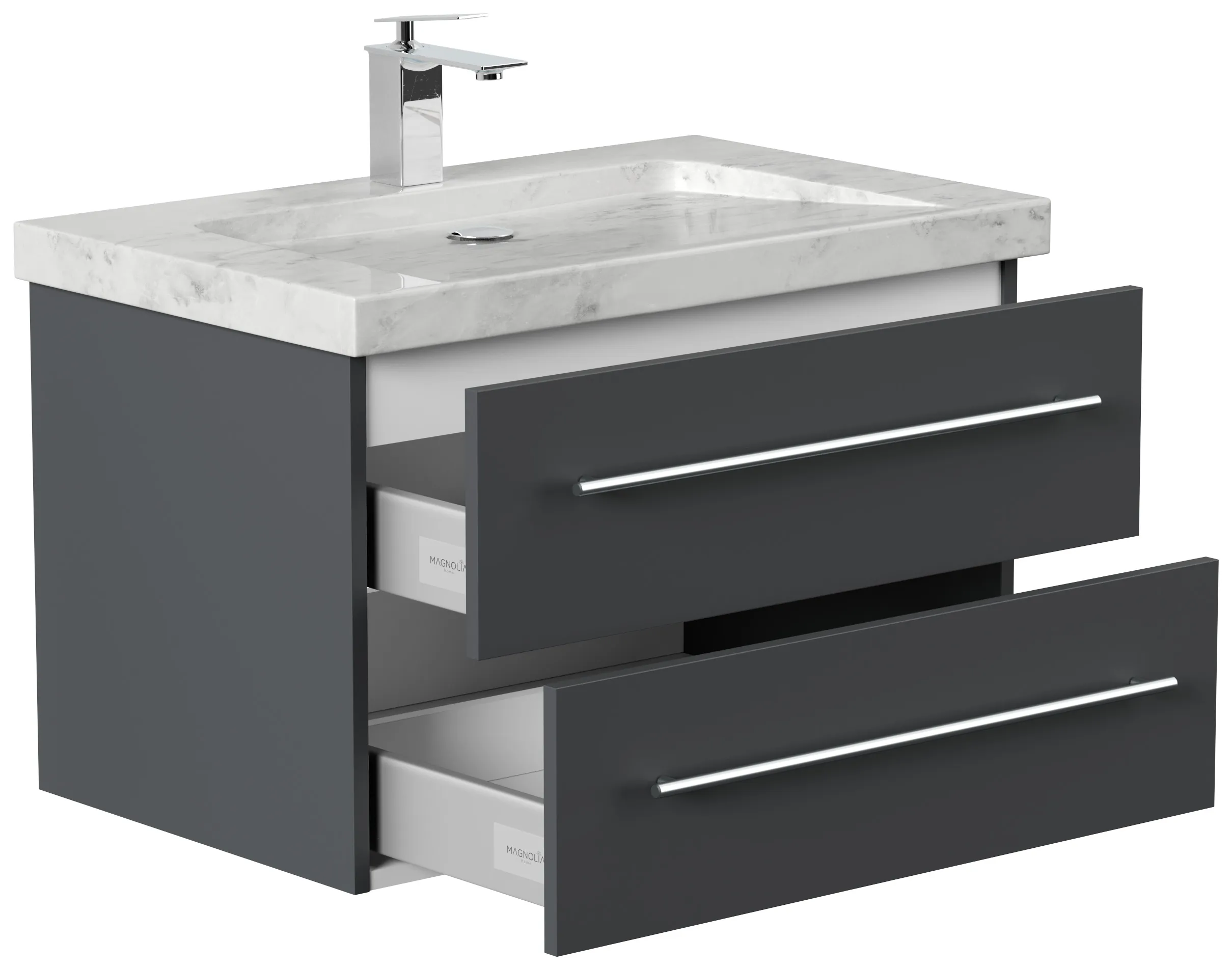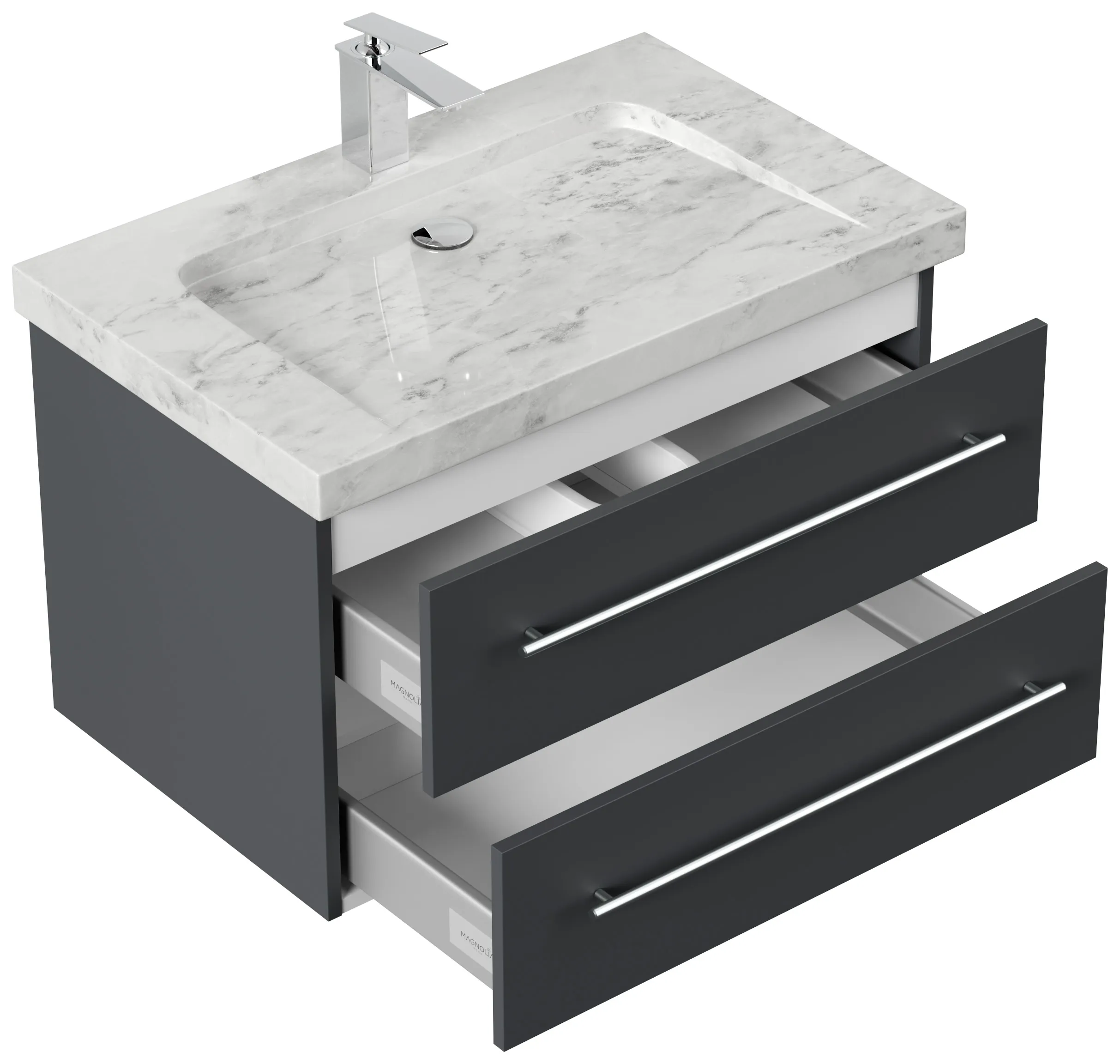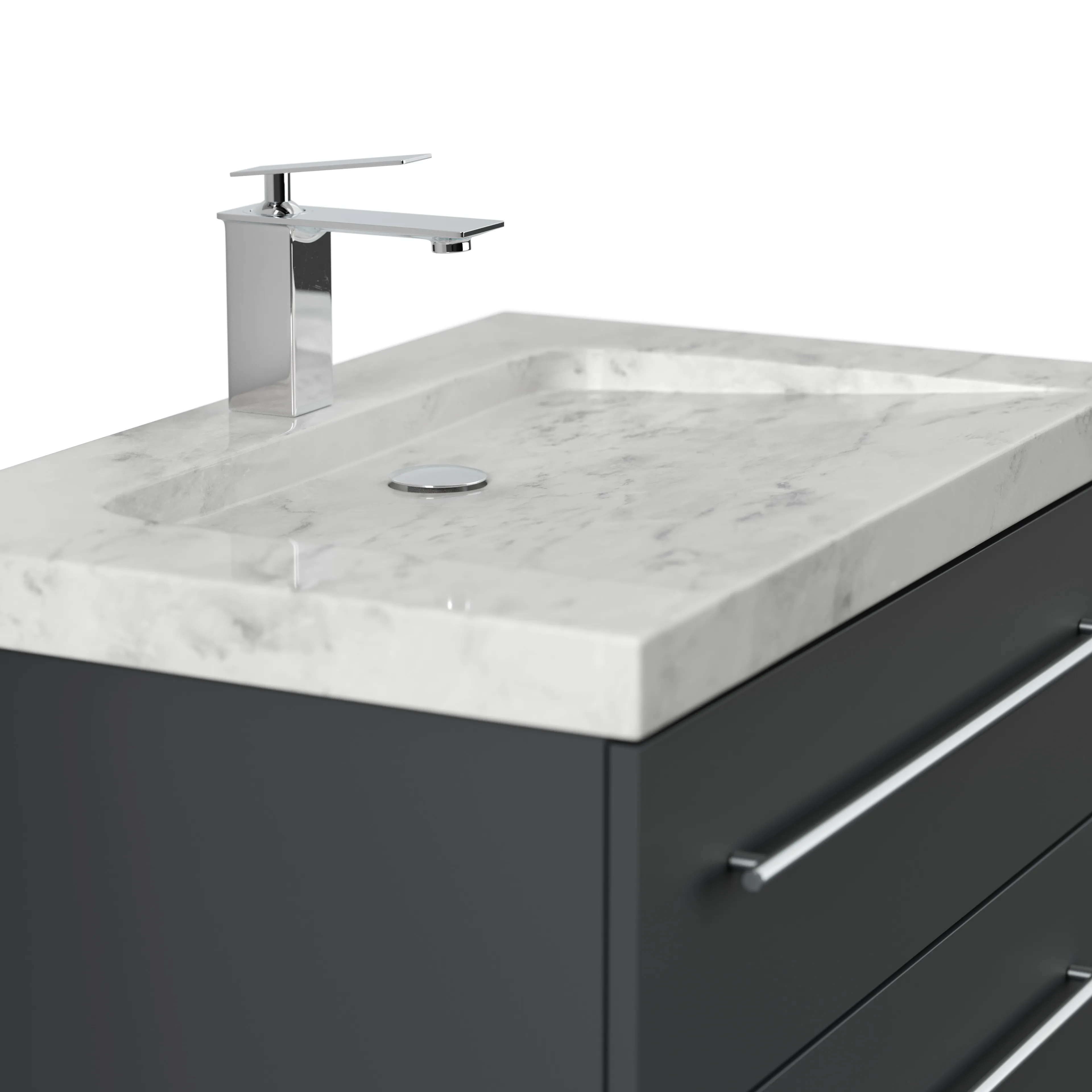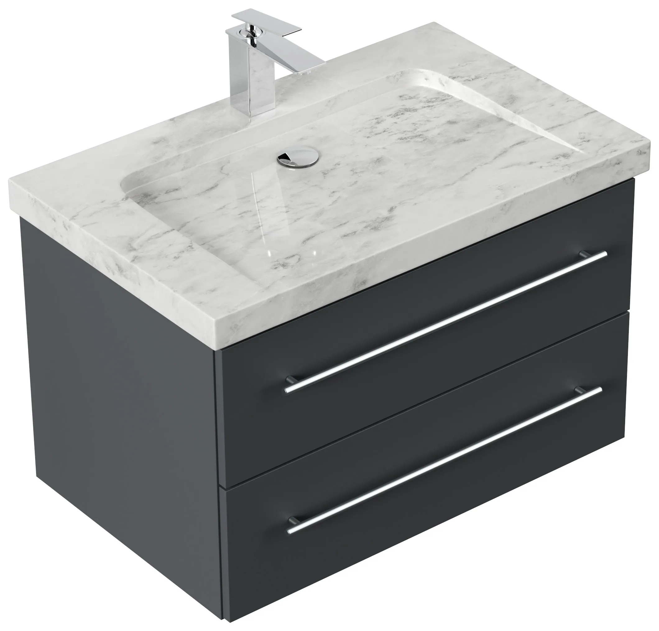 Badmöbel Marmor Carrara White YAMO 75 cm 1 Hahnloch SoftClose grafit