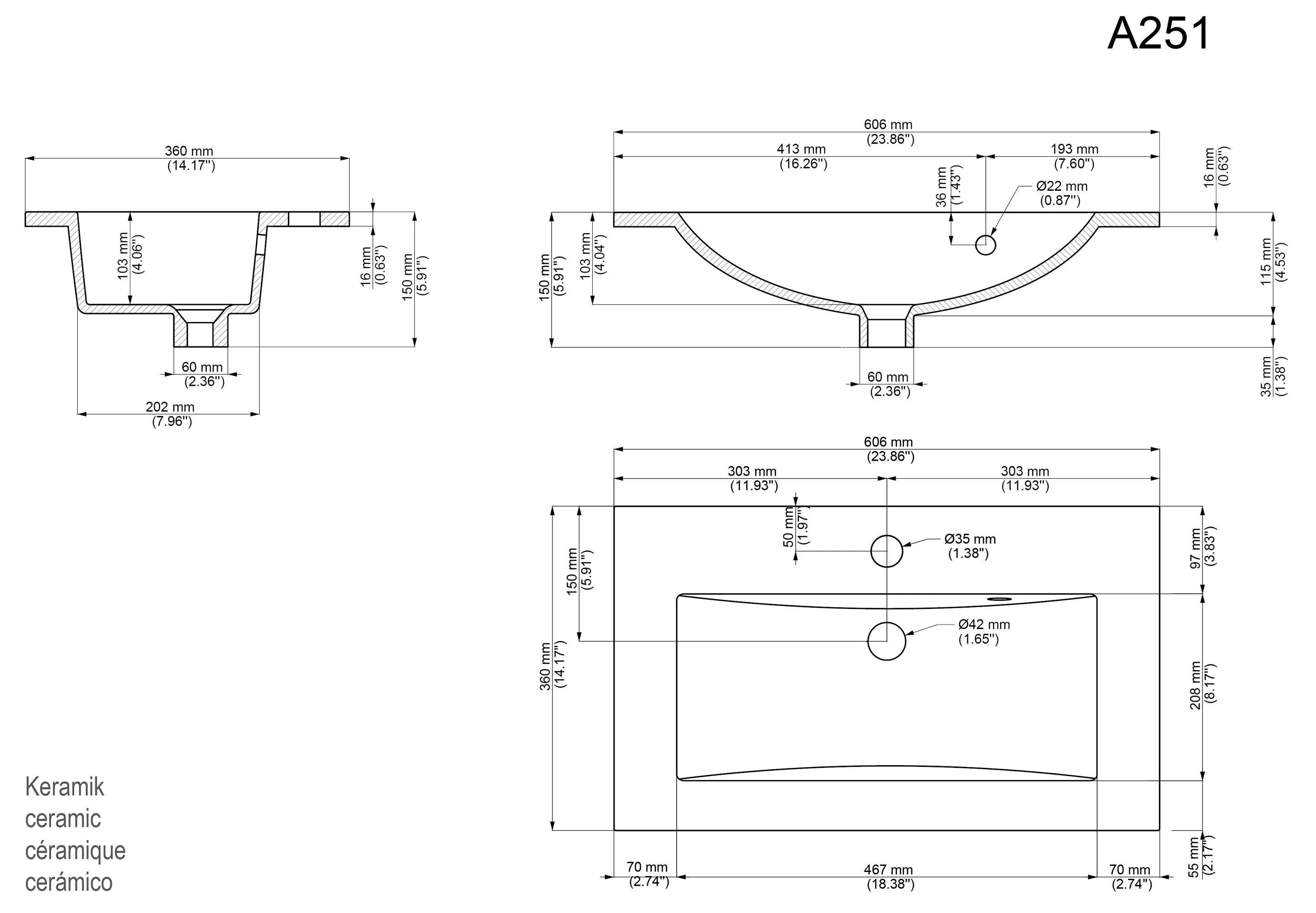 - 1 Keramik-Waschbecken ohne Überlauf